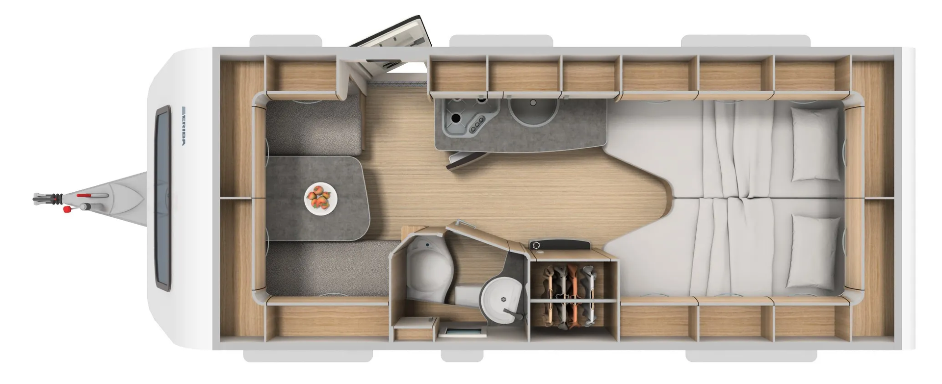 Kompakt, leicht und hochwertig – der ERIBA Nova Light 442 überzeugt mit stilvollem Design, edler Verarbeitung und durchdachter Raumaufteilung. Der Wohnwagen wurde gepflegt genutzt, stammt aus Modelljahr 2023 und wurde am 22.09.2025 erstzugelassen. Mit einem zulässigen Gesamtgewicht von 1.500 kg und nur 667 cm Länge lässt sich der Nova Light auch von Mittelklassefahrzeugen problemlos ziehen. Innen erwartet dich ein gemütlicher Wohnraum mit der stilvollen Stoffkombination „Fayon“ und Möbeldekor Chiavenna Nussbaum – hell, freundlich und einladend. Das Elegance-Paket sorgt für einen eleganten Auftritt: Crystal-Silver-Glattblechseitenwände, Designbeklebung Elegance, Deichselabdeckung und ERIBA-Leichtmetallfelgen im 5-Stern-Design. Ideal für alle, die Wert auf Stil und Qualität legen. Im Innenraum punktet der Nova Light mit Einzelbetten, geräumiger Sitzgruppe, praktischem Bad mit WC und intelligenter Stauraumnutzung – perfekt für zwei bis vier Personen.