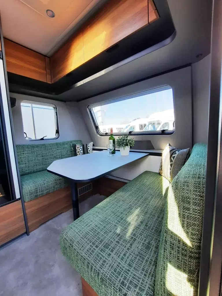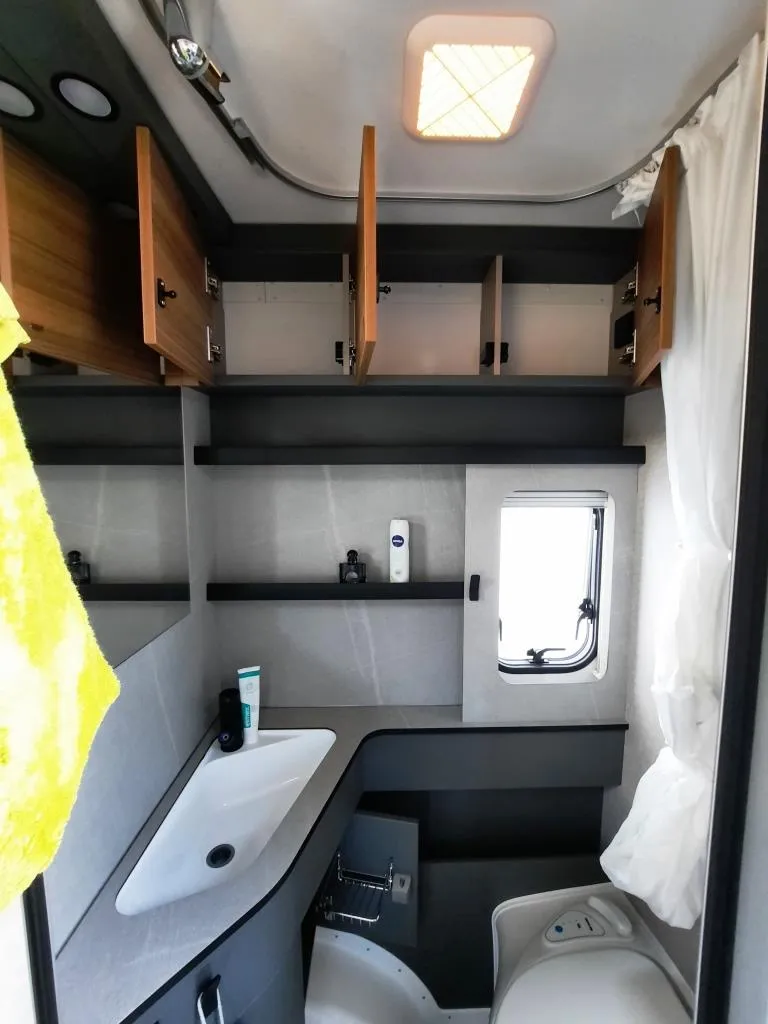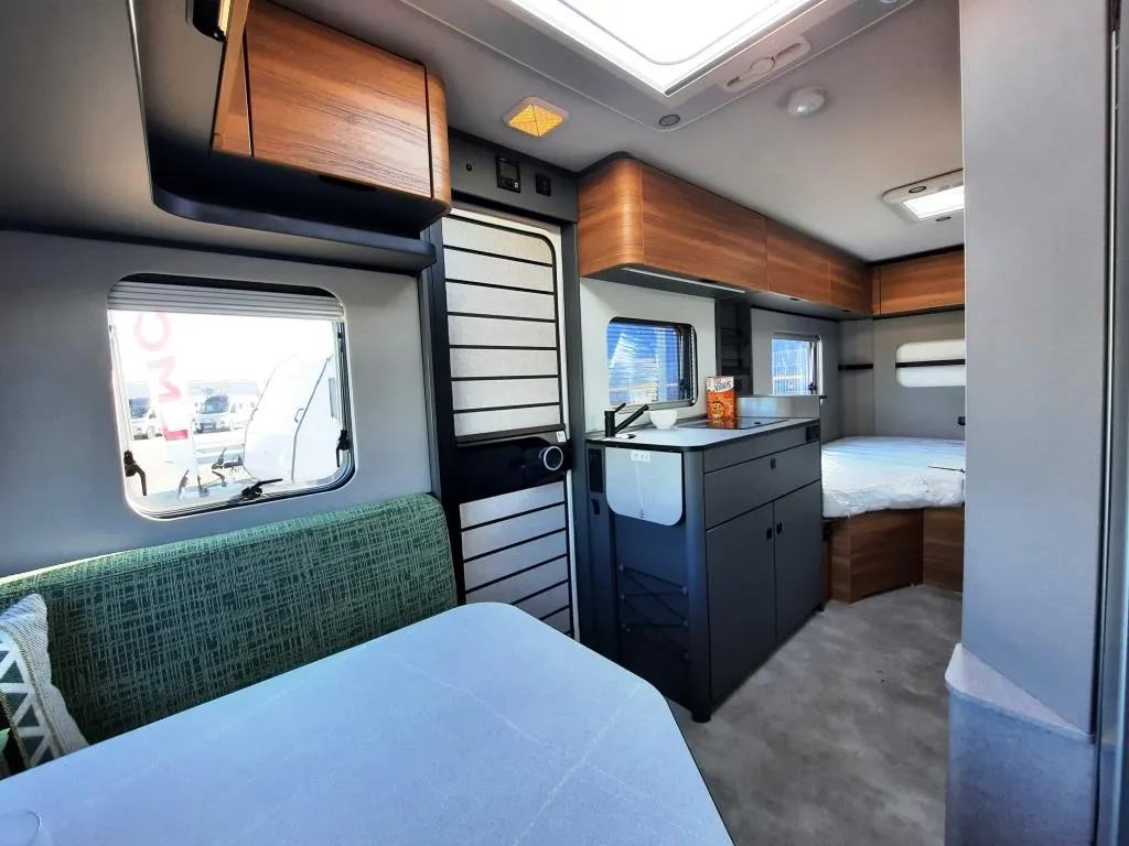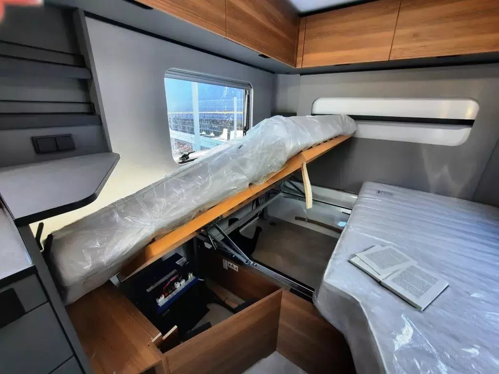 - Wohnkomfort Paket (Komfortpolster für die Bugsitzgruppe, Kissen mit Bezug, Ambiente-Beleuchtung mit indirekter Beleuchtung der Dachstauschränk, zwei zusätzlichen Multifunktionsakkulampen, Vergrößerungsspiegel mit Magnethalterung, Einlegeboden in Betonoptik)