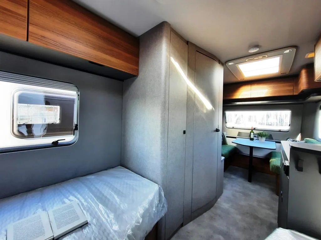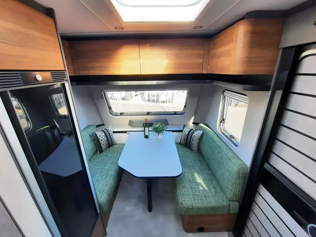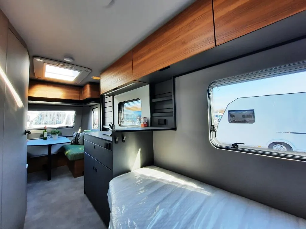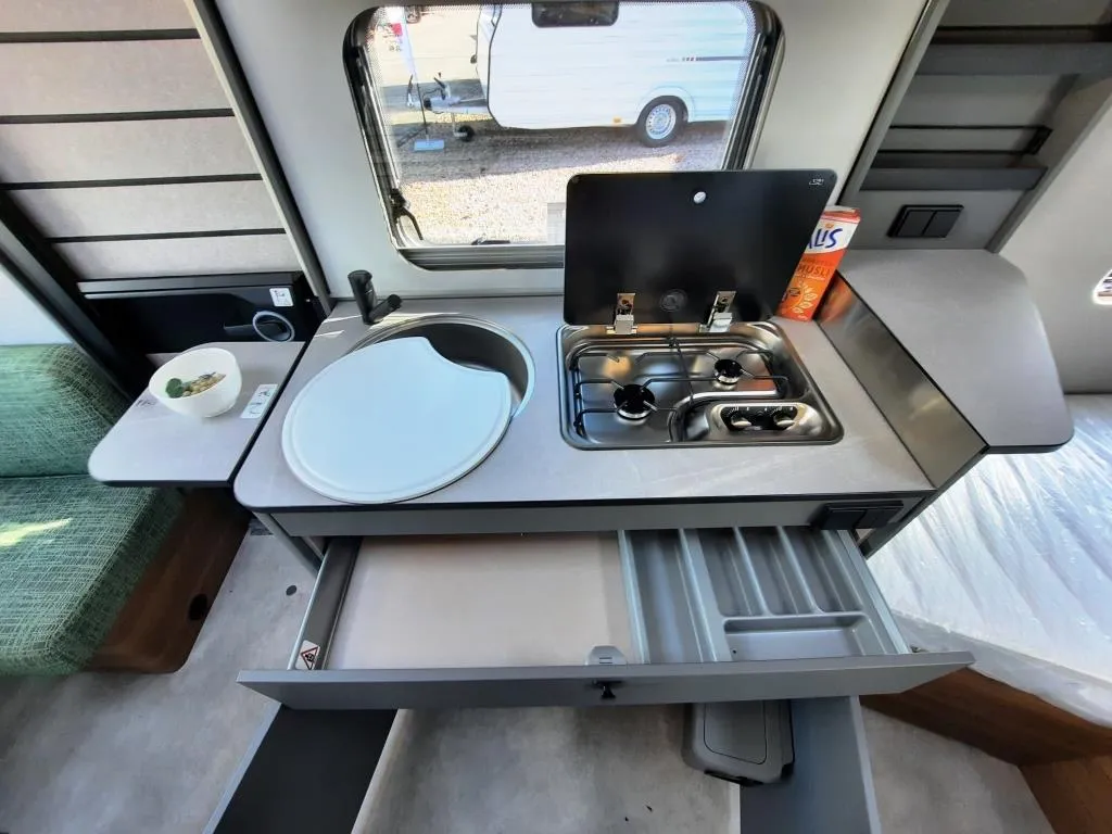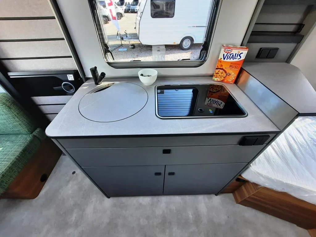 Vollverzinktes System-Leichtbau-Chassis mit verzinktem Achskörper, Extra lange Zugdeichsel für mehr Fahrstabilität, Anti-Schlinger-Kupplung, 14" Stahlfelgen, Reserveradhalterung im Gaskasten ,12 V LED-Beleuchtung , LED-Vorzeltleuchte mit Bewegungsmelder, elektrischer Zündung, Küchen-Schubladen mit Servo-Soft-Funktion und Besteckeinsatz, Panorama-Dachlüfter 80 x 50 cm, Bettenumbau der Sitzgruppe, 133 l Kompressorkühlschrank inkl. Gefrierfach und Doppelanschlag, Banktoilette mit Füllstandsanzeige, Badfenster ausstellbar, Rauchmelder, 45l Frischwassertank mit Füllstandsanzeige, Heizung Vario Heat Eco inkl. digitalem Bedienteil, 230 V Steckdose am Bad, in der Küche und im Wohnraum, und vielem mehr*