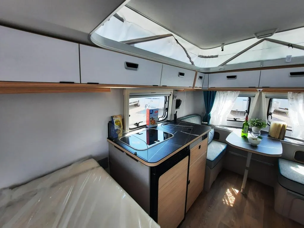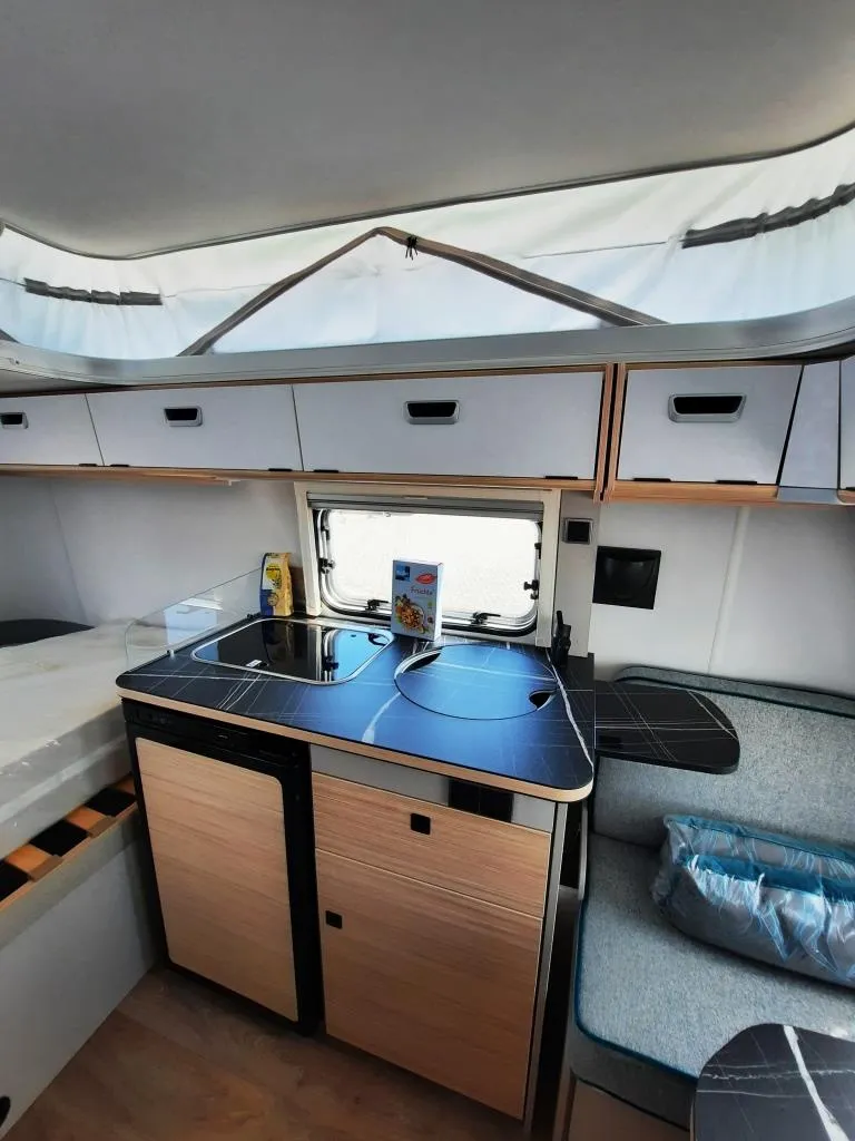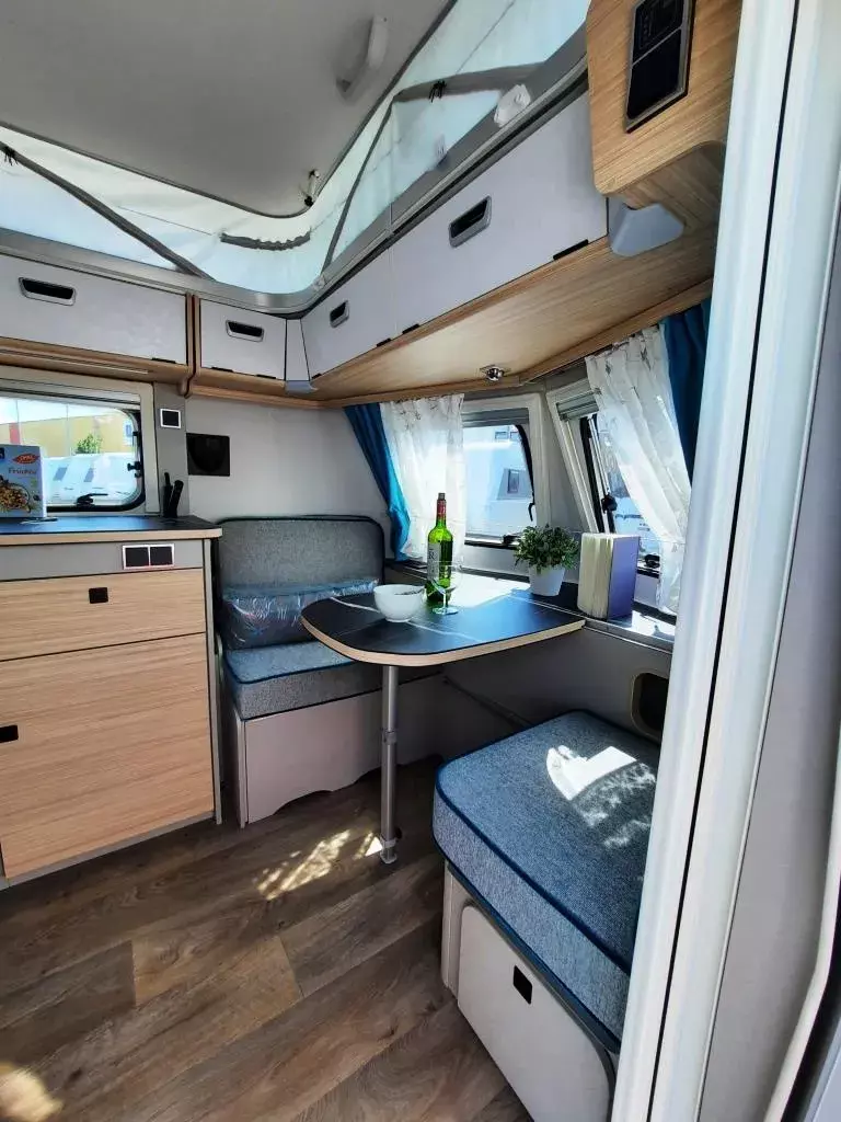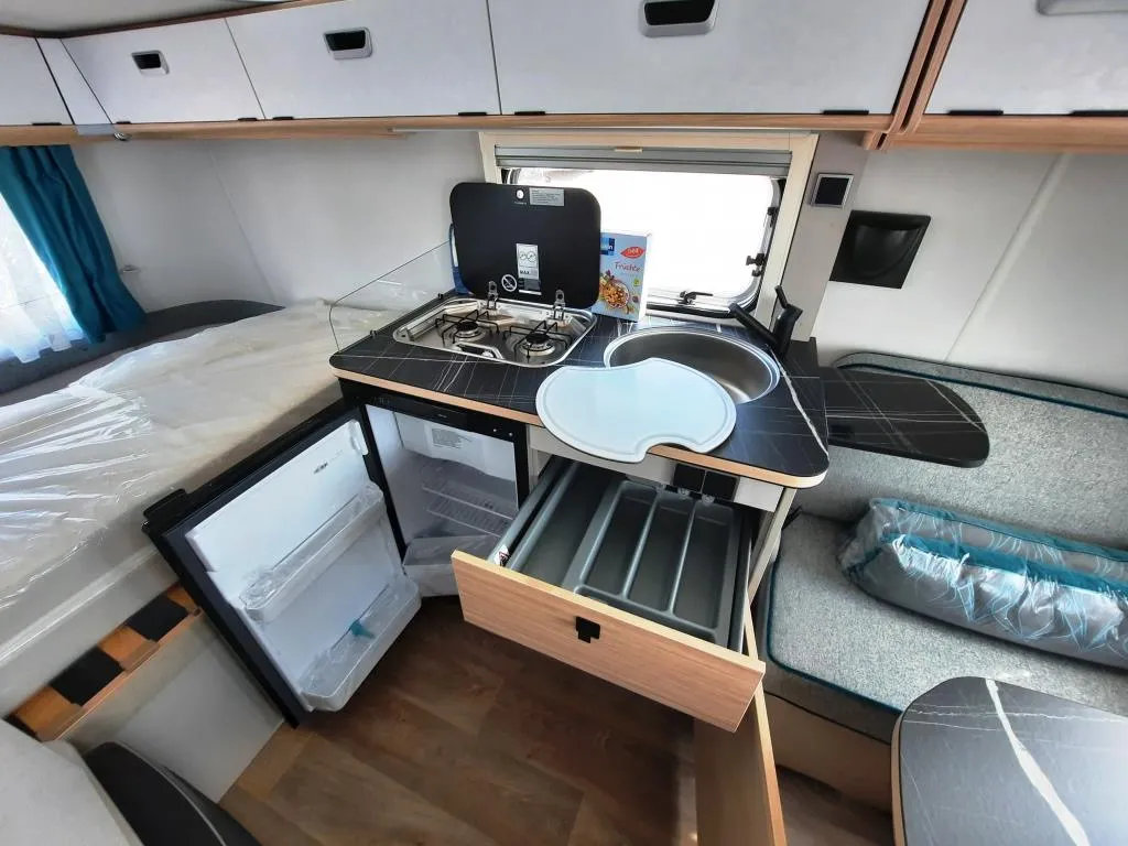 - Komfort-Paket (Spülabdeckung – mit Schneidbrett, Abfallbehälter, Fliegenschutztür, Steckdosen-Paket, Spiegel Wohnraum – Schminkspiegel, Fenster Rollor -Remi Base III)
