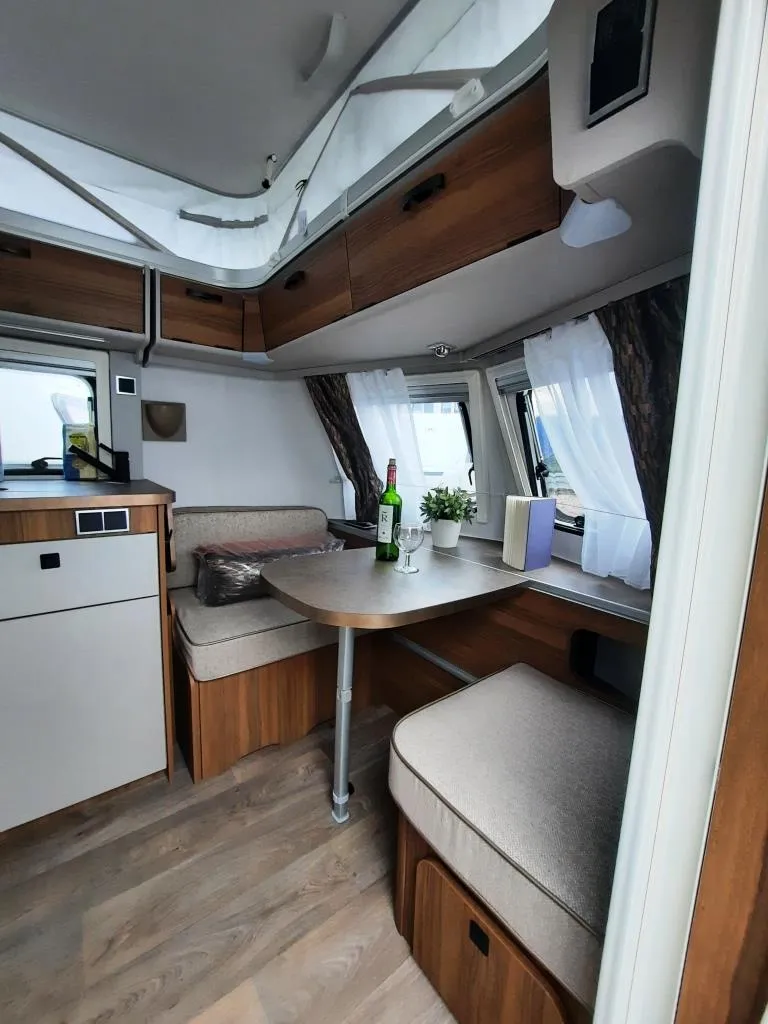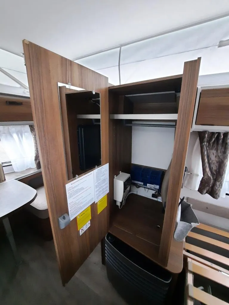 Extra lange Zugdeichsel für mehr Fahrstabilität und ausreichend Platz für einen Deichselträger, Anti-Schlinger-Kupplung, Seitenwände, Bug und Heck in Minihammerschlag, Hubdach in GFK, Heckleuchten in LED, einteilige Eingangstür, Einstiegsstufe ausziehbar, vorgehängte Fenster mit Multifunktionsrollos, stabile Rangiergriffe am Bug, durchgängiger Rangierbügel am Heck, 12V LED- Beleuchtung, LED-Vorzeltleuchte mit Bewegungsmelder, Bettenumbau Sitzgruppe, 2-Flammen-Gaskocher, klappbare Küchenarbeitsplattenverlängerung, 81l Absorberkühlschrank inkl. Gefrierfach, Badfenster ausstellbar, Rauchmelder, Gasheizung S 3004 und vielem mehr *