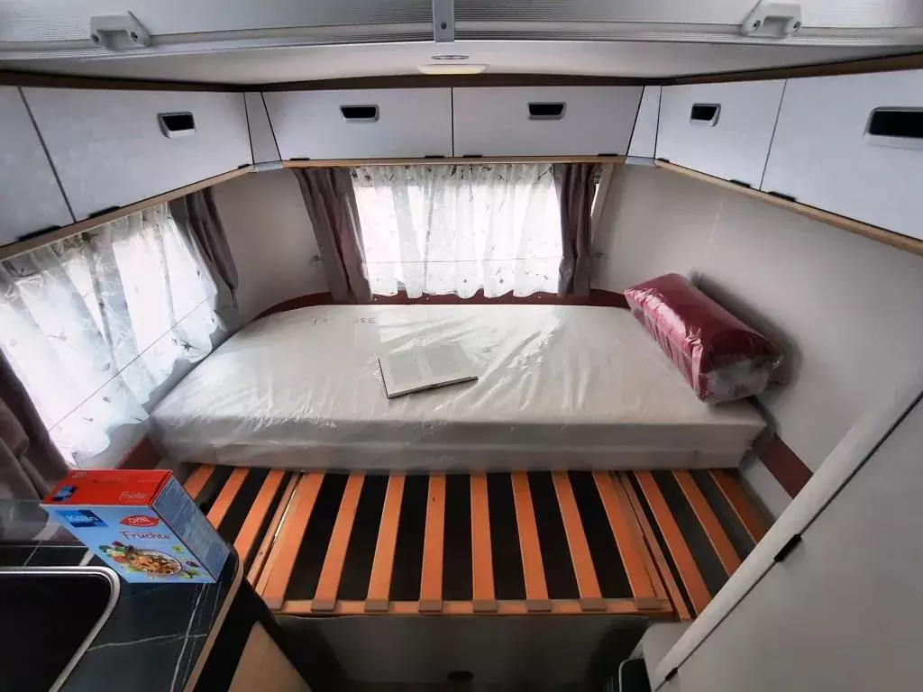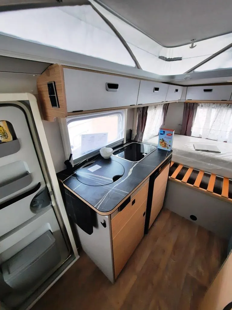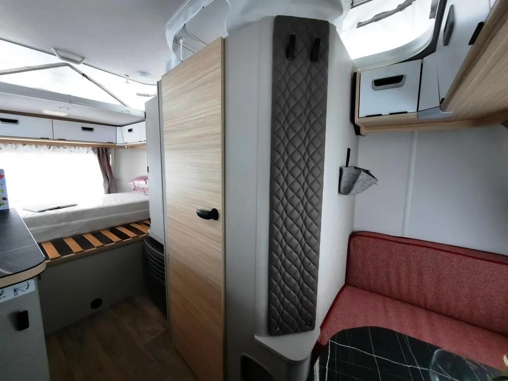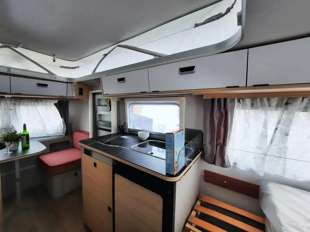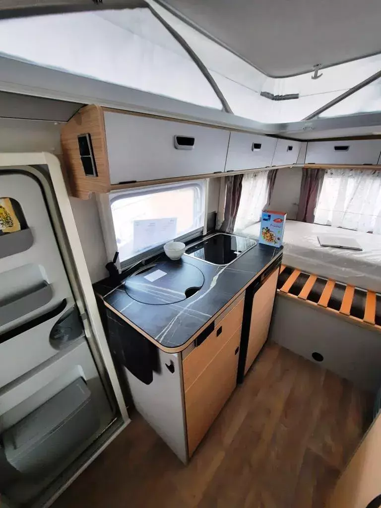 - Komfort-Paket (Fliegenschutz-Rolltür (gesamte Türhöhe), bedienfreundlich durch seitliche Führung, Komfort-Plissee-Rollos, Steckdosenpaket (2x 230 V Steckdosen und 1x USB-Doppelsteckdose), Abfalleimerin Eingangstür integriert, Spülenabdeckung mit Schneidebrett für Edelstahlspüle, zusätzlicher Vergrößerungsspiegel mit Magnethalterung)