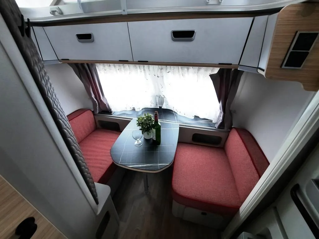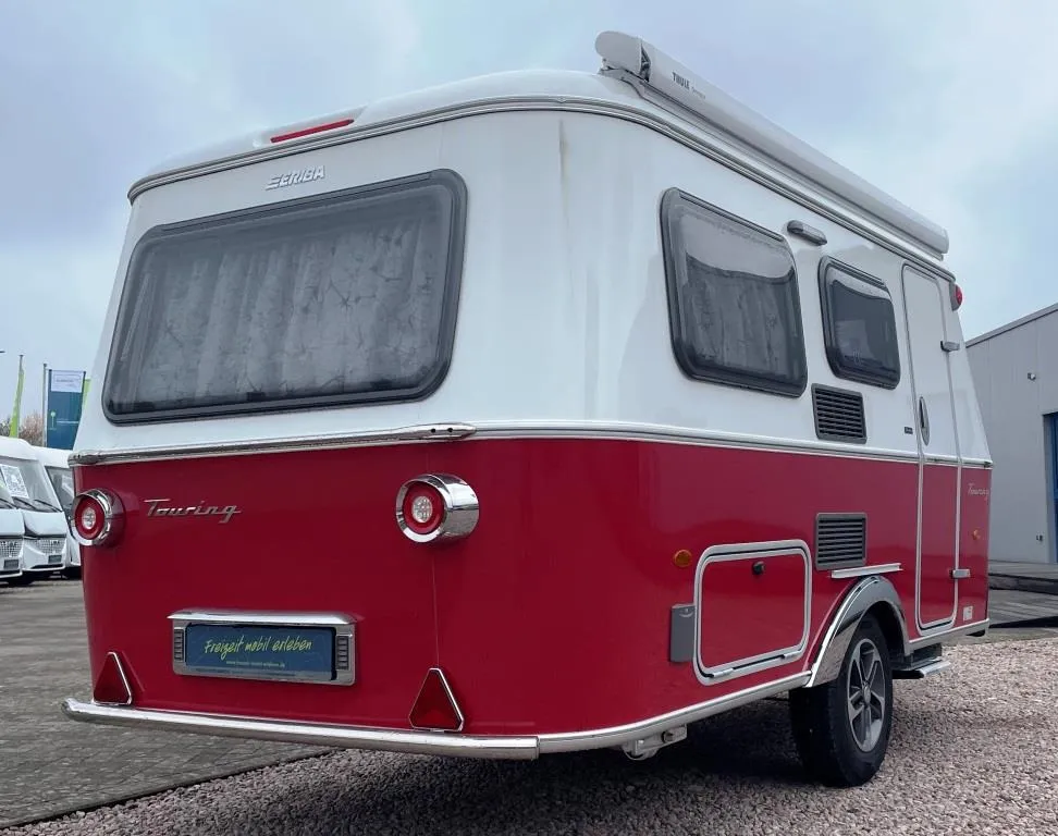 - Ausstattungspaket Tango Red Edition (Seitenwände, Bug und Heck in Glattblech, Farbe White Tango Red, Stoffkombination Tulsa für Ausstattungslinie Urban, Möbeldekor Tindari, Chrompaket mit Außenanbauteilen in Chrom und Radlaufblende sowie Rückleuchten in Retrodesign, Leichtmetallfelgen ERIBA 5-Stern-Doppelspeiche, anthrazit, Steinschlagschutzblech, Bumper aus Edelstahl, Ambientelicht XL mit indirektem Licht oberhalb der Dachstauschränke und zwei zusätzliche ERIBA Multifunktions-Akkuleuchten, 2 Kissen mit Bezug)