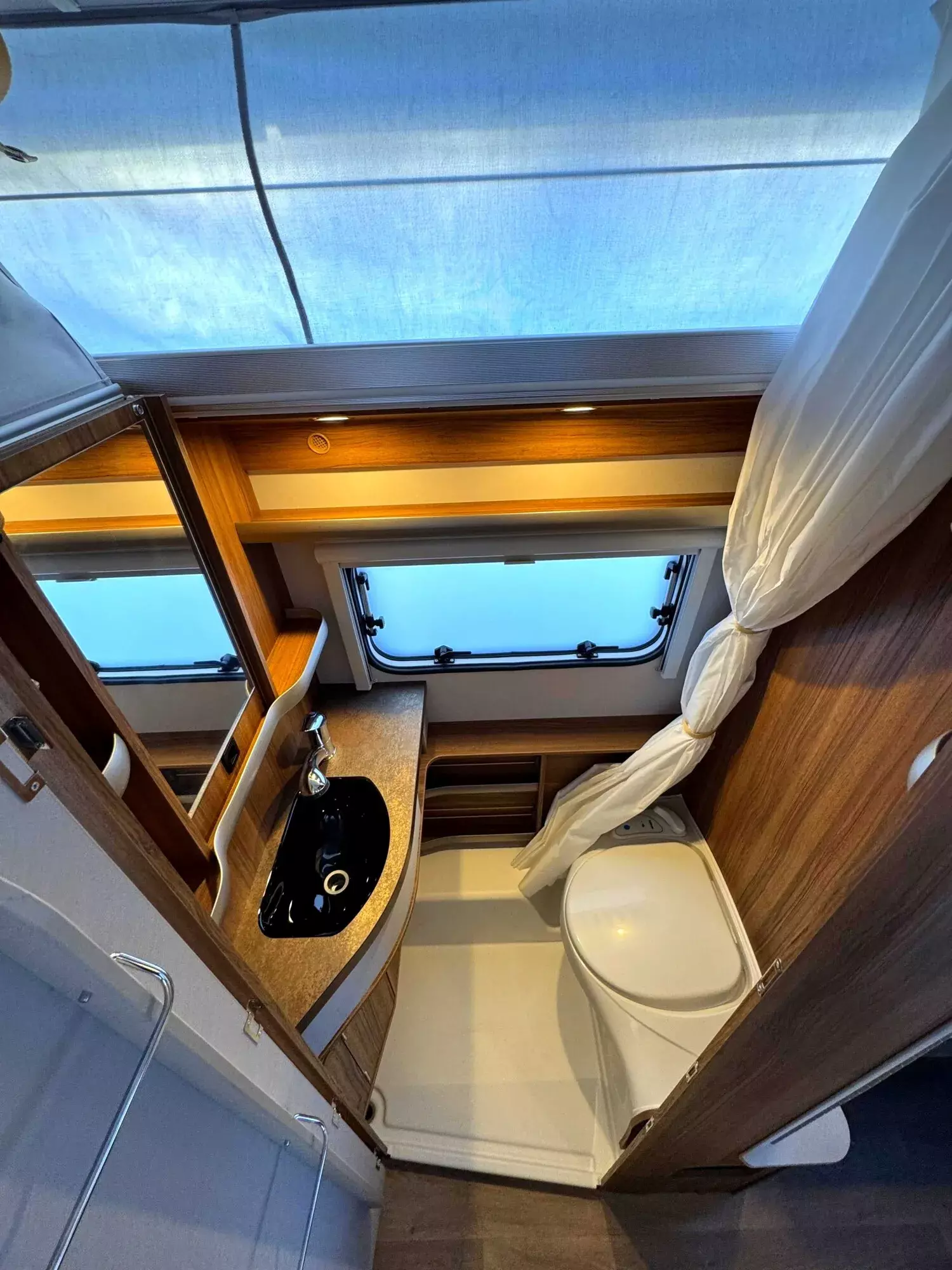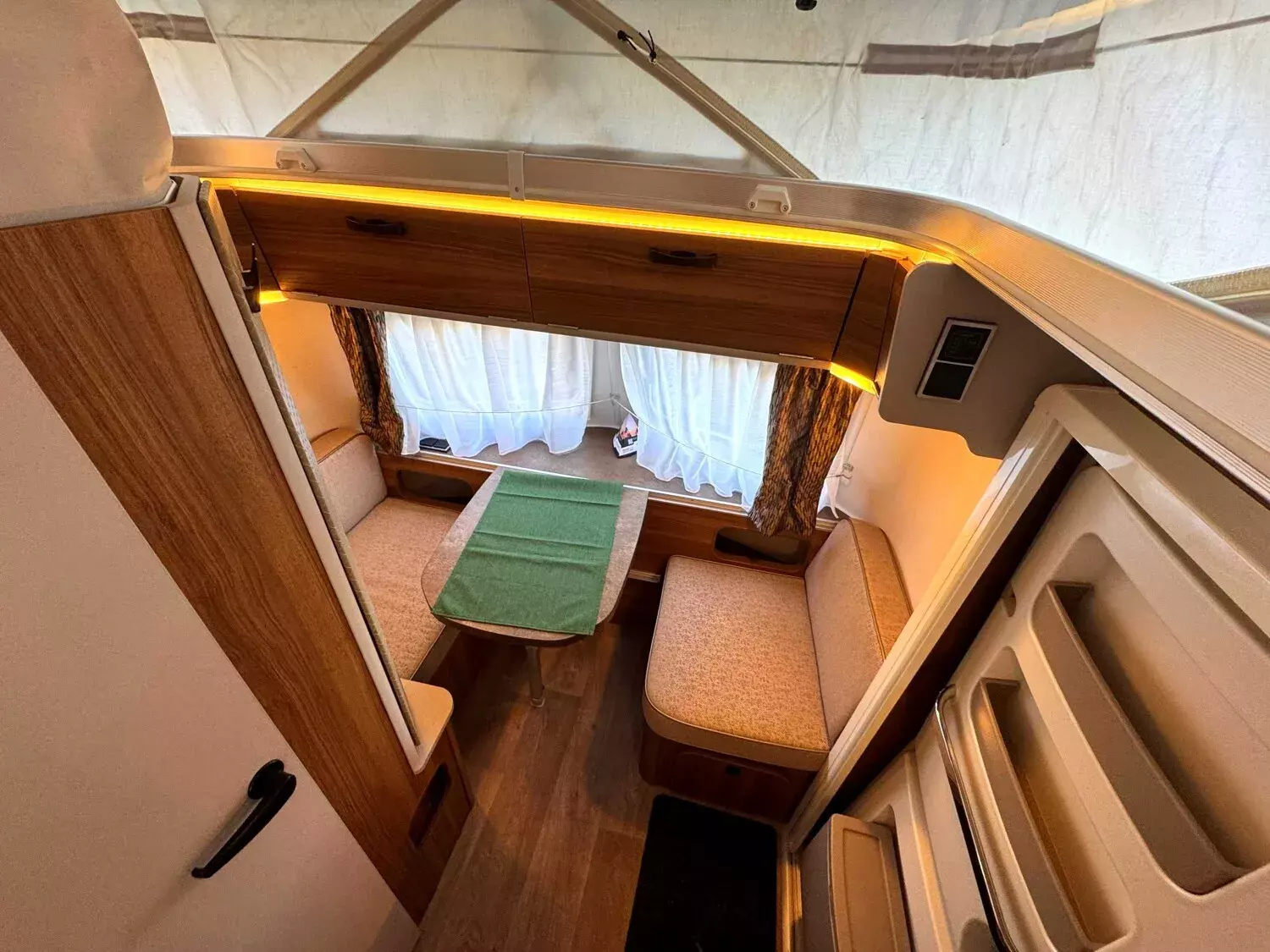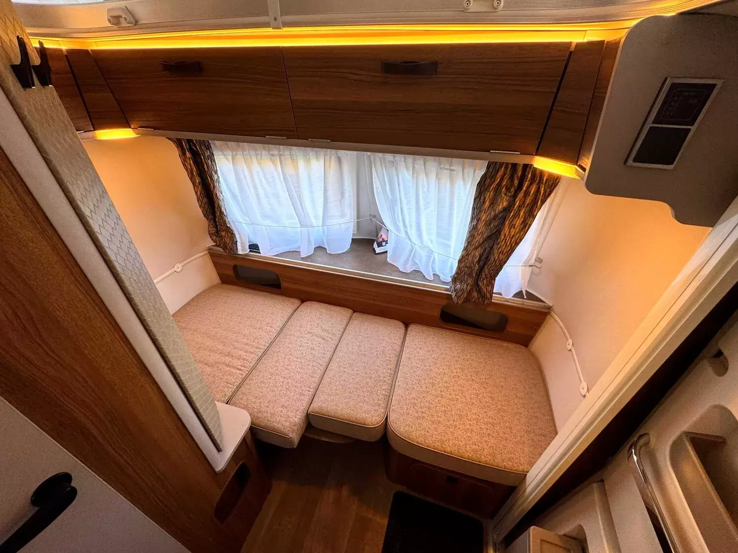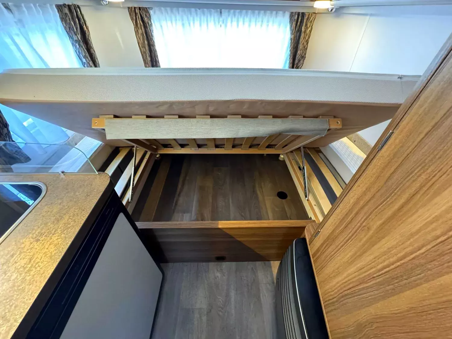 - Komfort-Paket (Fliegenschutz-Rolltür (gesamte Türhöhe), bedienfreundlich durch seitliche Führung, Komfort-Plissee-Rollos, Steckdosenpaket (2 x 230 V Steckdosen und 1 x USB-Doppelsteckdose), Abfalleimer in Eingangstür integriert, Spülenabdeckung mit Schneidebrett für Edelstahlspüle, Zusätzlicher Vergrößerungsspiegel mit Magnethalterung)
