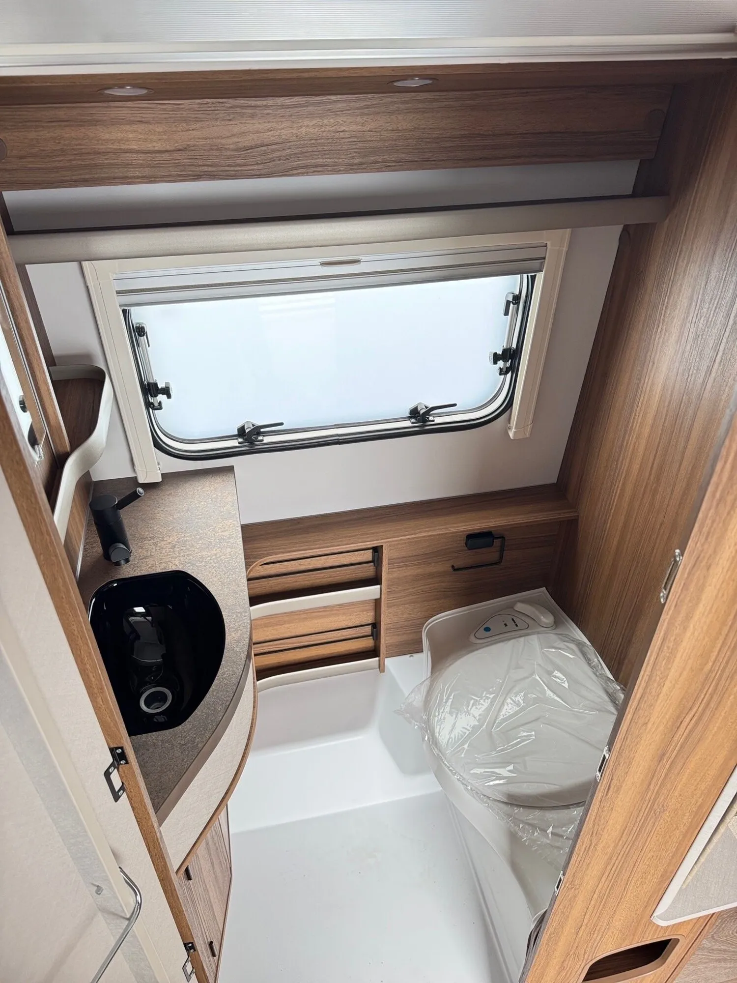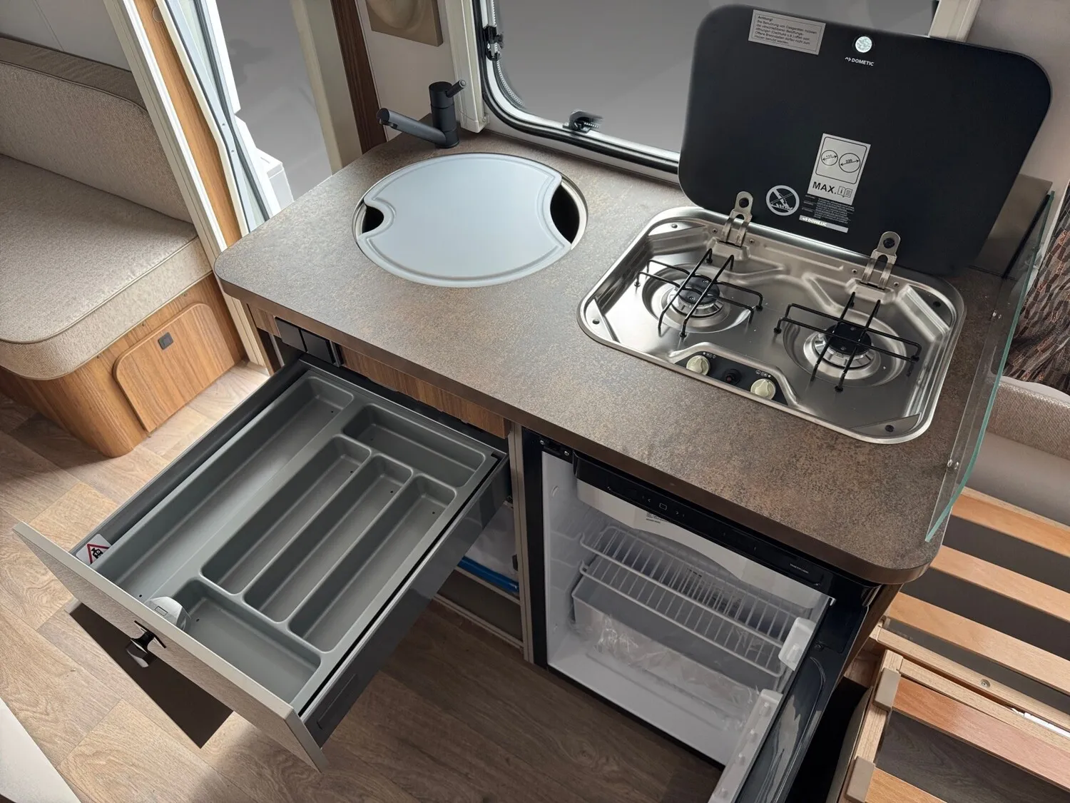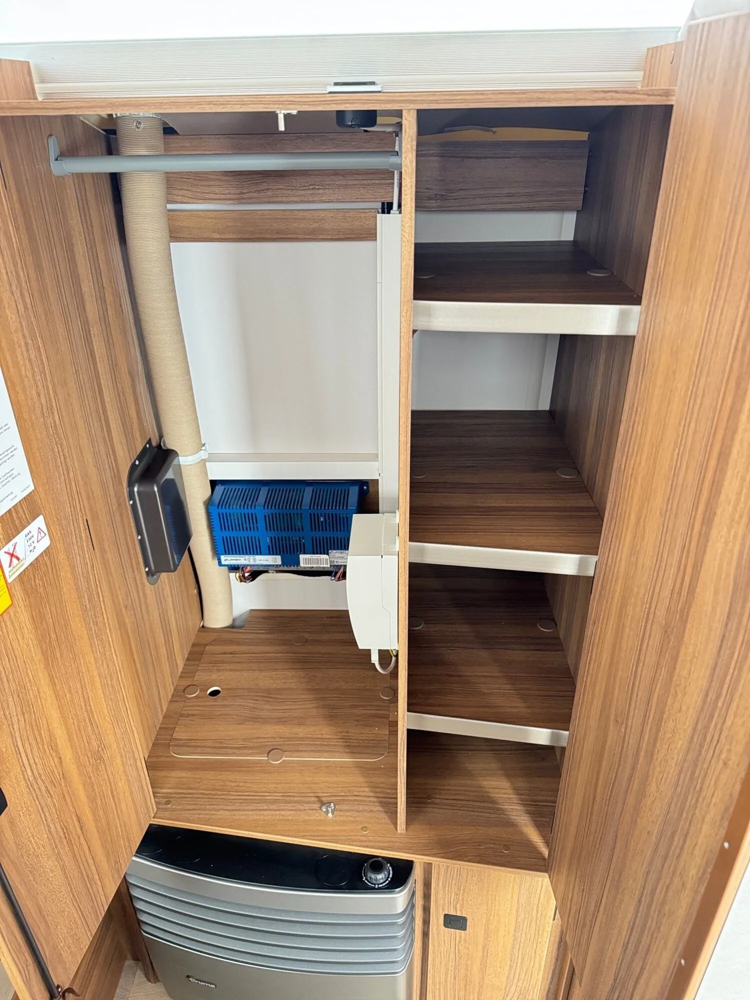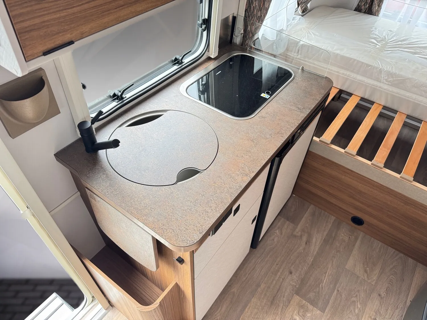 - Komfort-Paket (Fliegenschutz-Rolltür (gesamte Türhöhe), bedienfreundlich durch seitliche Führung, Komfort-Plissee-Rollos, Steckdosenpaket (2 x 230 V Steckdosen und 1 x USB-Doppelsteckdose), Abfalleimer in Eingangstür integriert, Spülenabdeckung mit Schneidebrett für Edelstahlspüle, Zusätzlicher Vergrößerungsspiegel mit Magnethalterung)
