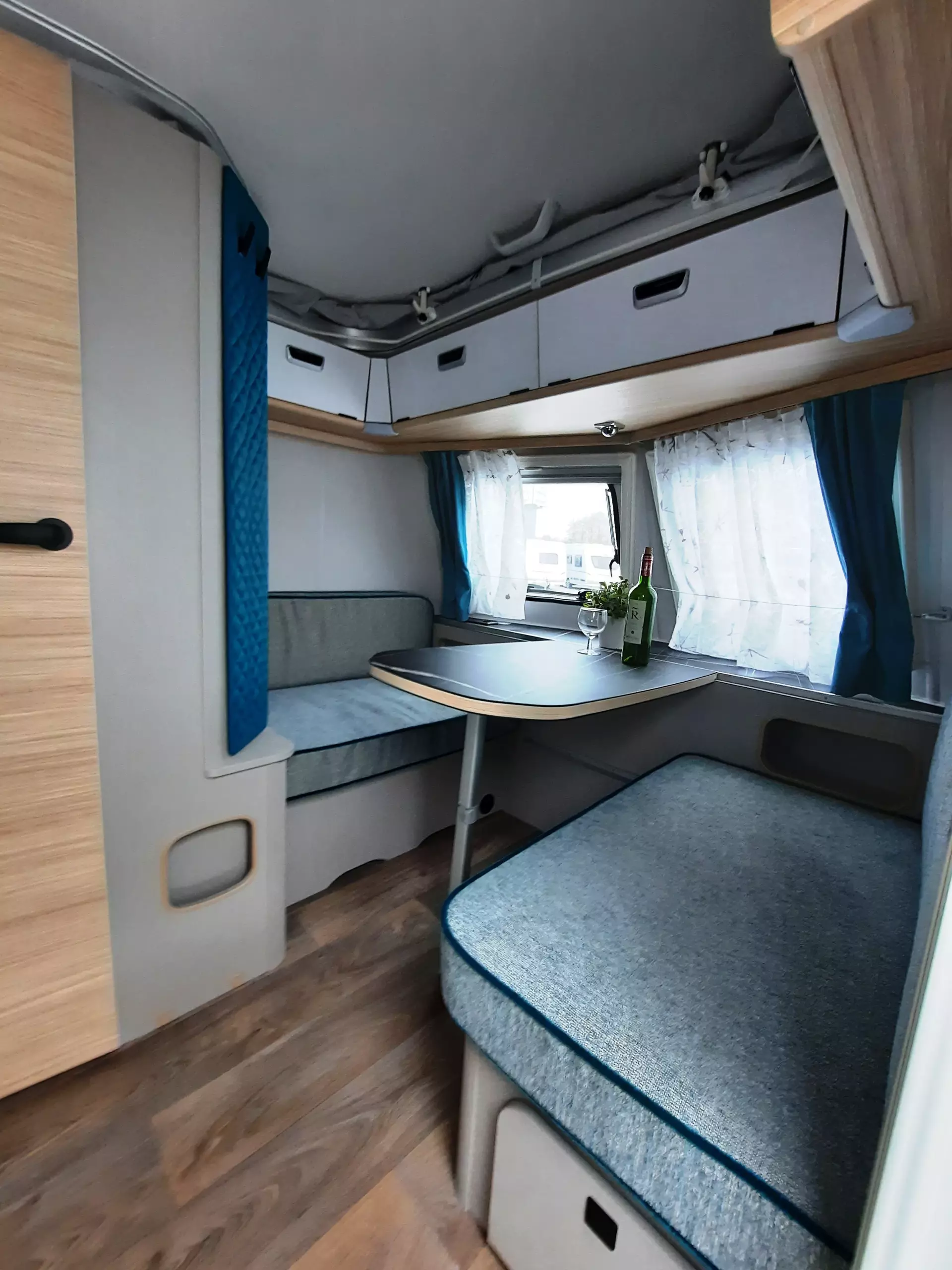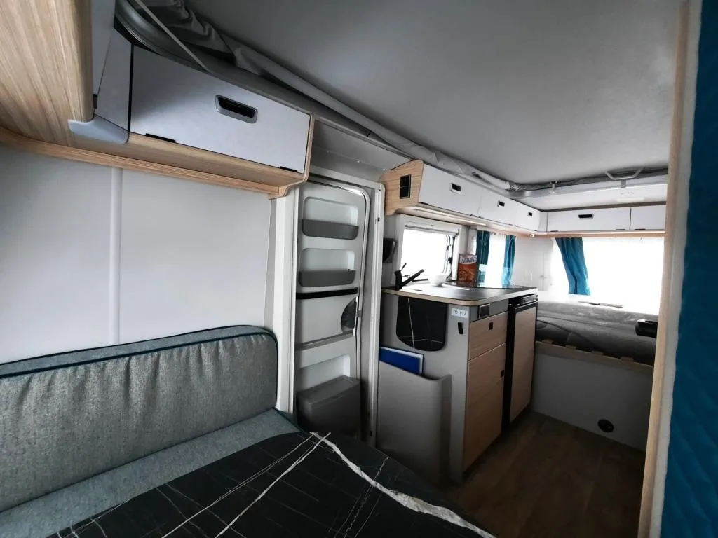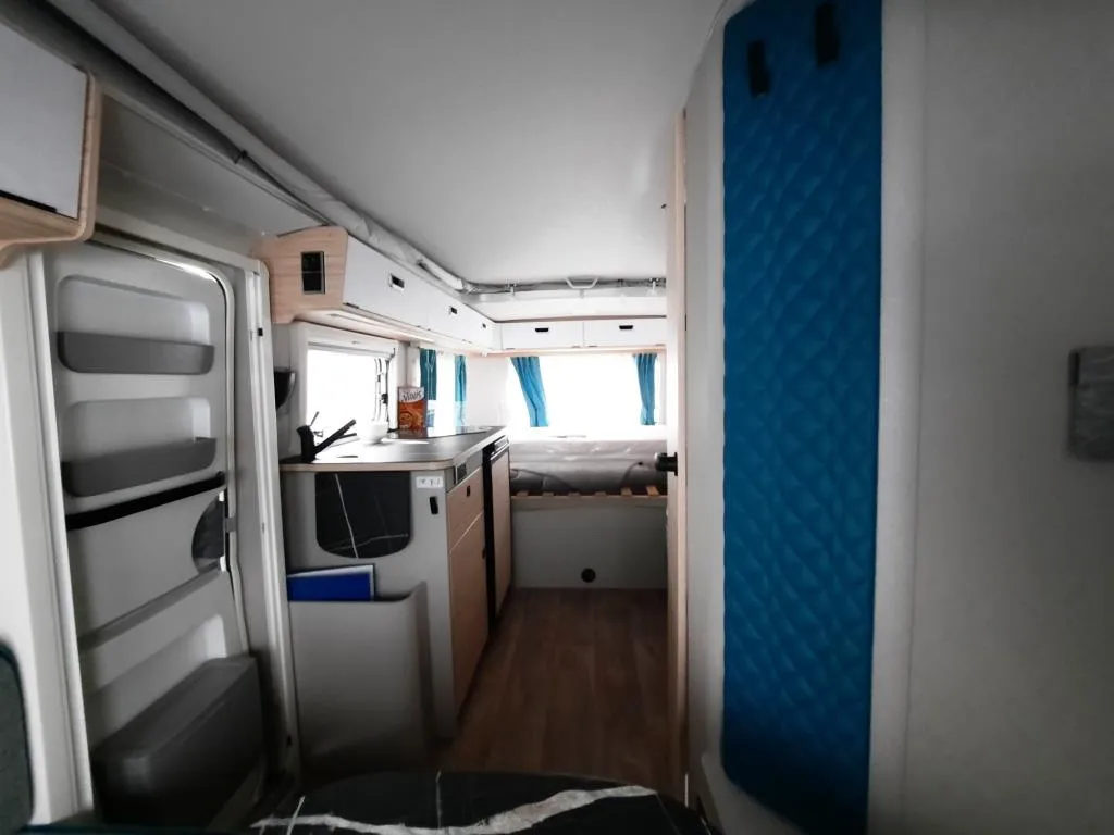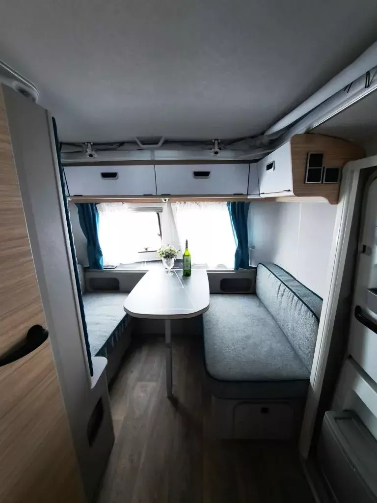 - Komfort-Paket (Fliegenschutz-Rolltür (gesamte Türhöhe), bedienfreundlich durch seitliche Führung, Komfort-Plissee-Rollos, Steckdosenpaket (2x 230 V Steckdosen und 1x USB-Doppelsteckdose), Abfalleimerin Eingangstür integriert, Spülenabdeckung mit Schneidebrett für Edelstahlspüle, zusätzlicher Vergrößerungsspiegel mit Magnethalterung)