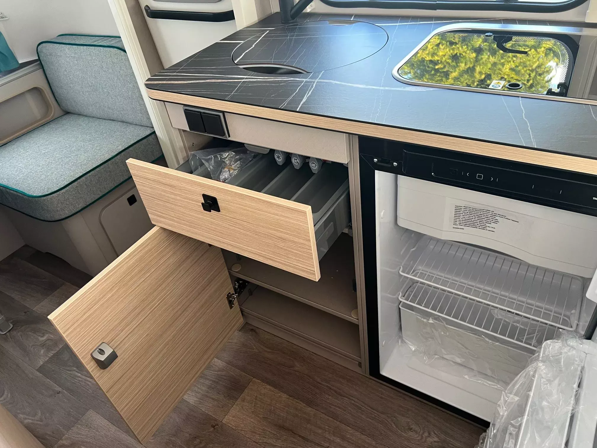 - Universal-Vorzeltsteckdose (230 V, 12 V, TV) inkl. TV-Vorverkabelung im Innenraum