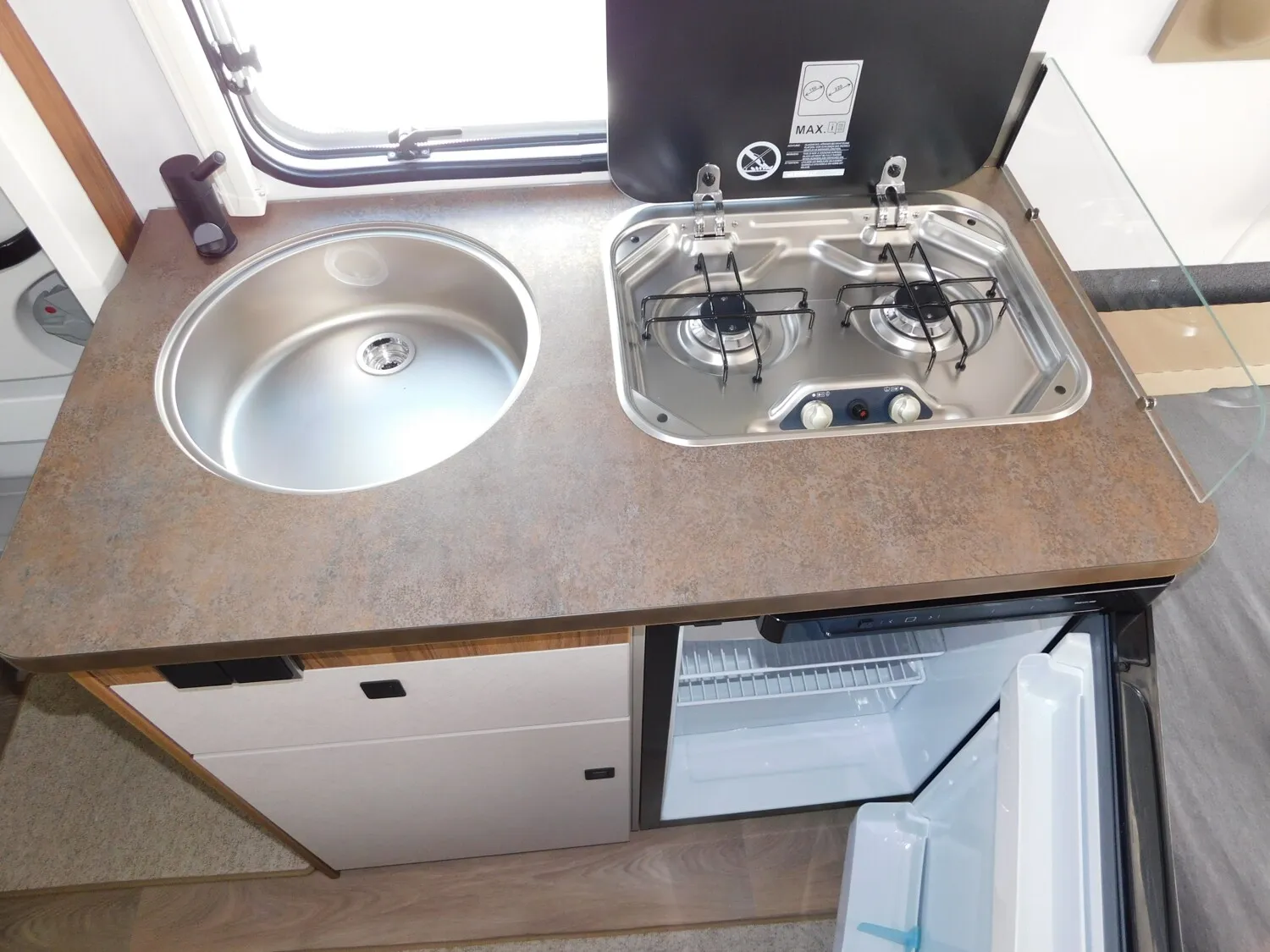 - Komfort-Paket (Fliegenschutz-Rolltür (gesamte Türhöhe), bedienfreundlich durch seitliche Führung, Komfort-Plissee-Rollos, Steckdosenpaket (2 x 230 V Steckdosen und 1 x USB-Doppelsteckdose), Abfalleimer in Eingangstür integriert, Spülenabdeckung mit Schneidebrett für Edelstahlspüle, Zusätzlicher Vergrößerungsspiegel mit Magnethalterung)