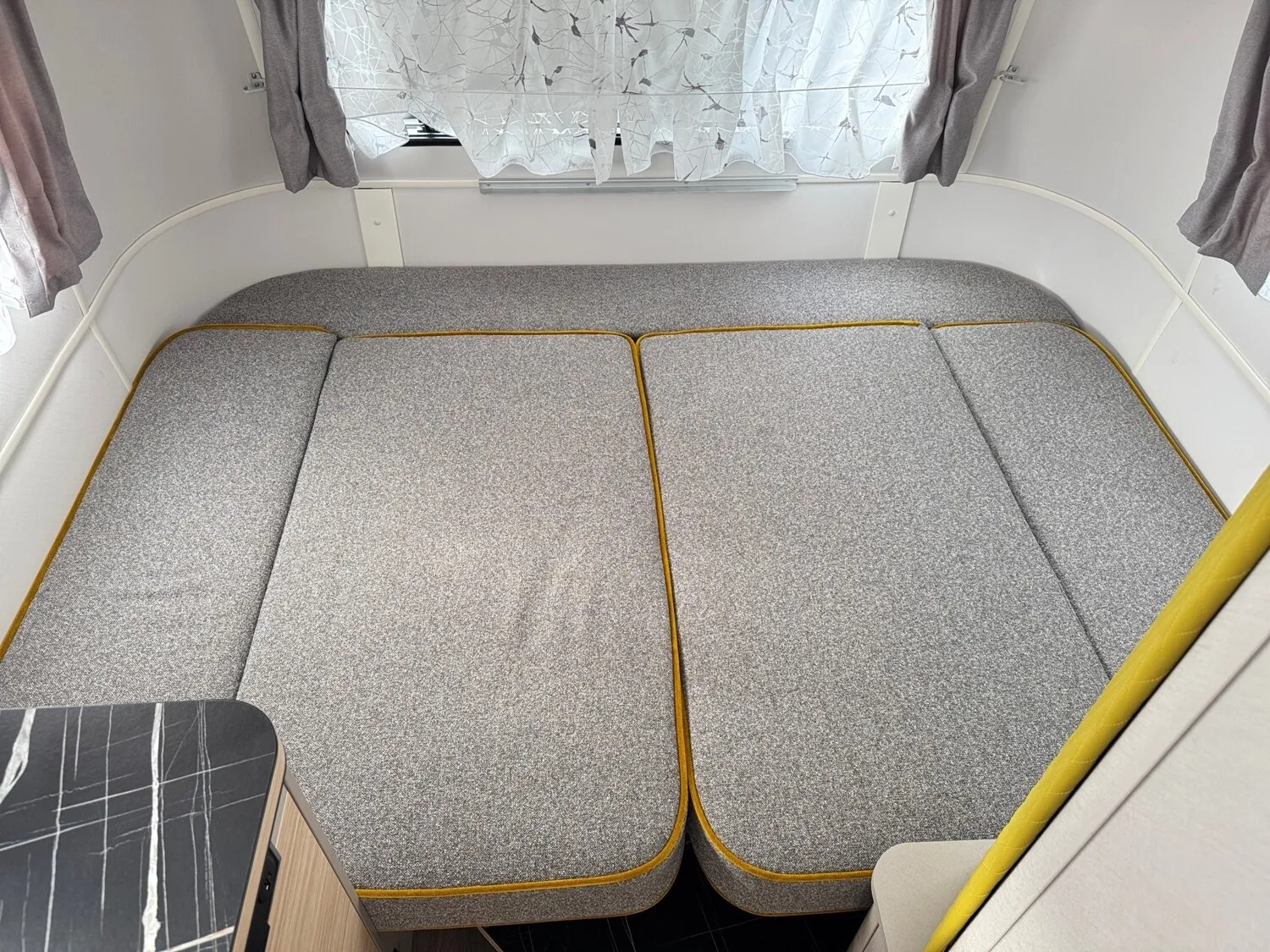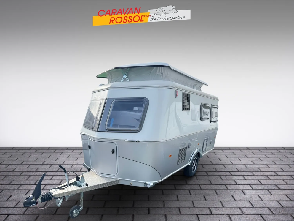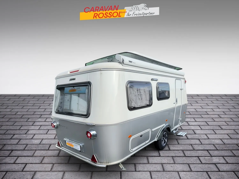 - Ausstattungslinie Urban (Seitenwände, Bug und Heck in Glattblech, Farbe White Silver, Möbeldekor Tindari, Ambientelicht XL mit indirektem Licht oberhalb der Dachstauschränke und zwei zusätzliche ERIBA Multifunktions-Akkuleuchten, 2 Kissen mit Bezug)