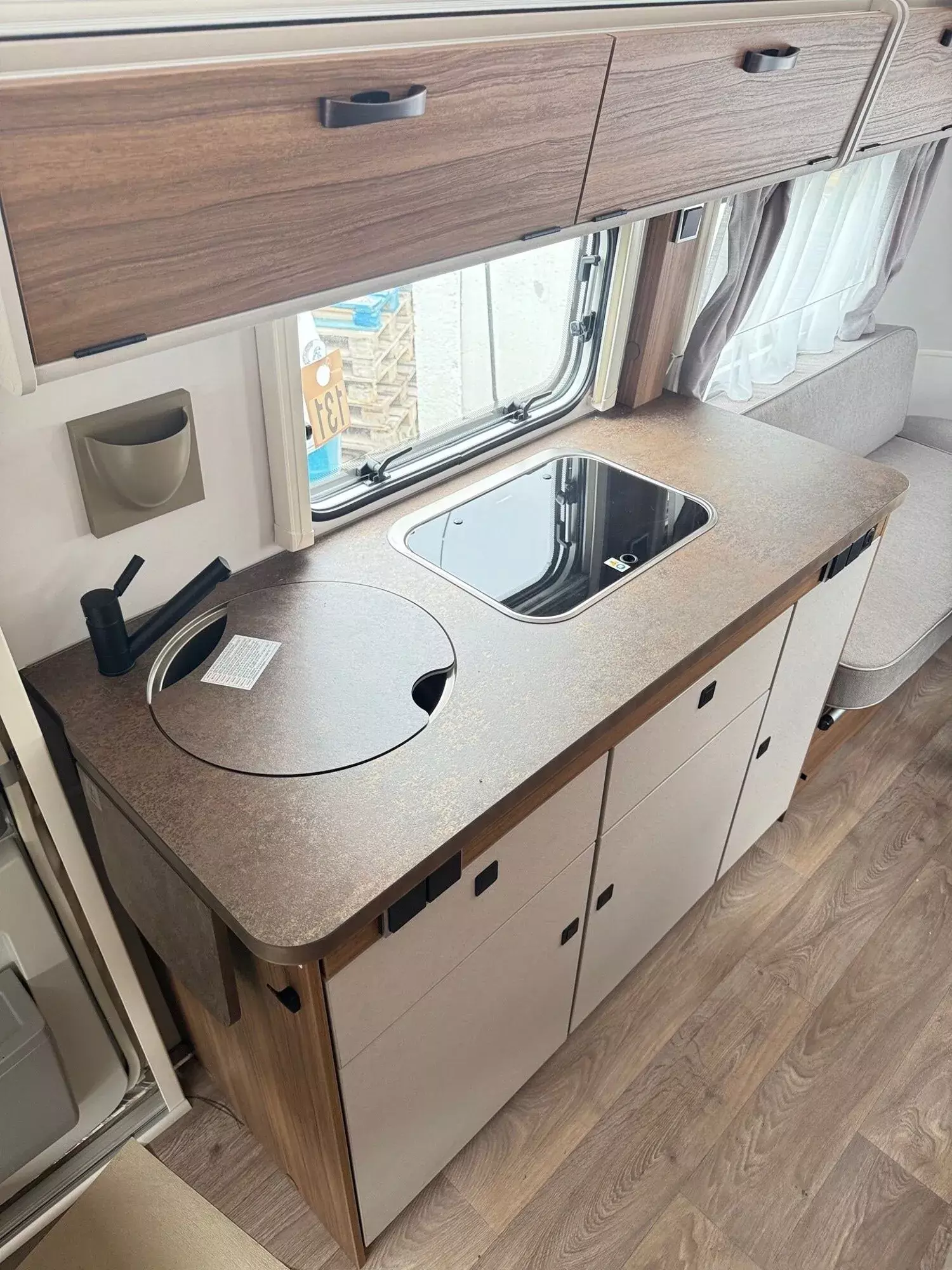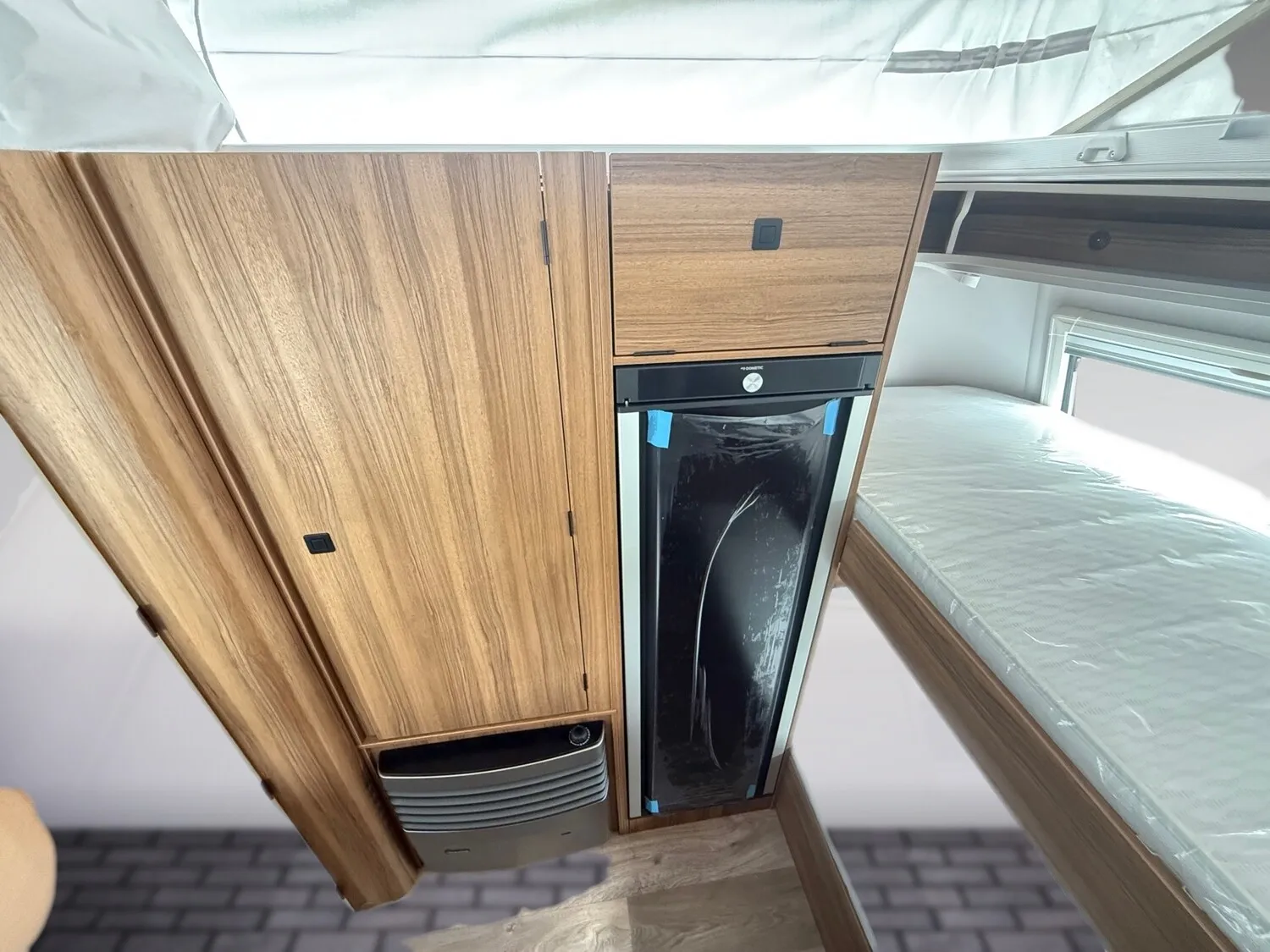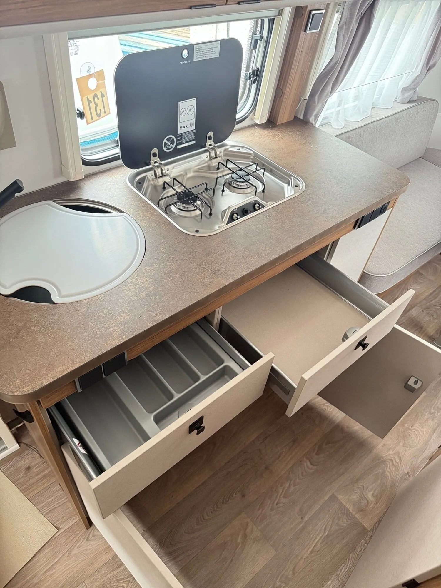 - Komfort-Paket (Fliegenschutz-Rolltür (gesamte Türhöhe), bedienfreundlich durch seitliche Führung, Komfort-Plissee-Rollos, Steckdosenpaket (2 x 230 V Steckdosen und 1 x USB-Doppelsteckdose), Abfalleimer in Eingangstür integriert, Spülenabdeckung mit Schneidebrett für Edelstahlspüle, Zusätzlicher Vergrößerungsspiegel mit Magnethalterung)