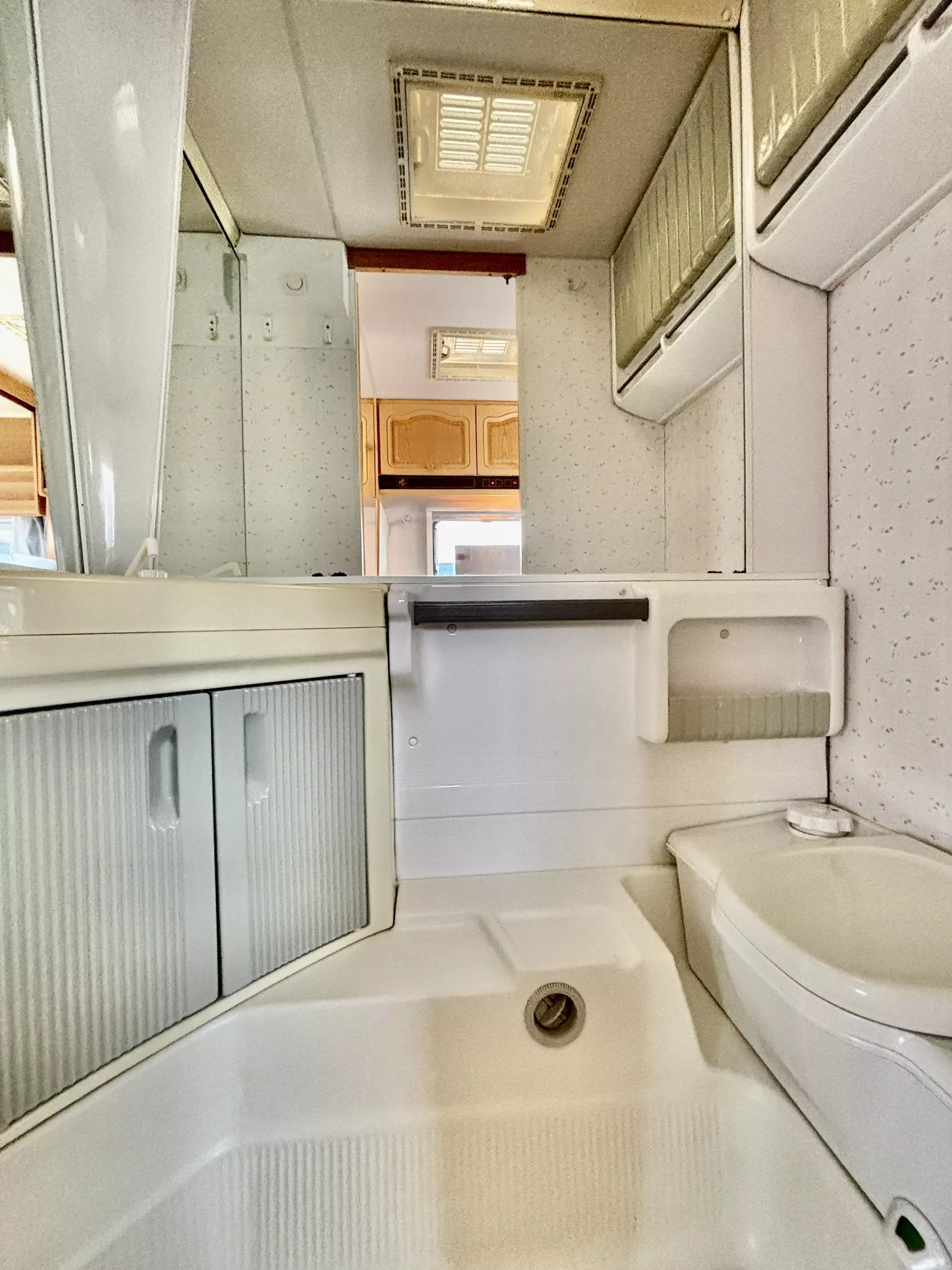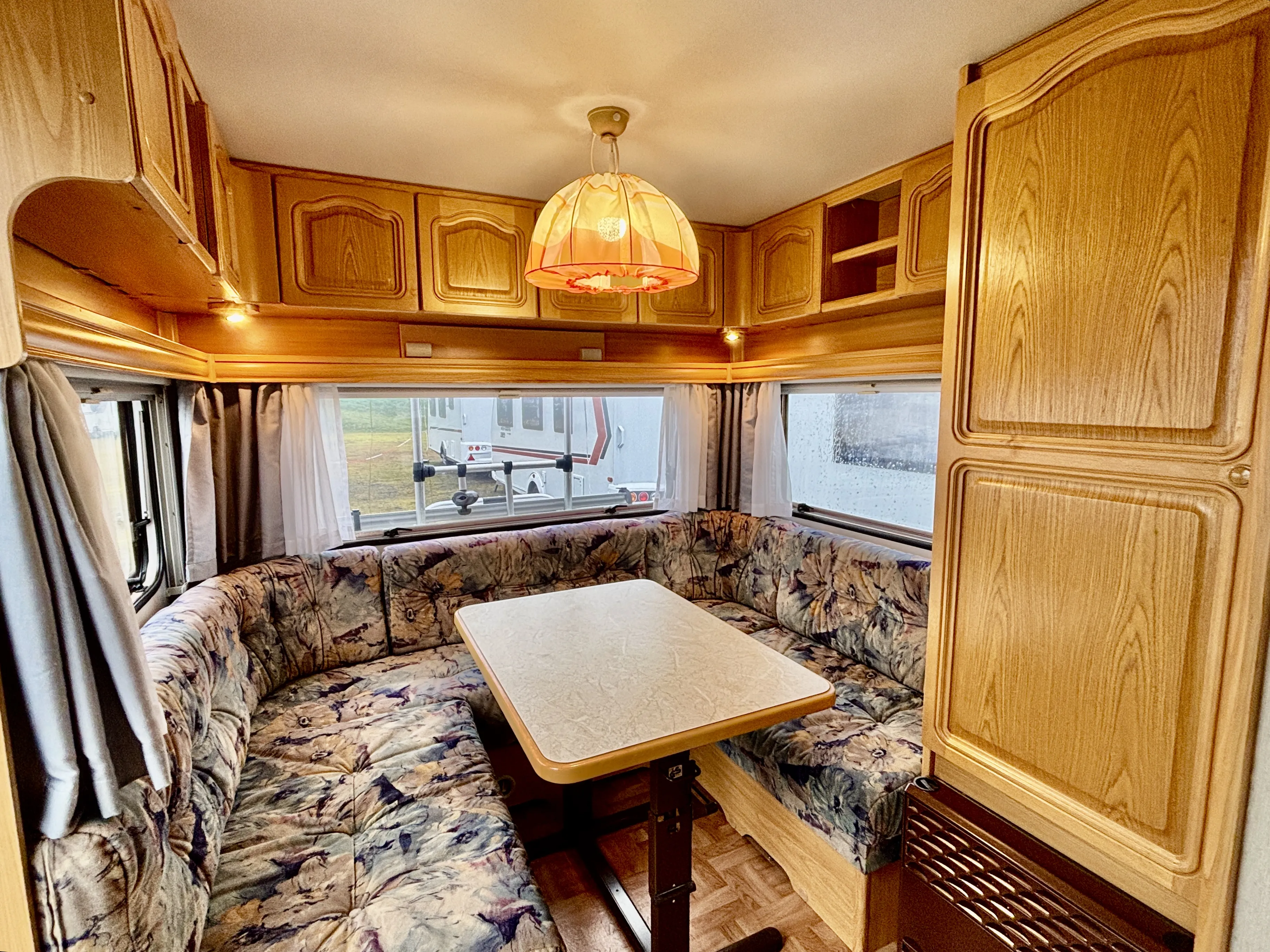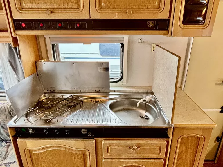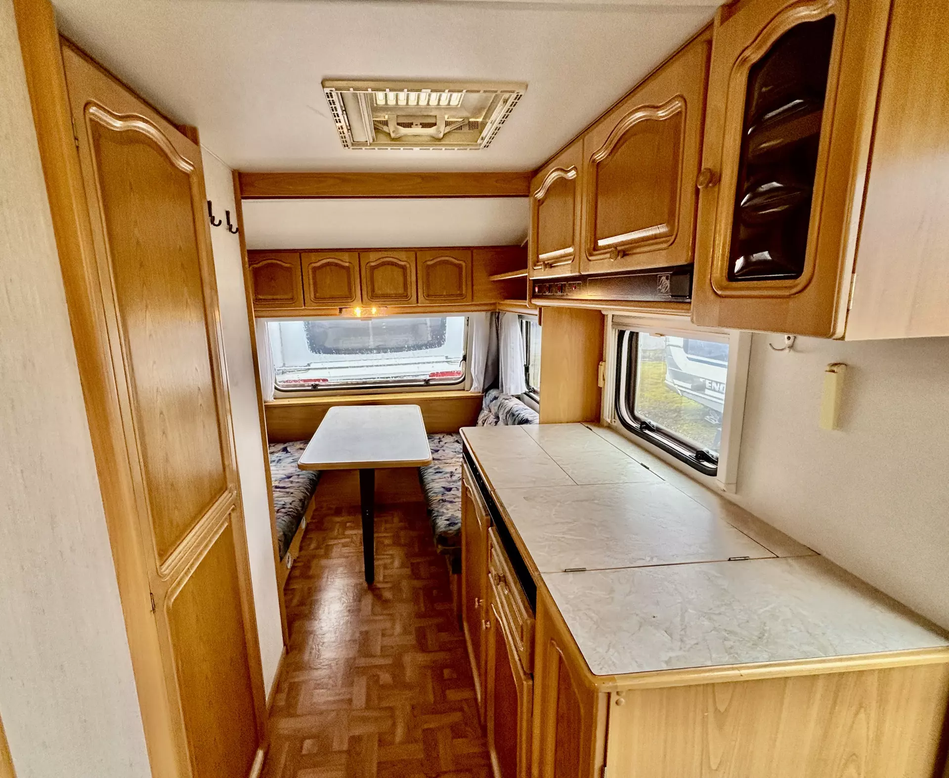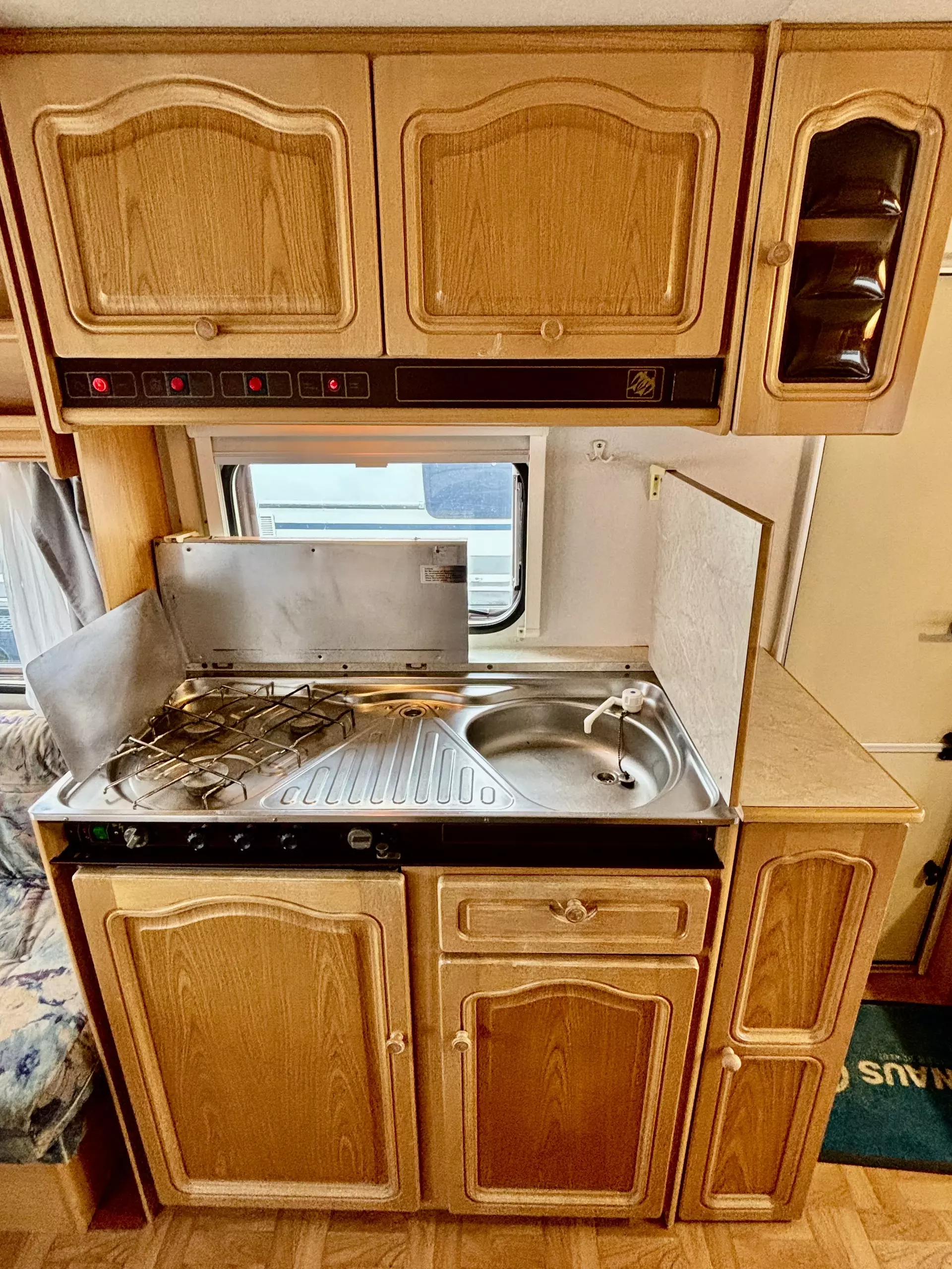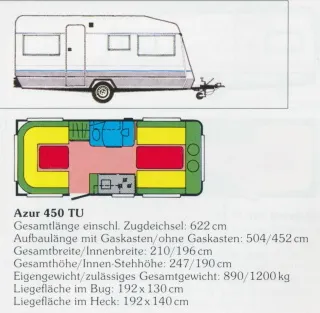 Dieser gemütliche Knaus Azur hatte einen Feuchtigkeitsschaden im Gaskasten, der komplett instandgesetzt wurde und -dem Alter entsprechend- übliche Gebrauchsspuren. Die Außenfarbe ist etwas verwittert.