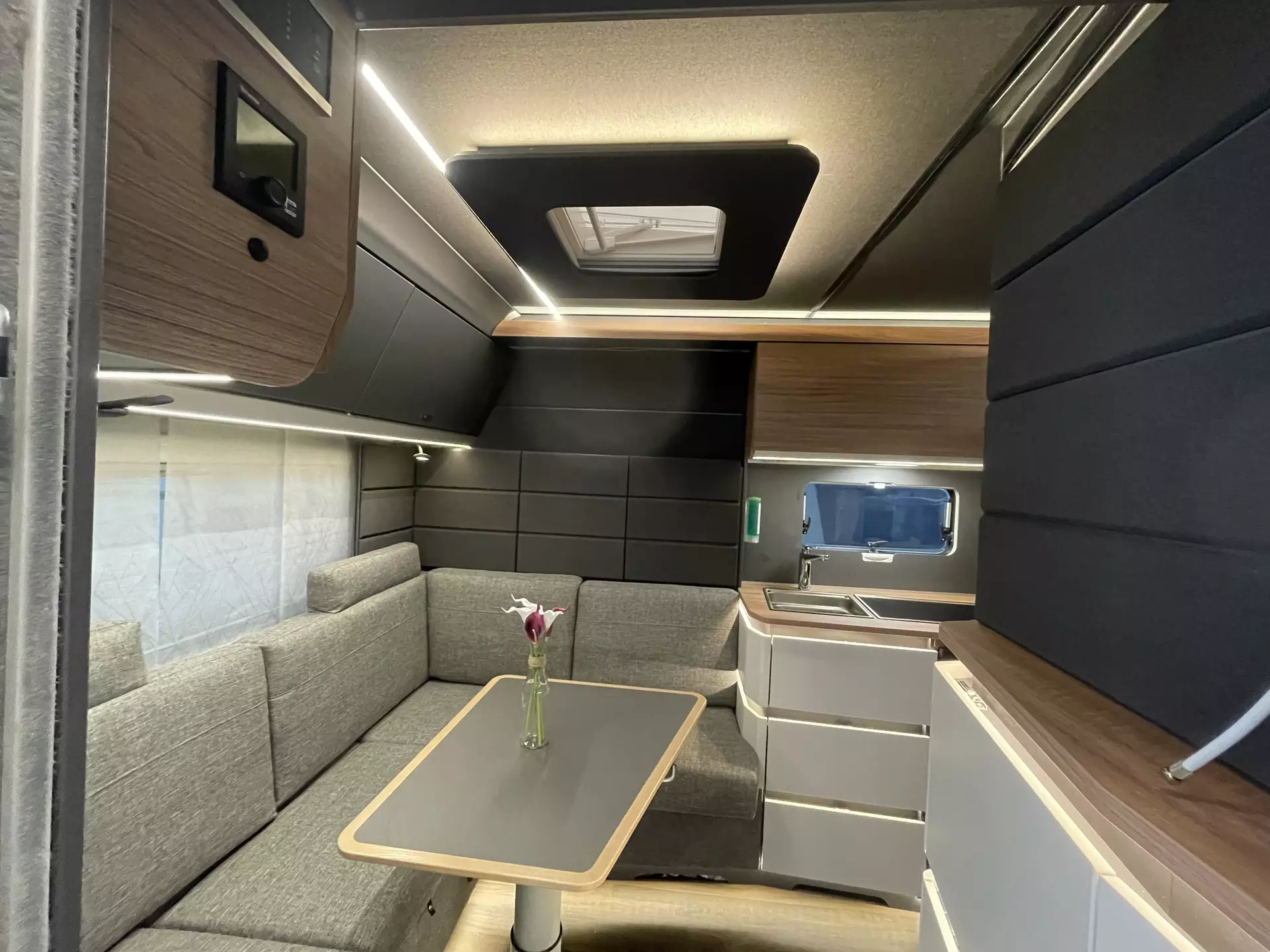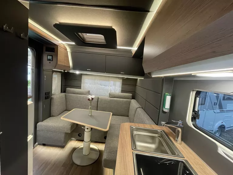 Und Wohlfühlen wird grenzenlos mit dem 5 Sterne Wohntraum zum Mitnehmen: Der außergewöhnliche Möbelbau sowie die stilvolle Einrichtung im Cocooning‐Design machen den AZUR zum echten Wohntraum. Innen wie außen besticht er durch eine einzigartige, dynamische Lichtsignatur. Besonderes Highlight: Der selbstheilende FibreFrame.