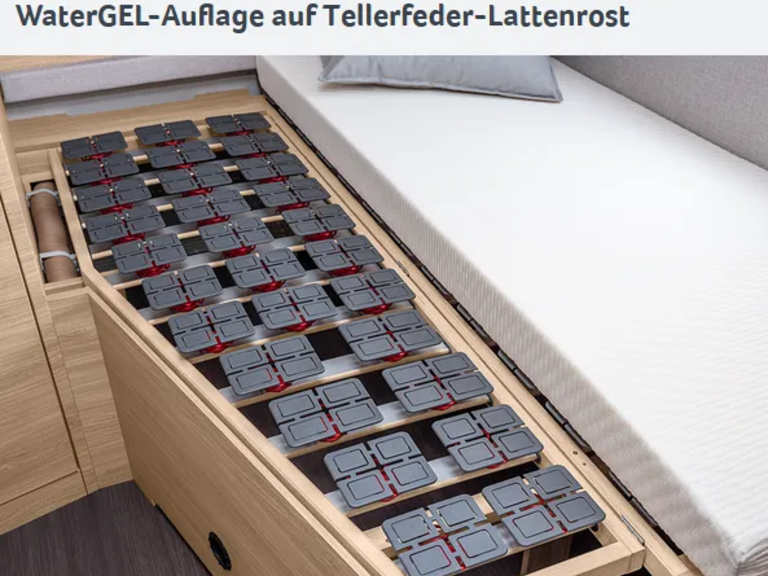 - KNAUS Komfortbett: EvoPore HRC Matratze inkl. WaterGEL-Auflage auf Tellerfeder-Lattenrost
