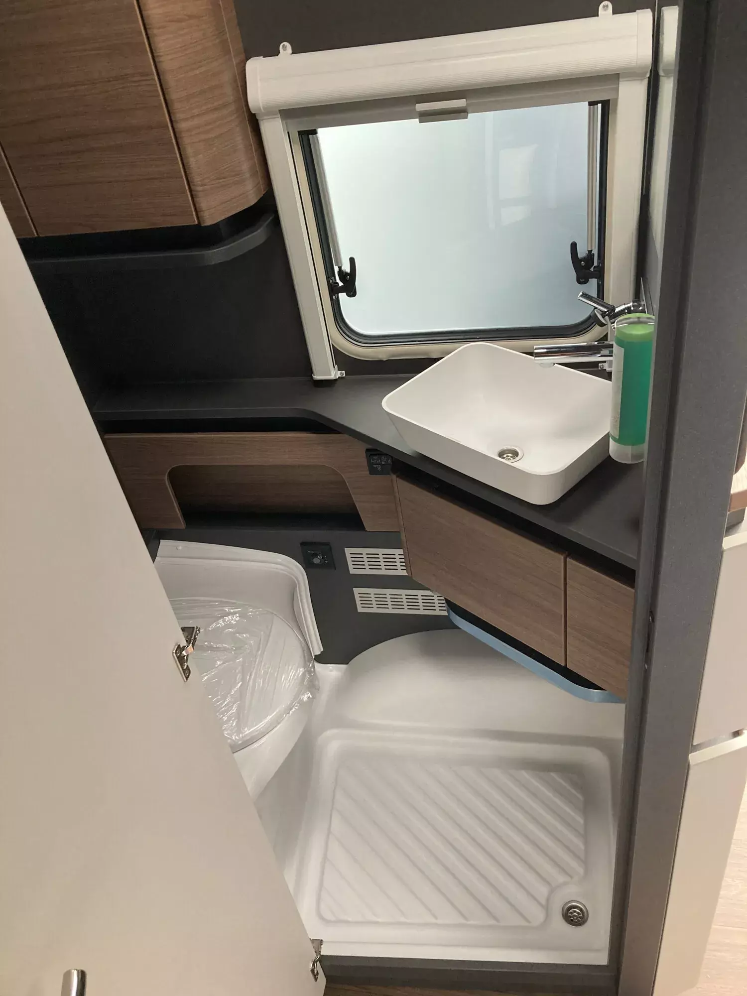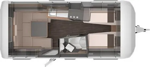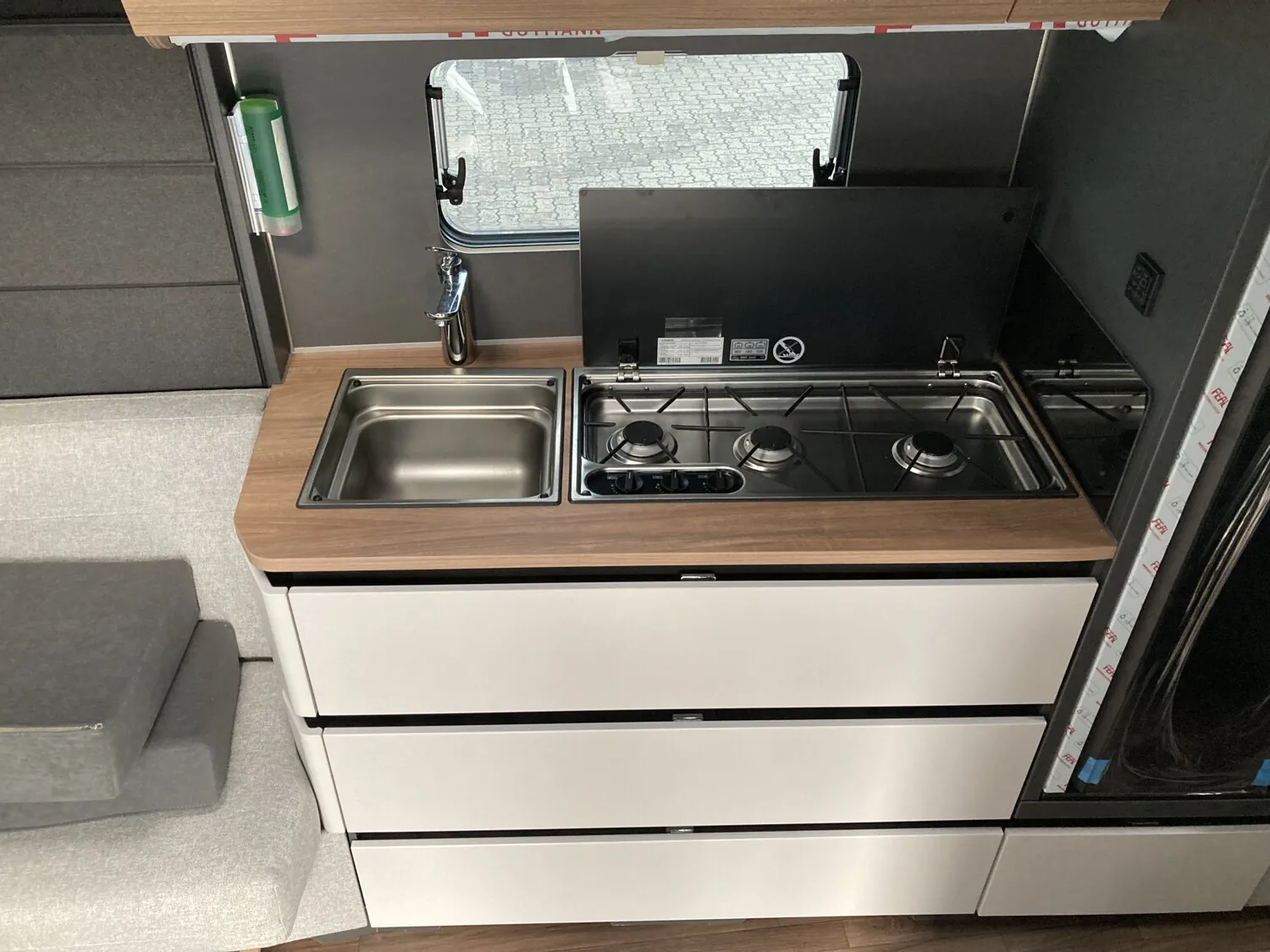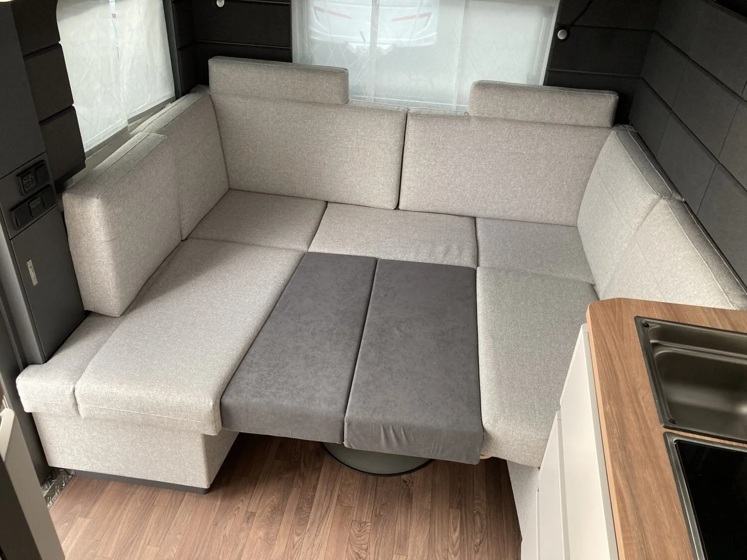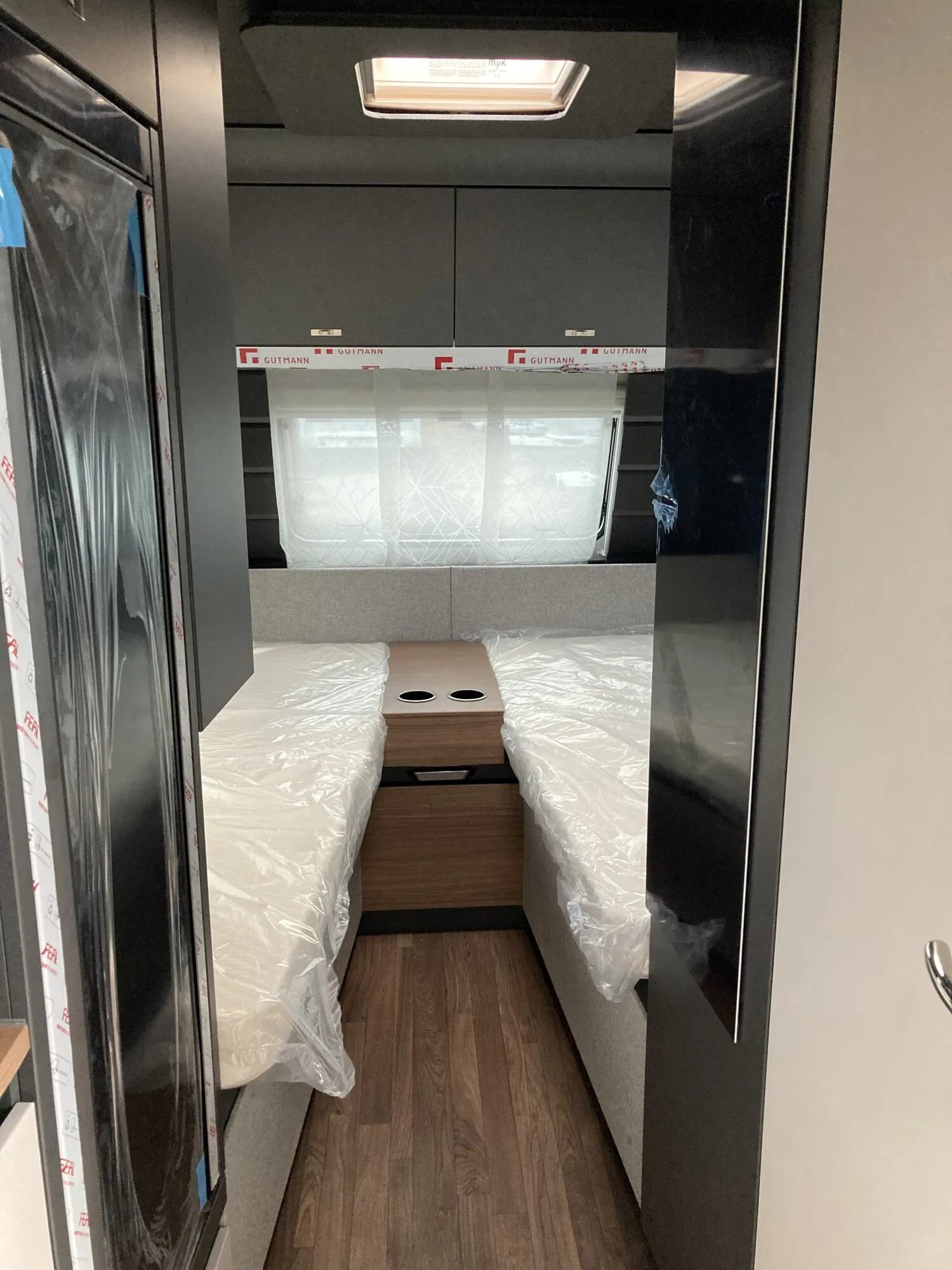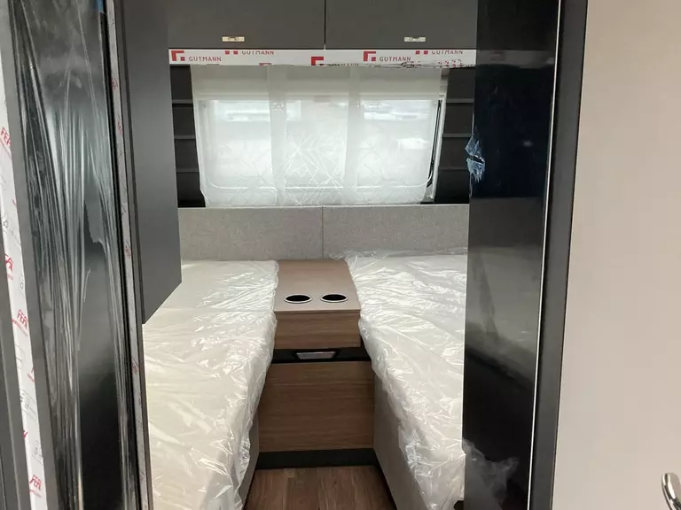 Fahrwerk mit Längslenkerachse, KNOTT.ANS – selbstnachstellende Bremse, MonoachserStützrad mit integrierter Stützlastanzeige, Standfixierung mit Kurbelstützen, Stabilisator-Sicherheits-Kupplung, Hydraulische Radstoßdämpfer, Rückfahrautomatik, Handbremse servounterstützt, Insektenschutztür, GFK-Dach mit reduzierter Hagelempfindlichkeit, Seitenwände in Glattblech – Monoachser, Vorzeltleuchte in LED-Technik, Schränke und Staukästen hinterlüftet, Paravent als Raumtrenner zum Schlafraum, Kühlschrank 133 Liter, Banktoilette THETFORD, Innenbeleuchtung in LED-Technik, Schwanenhalsleuchten