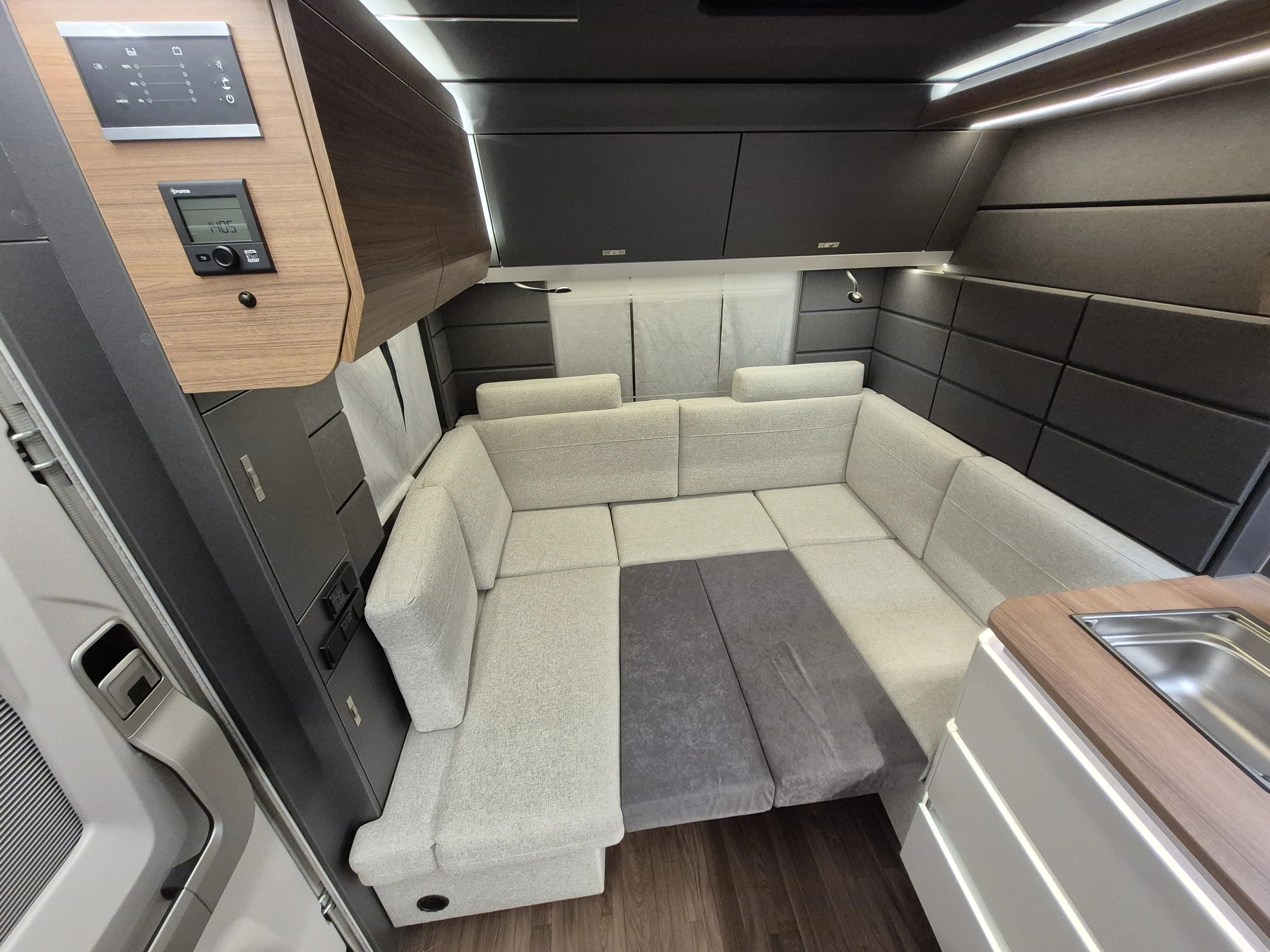 Und Wohlfühlen wird grenzenlos mit dem 5 Sterne Wohntraum zum Mitnehmen: Der außergewöhnliche Möbelbau sowie die stilvolle Einrichtung im Cocooning‐Design machen den AZUR zum echten Wohntraum. Innen wie außen besticht er durch eine einzigartige, dynamische Lichtsignatur. Besonderes Highlight: Der selbstheilende FibreFrame.