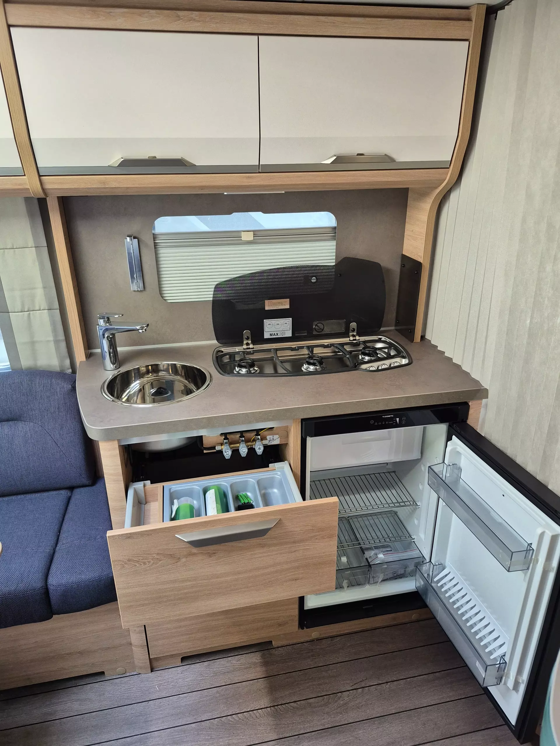 - 3-Flammen-Kocher mit elektrischer Zündung, Glasabdeckung und Spülbecken in Edelstahl