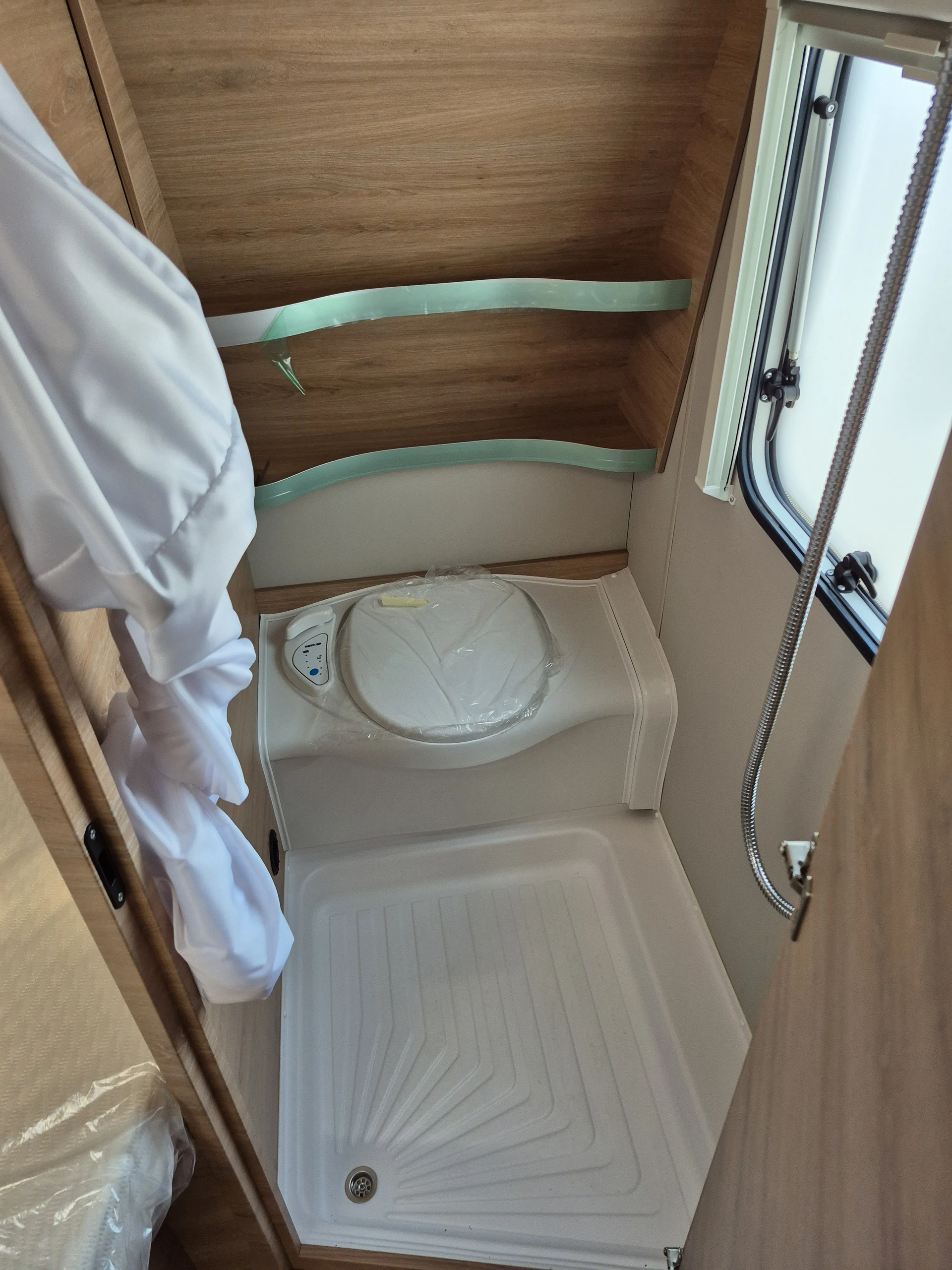 - Duschausbau Längs- und Winkelwaschraum: Brausearmatur, Brausestange/Halter, Duschvorhang