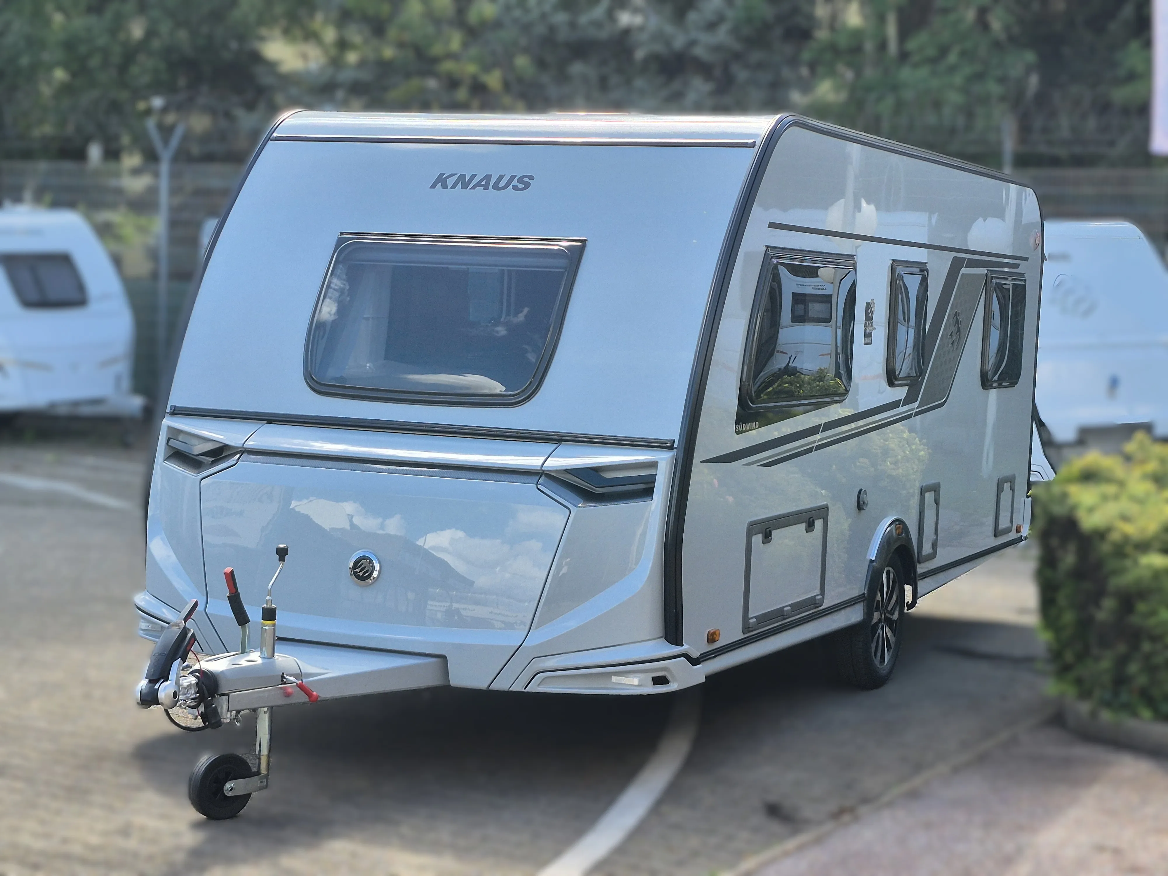 - KNAUS Embleme im Bug und im Heck, schwarz/chrom
