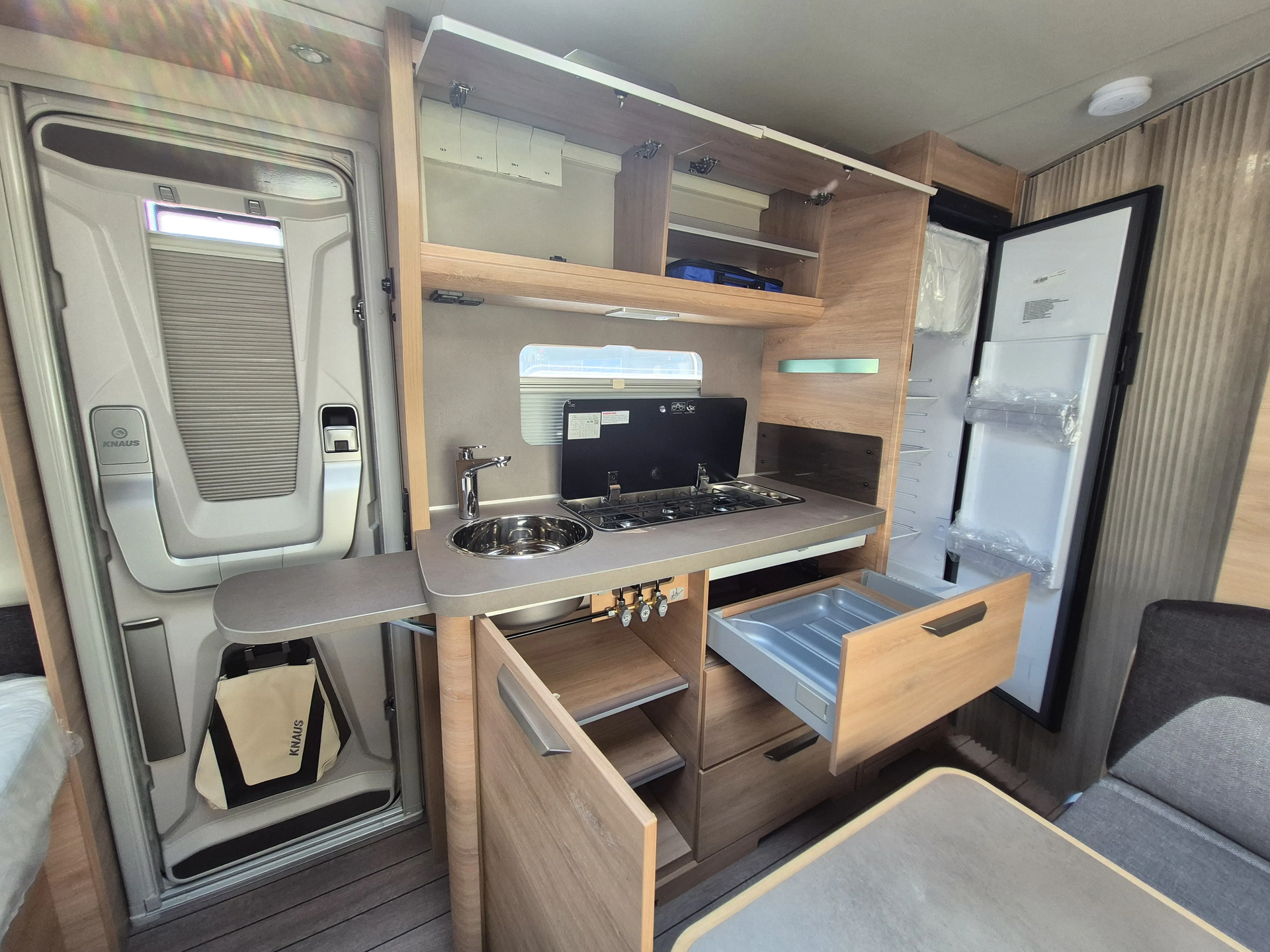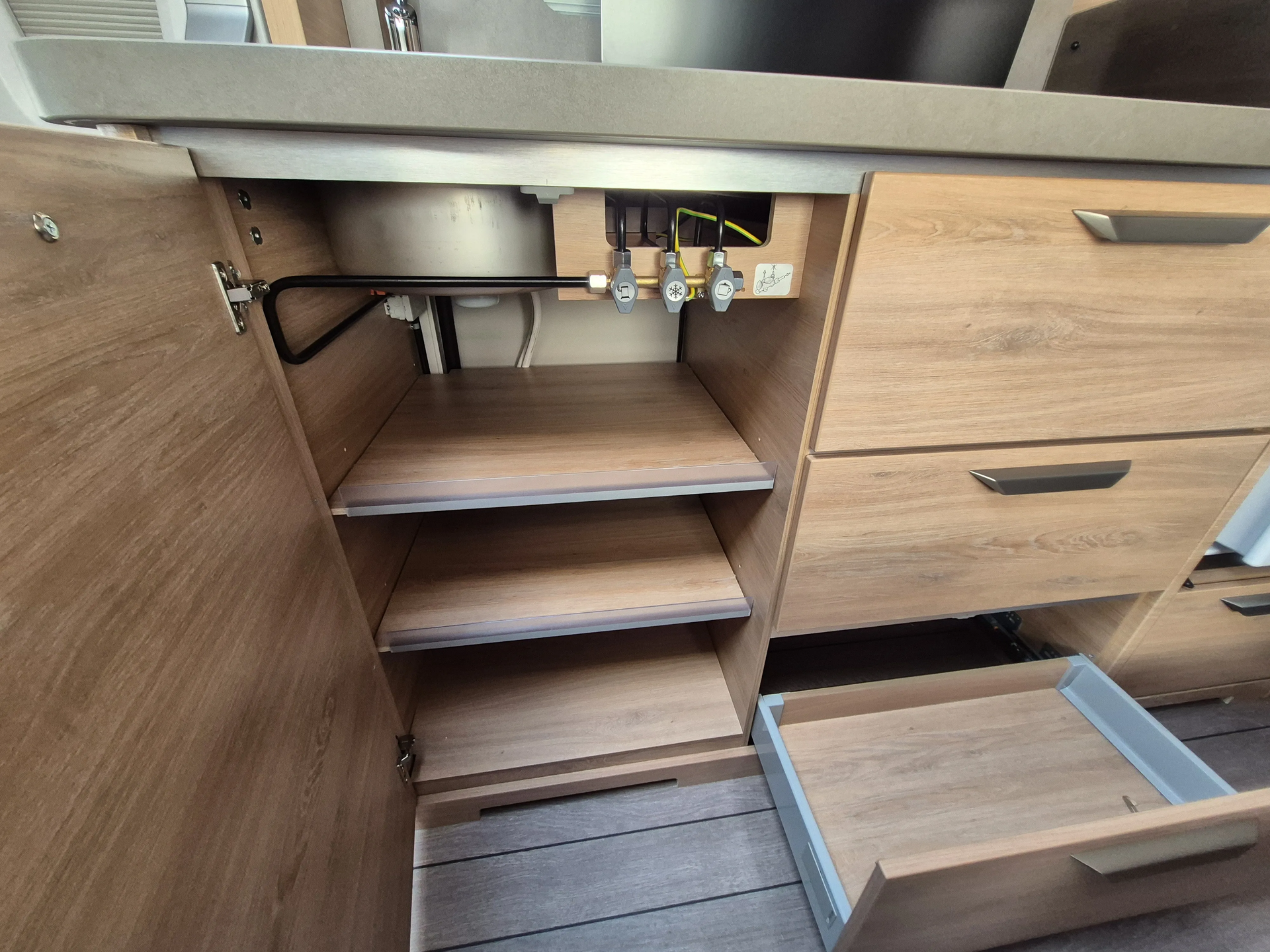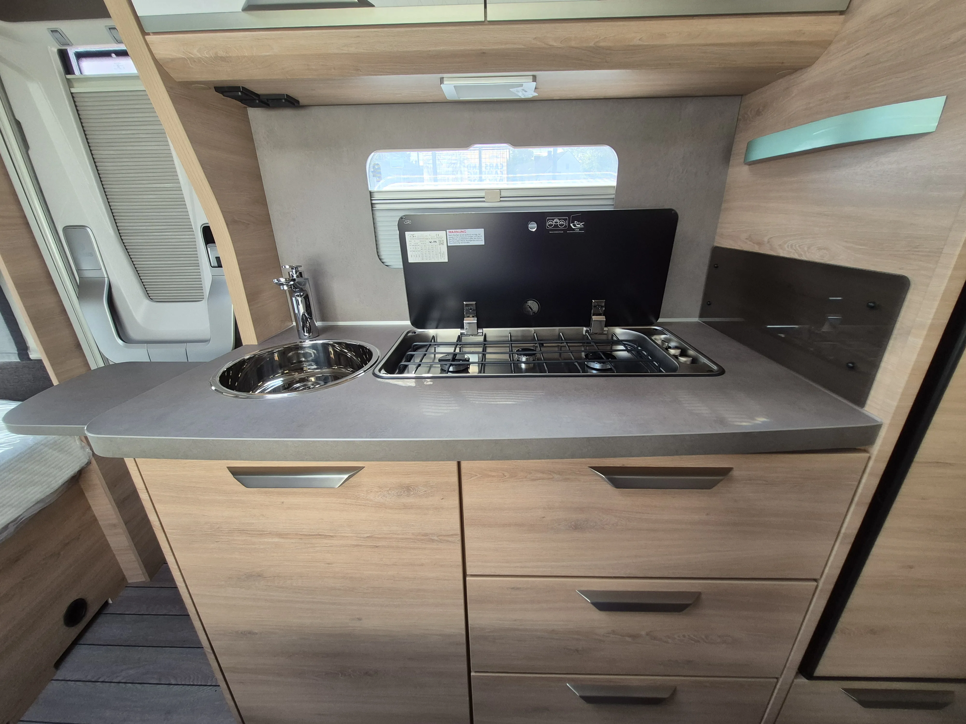 - Gas Paket ( Heizung TRUMA VarioHeat, Gasanlage 30 mbar, Gasschlauch Ausführung D/AT/ES/FI/BE/IT/NL/DK, Gasregler Ausführung D/AT/ES/FI/BE/IT/NL/DK, Gaskasten mit Außenklappe, Kühlschrank 142 Liter, 3-Flammen-Kocher mit elektrischer Zündung, Glasabdeckung und Spülbecken in Edelstahl)