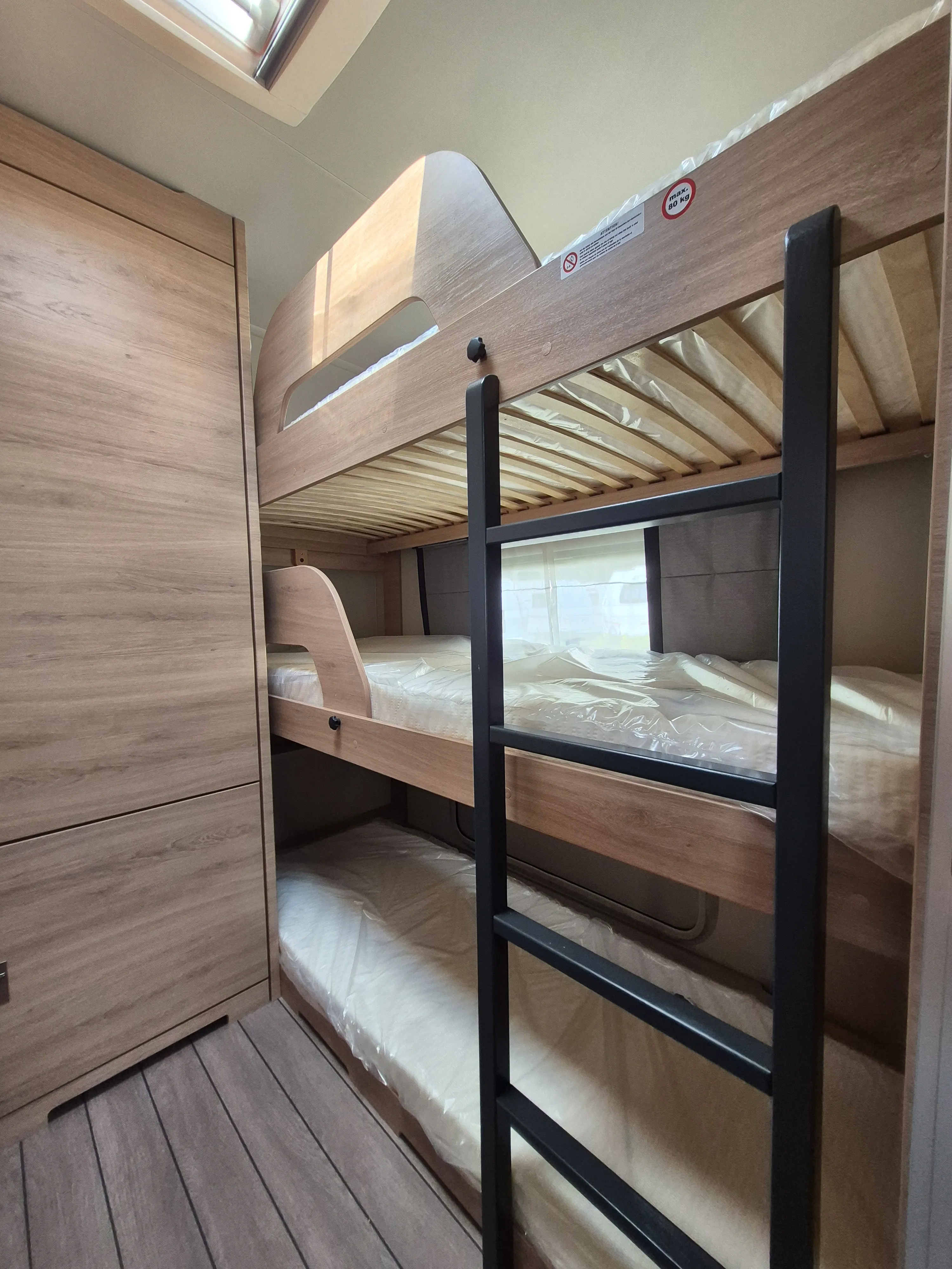 - Multifunktionales Etagenbett (3-fach) inkl. Garagentüre 100 x 120 cm, mit Rahmenfenster inkl. Verdunklung und Insektenschutz