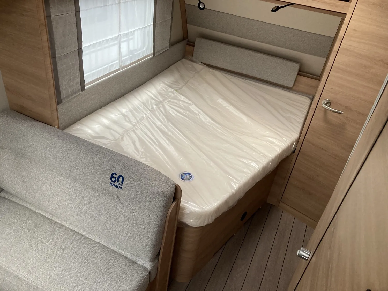 Deichselabdeckung, Insektenschutztür, Seitenwände in Glattblech - Monoachser, Aufbautür: PREMIUM, Sonderbeklebung "KNAUS 60 YEARS", MARKEN Embleme im Bug und im Heck, Aufbaudesign Campovolo Grau - Monoachser, Gas Paket, AL-KO Schwerlastkurbelstützen, Auflastung auf 1.800 kg, Stützrad mit integrierter Stützlastanze, 17" Leichtmetallfelgen - Monoachser, AL-KO AAA Premium Brake, TV-Vorbereitung mit Steckdose, Combi-Aussensteckdose (Strom + TV), TV-Halter, Stimmungsvolle Ambientebeleuchtung, Steckdosen Plus-Paket, MARKEN Bluetooth Soundsystem, COZY HOME-Paket "60 YEARS", Rauchmelder, Polster: CASUAL SILVER, Serienpolster: mit "KNAUS 60 YEARS" Sticker