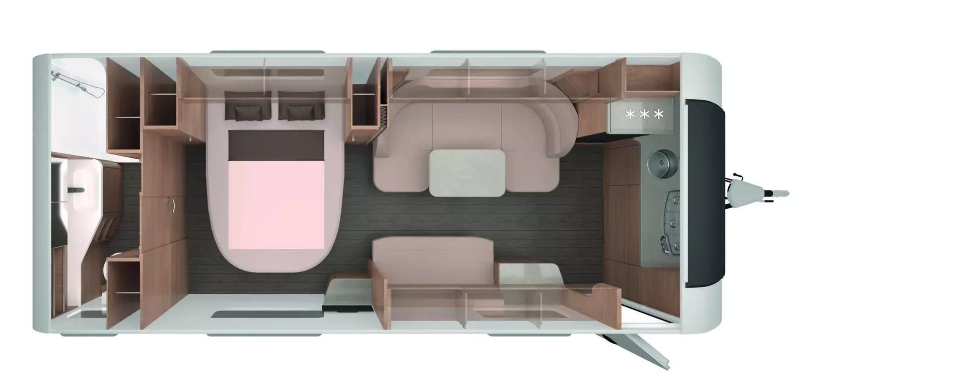 * Ein eleganter, großzügiger und ganzjährig komfortabler Premium-Wohnwagen – ideal für Paare, die viel Platz, hochwertige Materialien und echtes Wohlfühlambiente suchen.