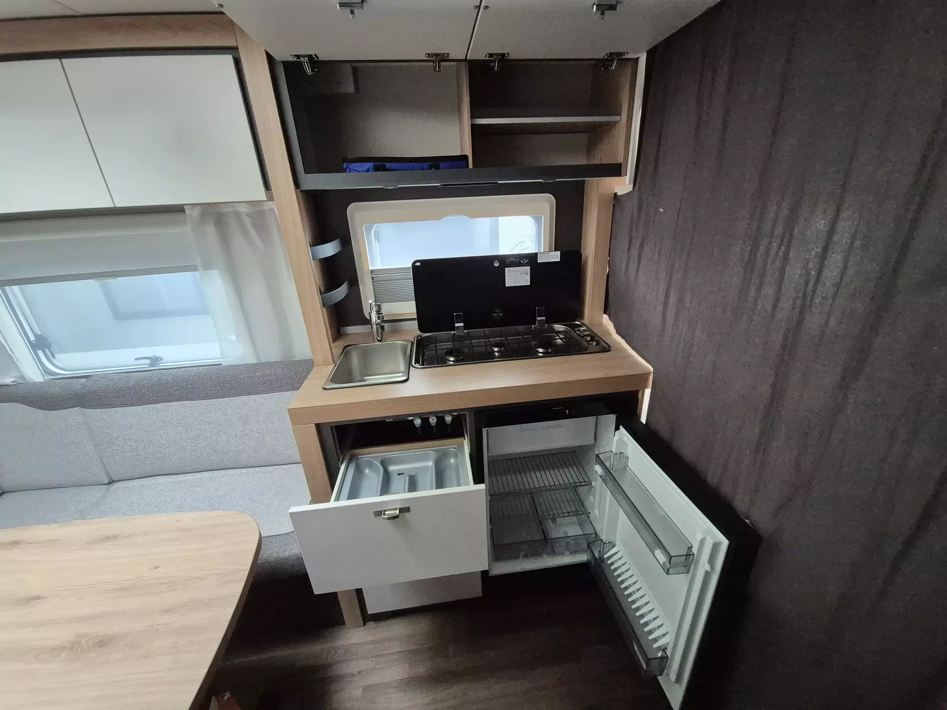 - Fenster mit Doppelverglasung getönt, vorgehängt und ausstellbar, mit Insektenschutz und Verdunklung