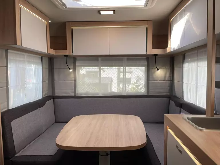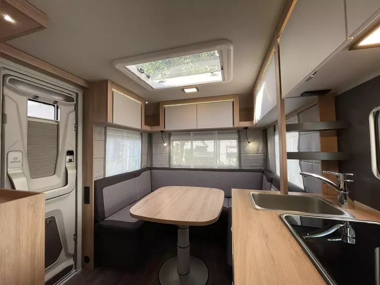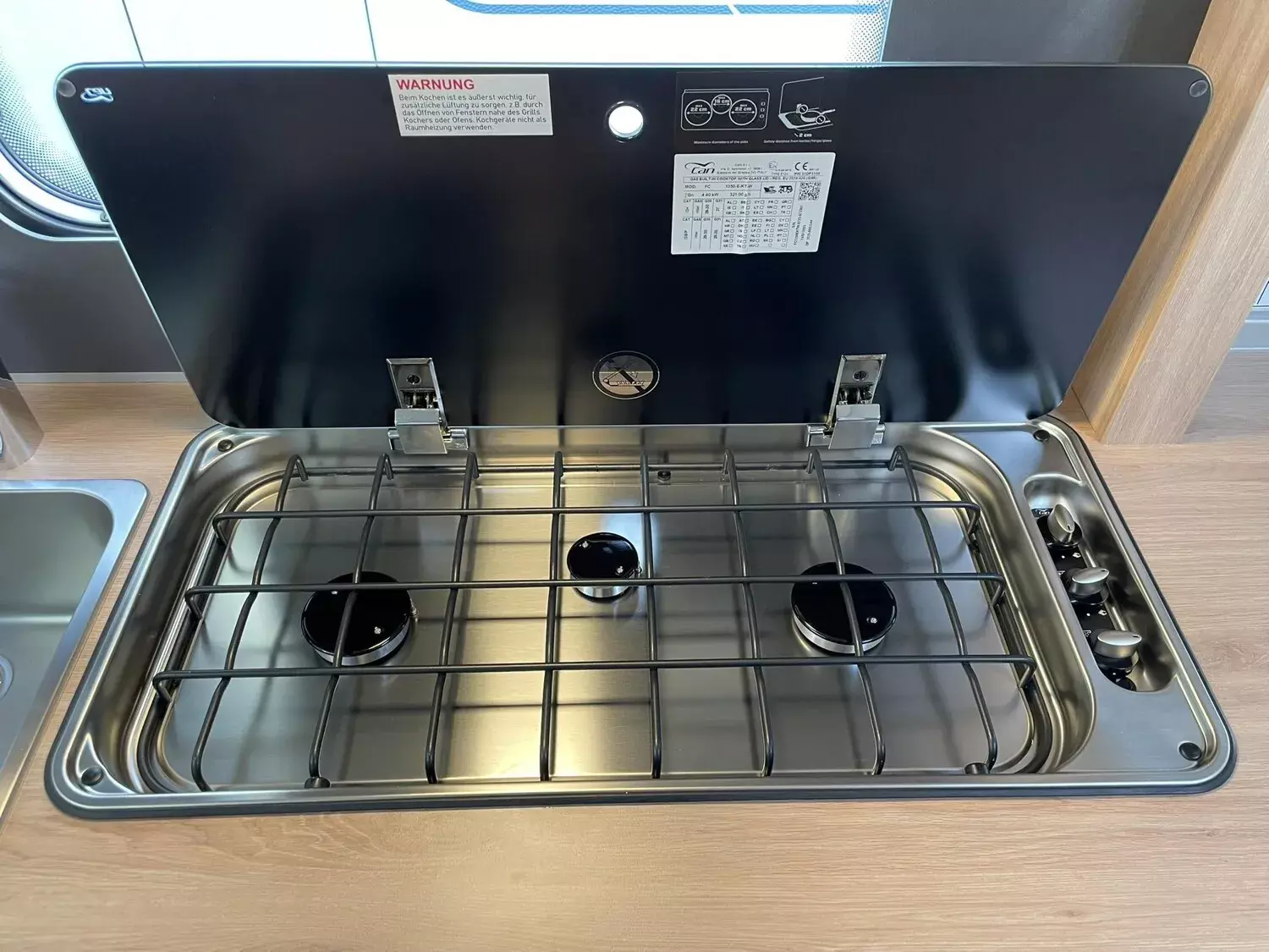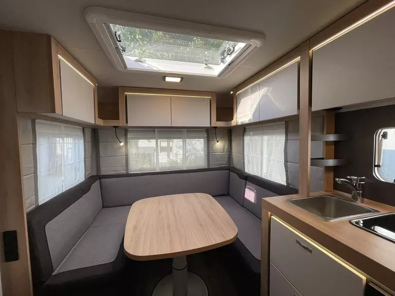 Seitenwaende in Glattblech - Monoachser, Fahrwerk mit Längslenkerachse, KNOTT.ANS – selbstnachstellende Bremse, Stützrad mit integrierter Stützlastanzeige, Schwerlastkurbelstützen, Stabilisator-Sicherheits-Kupplung, Hydraulische Radstoßdämpfer, Rückfahrautomatik, Handbremse servounterstützt, Aufbautür: KNAUS PREMIUM, Insektenschutztür, Ein-Schlüssel-Schließanlage, Gaskasten mit Außenklappe, GFK-Dach mit reduzierter Hagelempindlichkeit, Vorzeltleuchte in LED-Technik, Textiler Raumtrenner, Sitzgruppe im Heck, EvoPore HRC Matratze, 3-Flammen-Kocher mit Glasabdeckung, Kassetten-Toilette DOMETIC drehbar, Umluftanlage, Gasheizung TRUMA Heizung S 3004, Wasserversorgung mit Tauchpumpe, Warmwasserversorgung mit Einhebel-Mischbatterie, Frischwassertank 45 Liter, Abwassertank 25 Liter