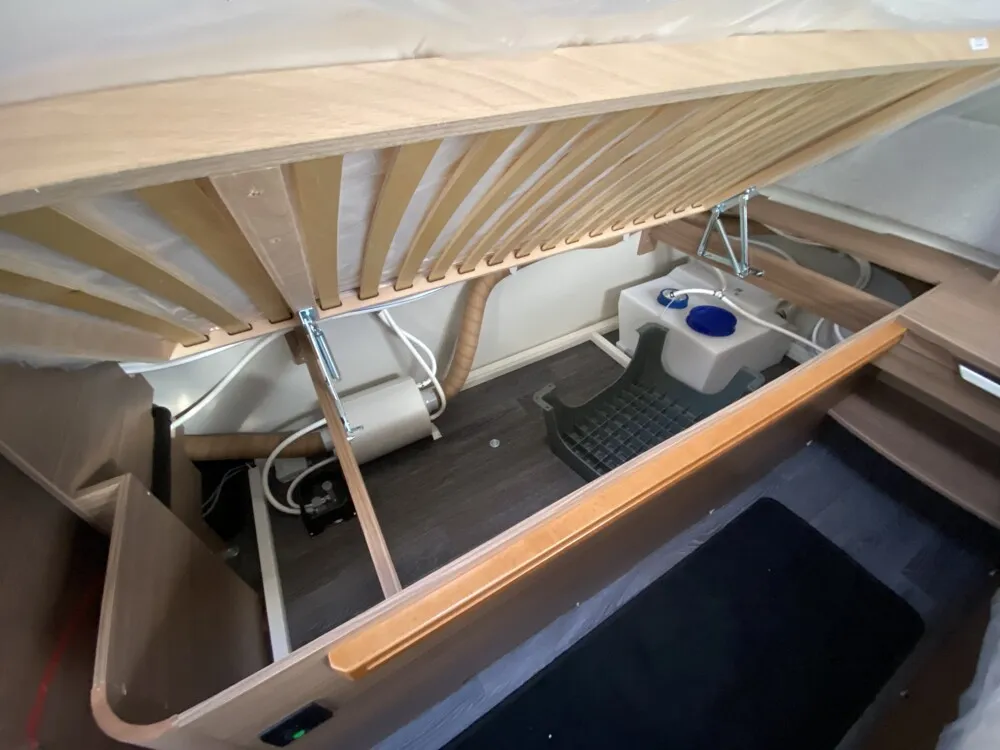 - Plus-Paket (Seifen- und Spülmittelspender, Dachhaube (Hebe-Kipp) 96 x 65 cm, mit Insektenschutz und Verdunklung (Bug), Wasserfiltersystem "bluuwater", MediKit Gutschein, AL-KO AAA Premium Brake, Stützrad mit integrierter Stützlastanzeige, AL-KO Schwerlastkurbelstützen, Insektenschutztür)