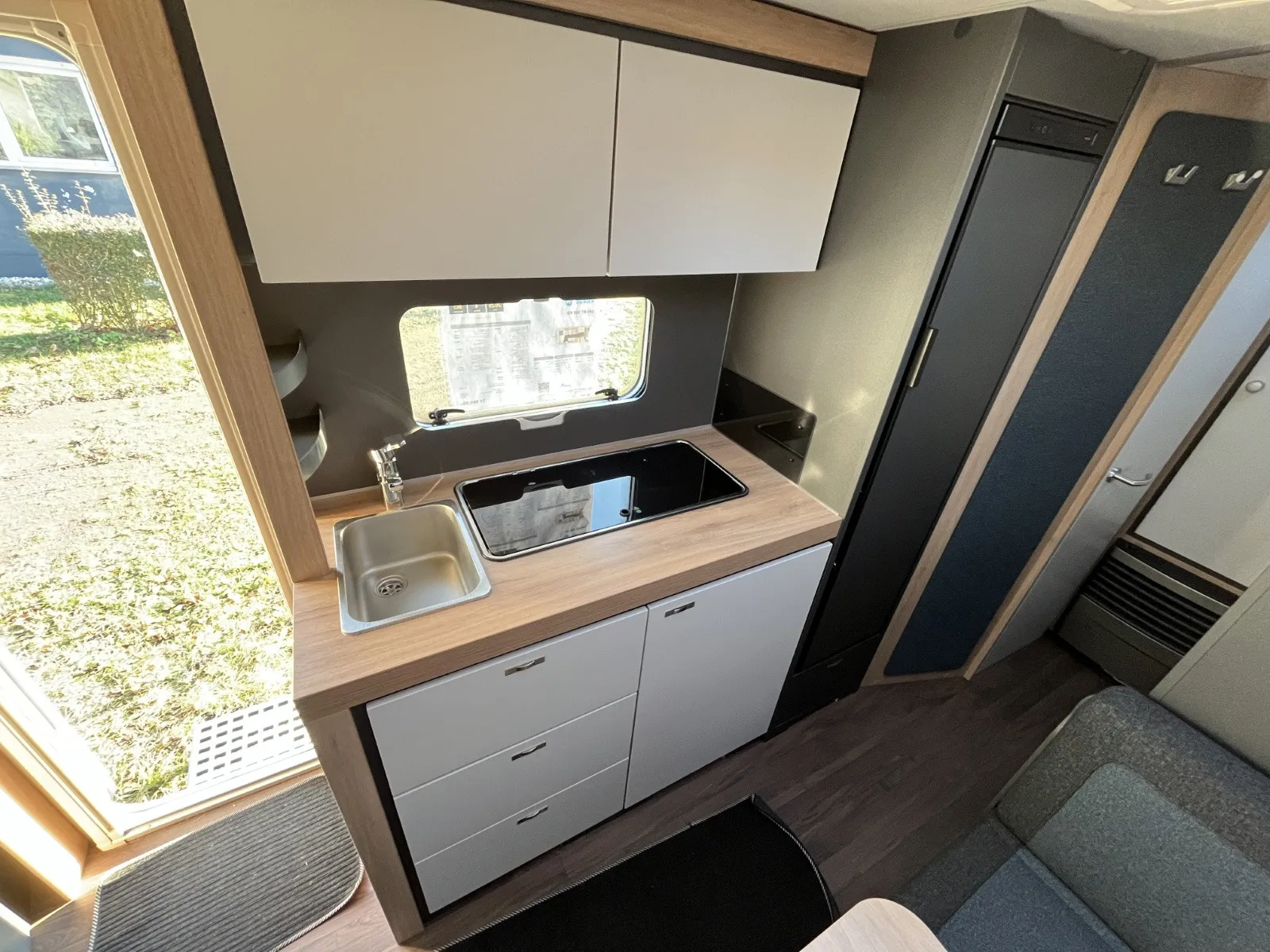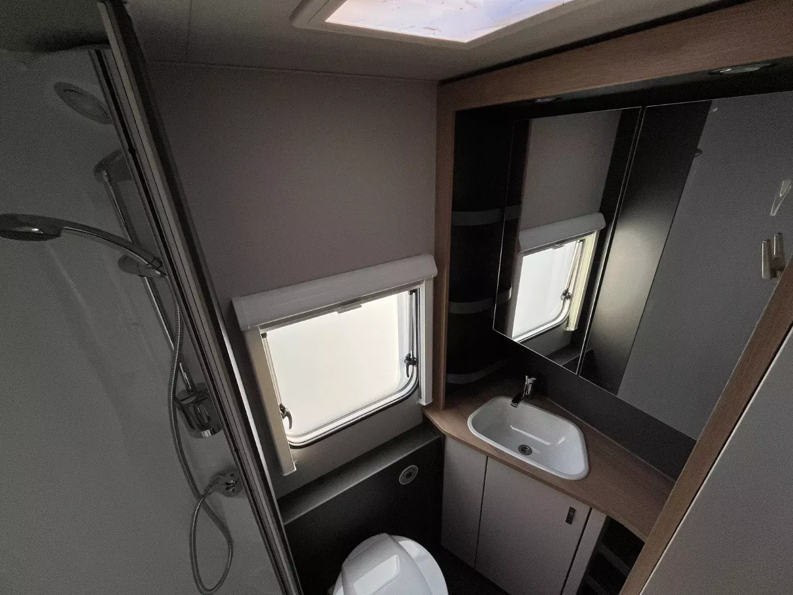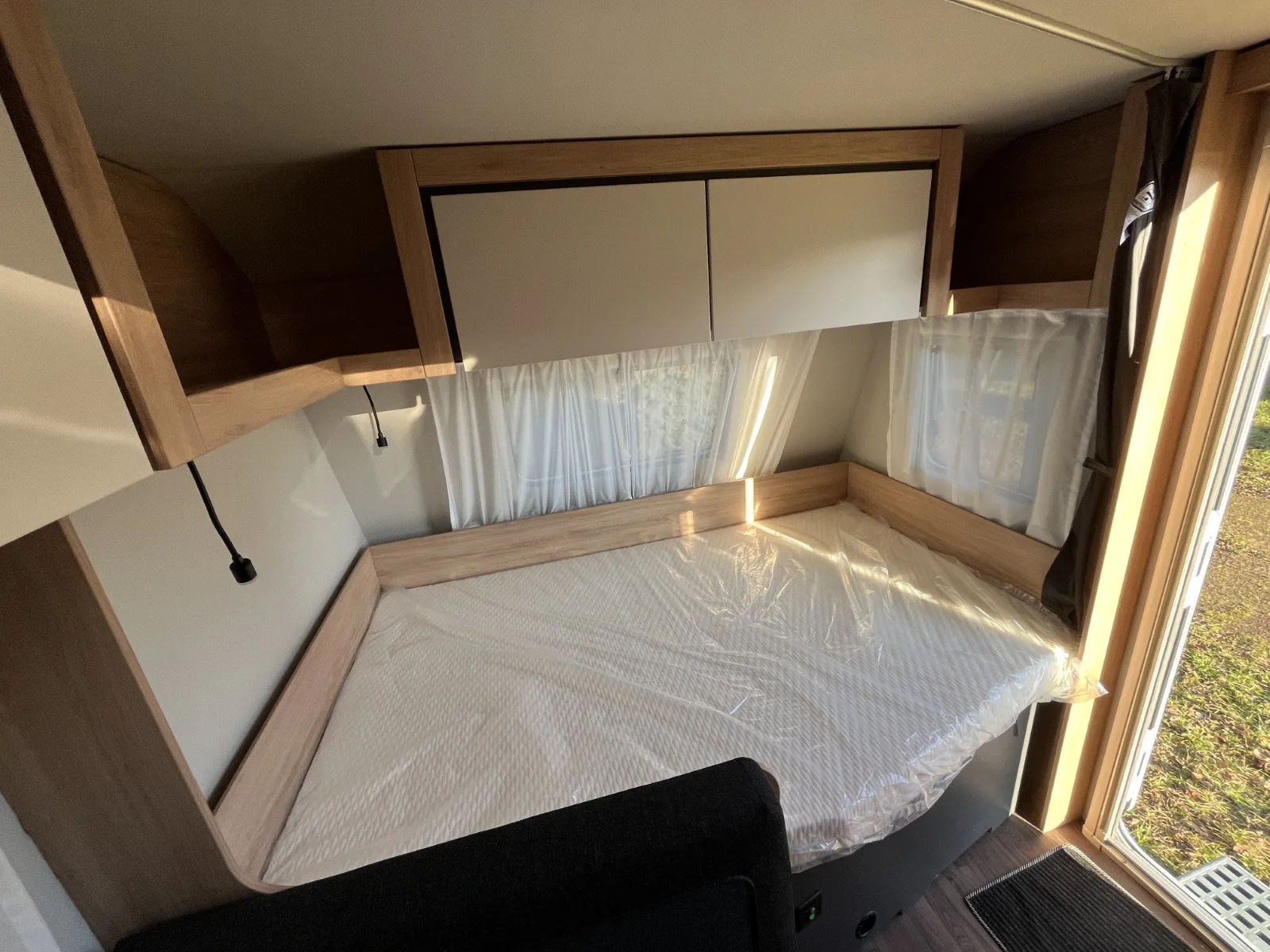 * Durch das Plus- und Designpaket ist der Wohnwagen nicht nur optisch hochwertig, sondern auch praktisch ausgestattet: Insektenschutztür, große Dachhaube, Schwerlaststützen, Wasserfiltersystem, 17-Zoll-Alufelgen und glattblechverkleidete Außenwände. Die Komfort-Nasszelle mit Dusche, TRUMA DuoControl CS und zahlreiche Steckdosen erhöhen den Komfort unterwegs. Besonders praktisch ist die große Serviceklappe sowie die Garagentür am Etagenbett – perfekt für Fahrräder oder Campingausrüstung.