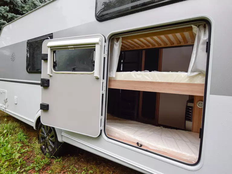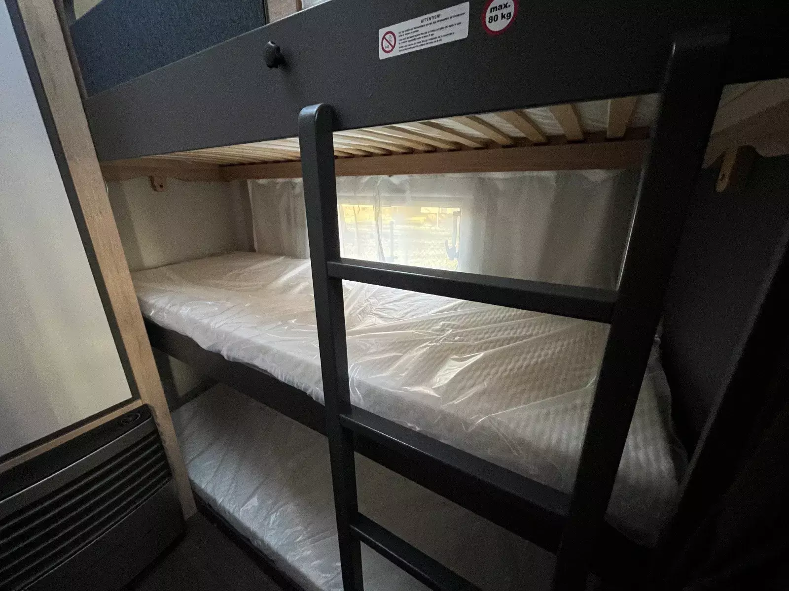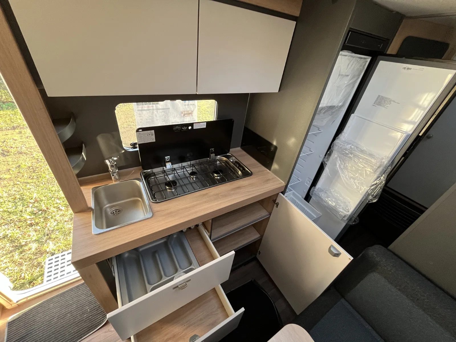 * Durch das Plus- und Designpaket ist der Wohnwagen nicht nur optisch hochwertig, sondern auch praktisch ausgestattet: Insektenschutztür, große Dachhaube, Schwerlaststützen, Wasserfiltersystem, 17-Zoll-Alufelgen und glattblechverkleidete Außenwände. Die Komfort-Nasszelle mit Dusche, TRUMA DuoControl CS und zahlreiche Steckdosen erhöhen den Komfort unterwegs. Besonders praktisch ist die große Serviceklappe sowie die Garagentür am Etagenbett – perfekt für Fahrräder oder Campingausrüstung.