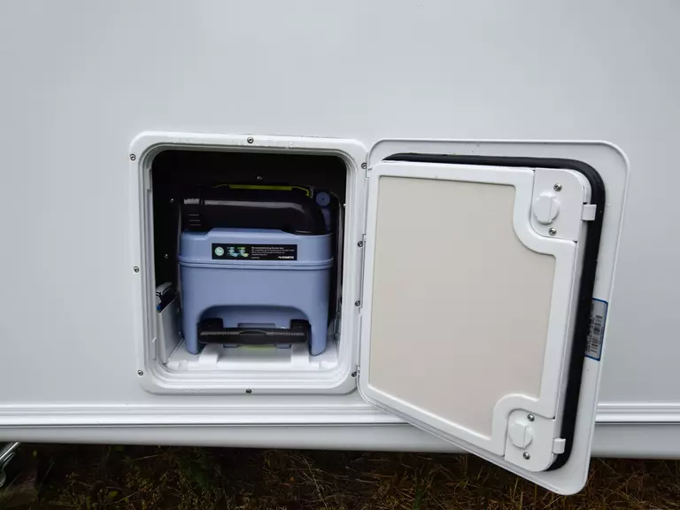 - Plus-Paket - Monoachser: Dachhaube (Hebe-Kipp) 96 x 65 cm, mit Insektenschutz und Verdunklung (Mitte), Insektenschutztür, Schwerlastkurbelstützen, Stützrad mit integrierter Stützlastanzeige, KNOTT.ANS – selbstnachstellende Bremse, Wasserfiltersystem „bluuwater“, MediKit Gutschein, Seifen- und Spülmittelspender