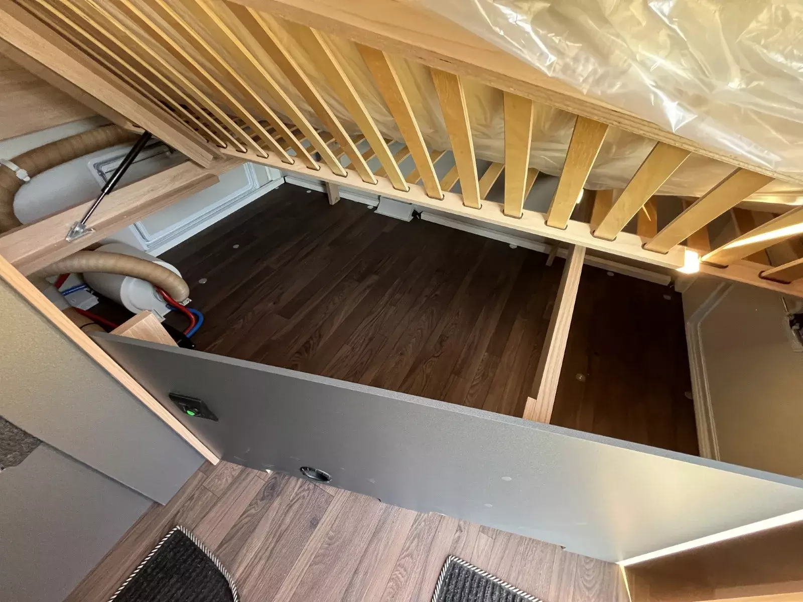 - Multifunktionales Etagenbett (3-fach) inkl. Garagentüre 100 x 120 cm, mit Rahmenfenster inkl. Verdunklung und Insektenschutz; NUR FÜR 500 KD, 580 QS, 650 FDK