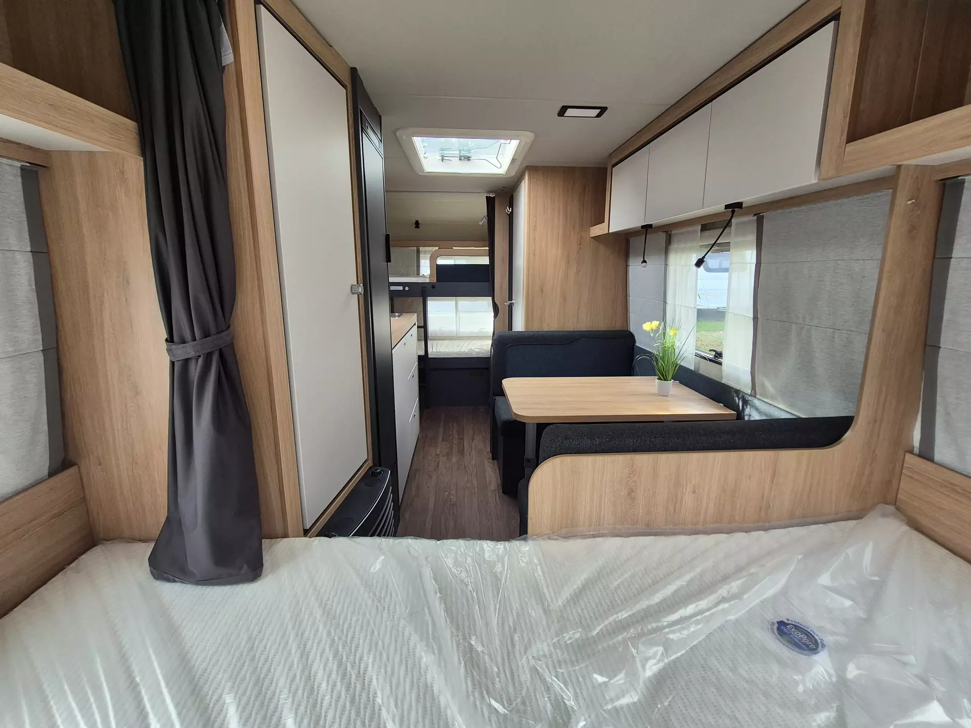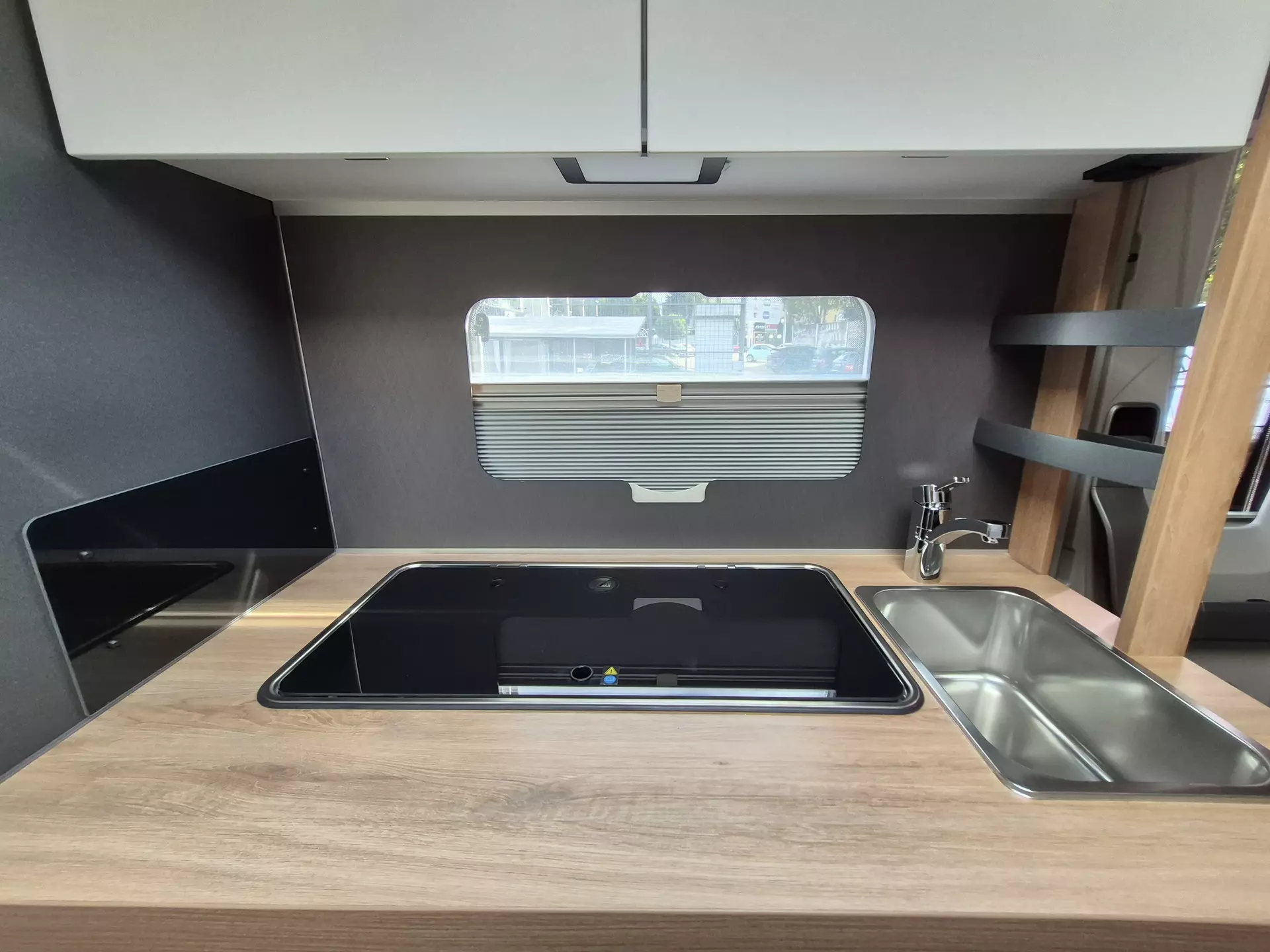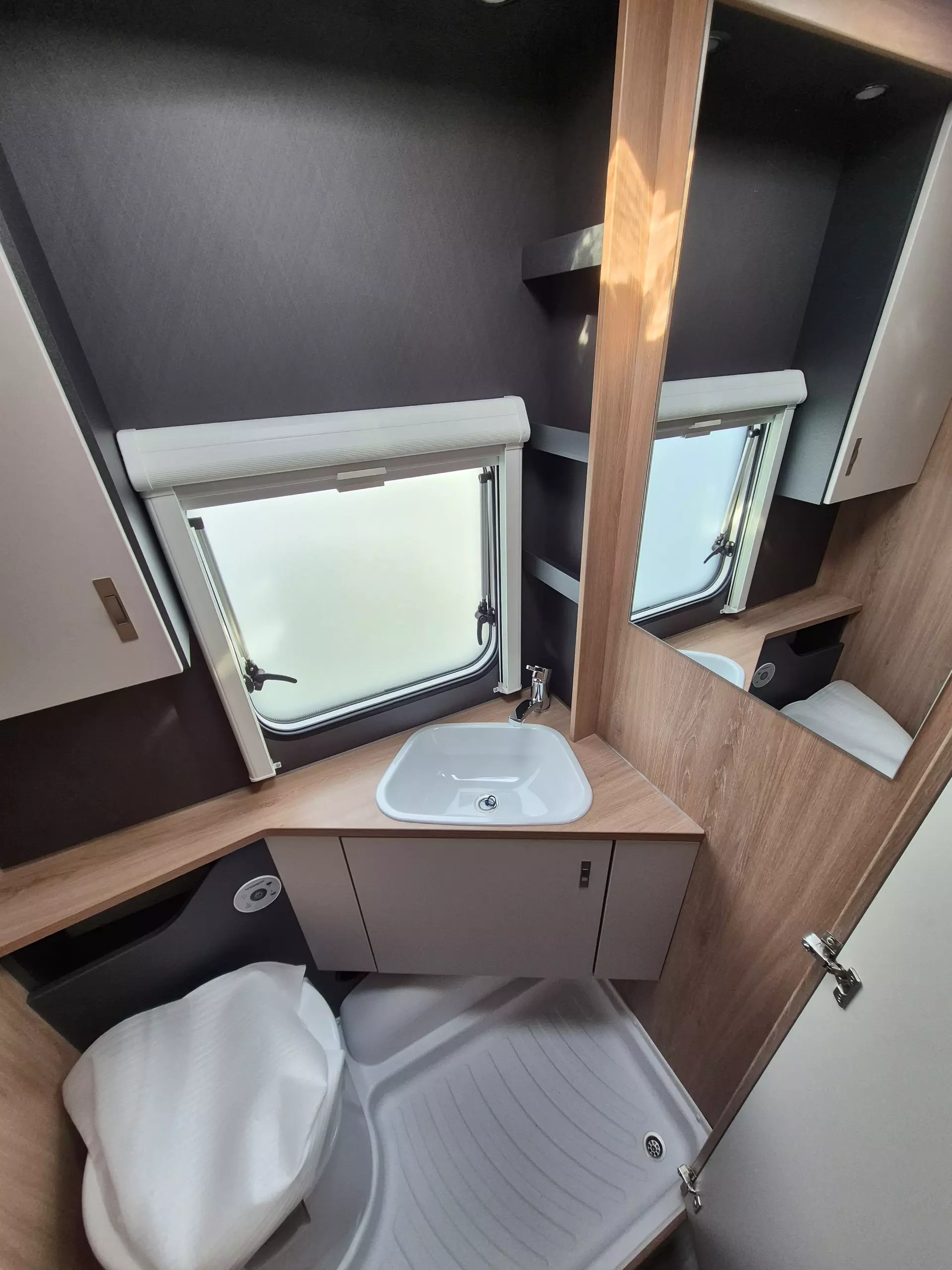 - Fenster mit Doppelverglasung getönt, vorgehängt und ausstellbar, mit Insektenschutz und Verdunklung