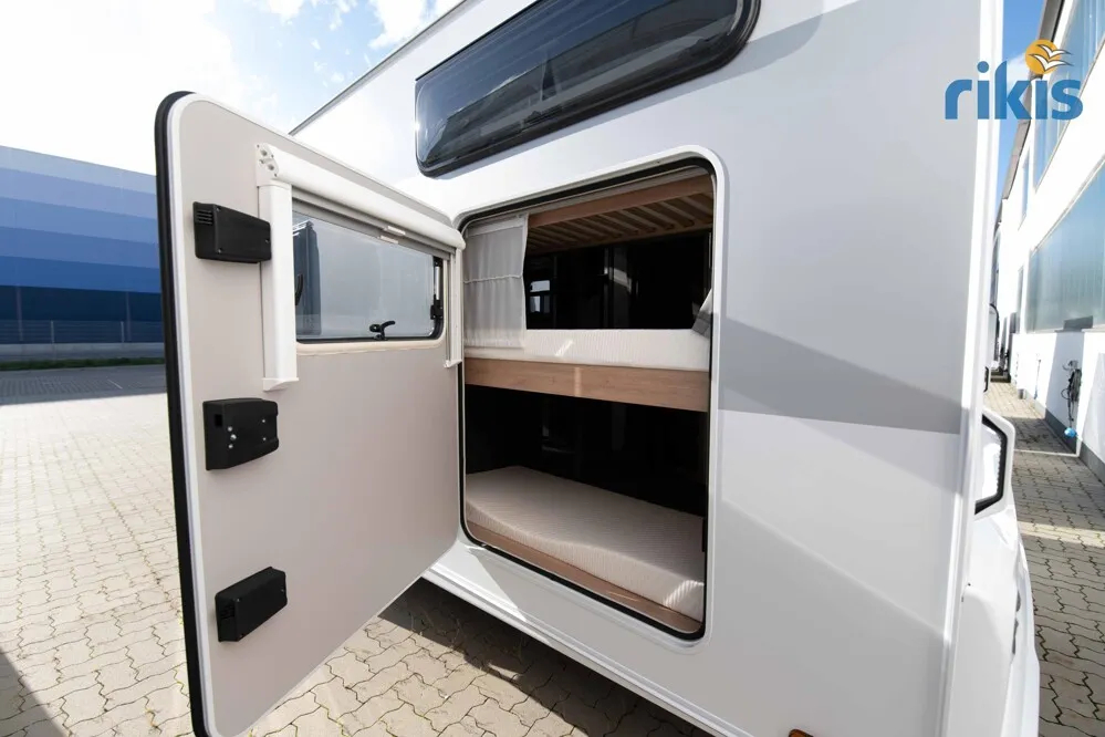 - Multifunktionales Etagenbett (3-fach) inkl. Garagentüre 100 x 120 cm, mit Rahmenfenster inkl. Verdunklung und Insektenschutz