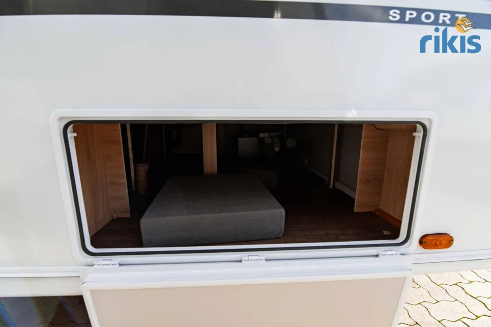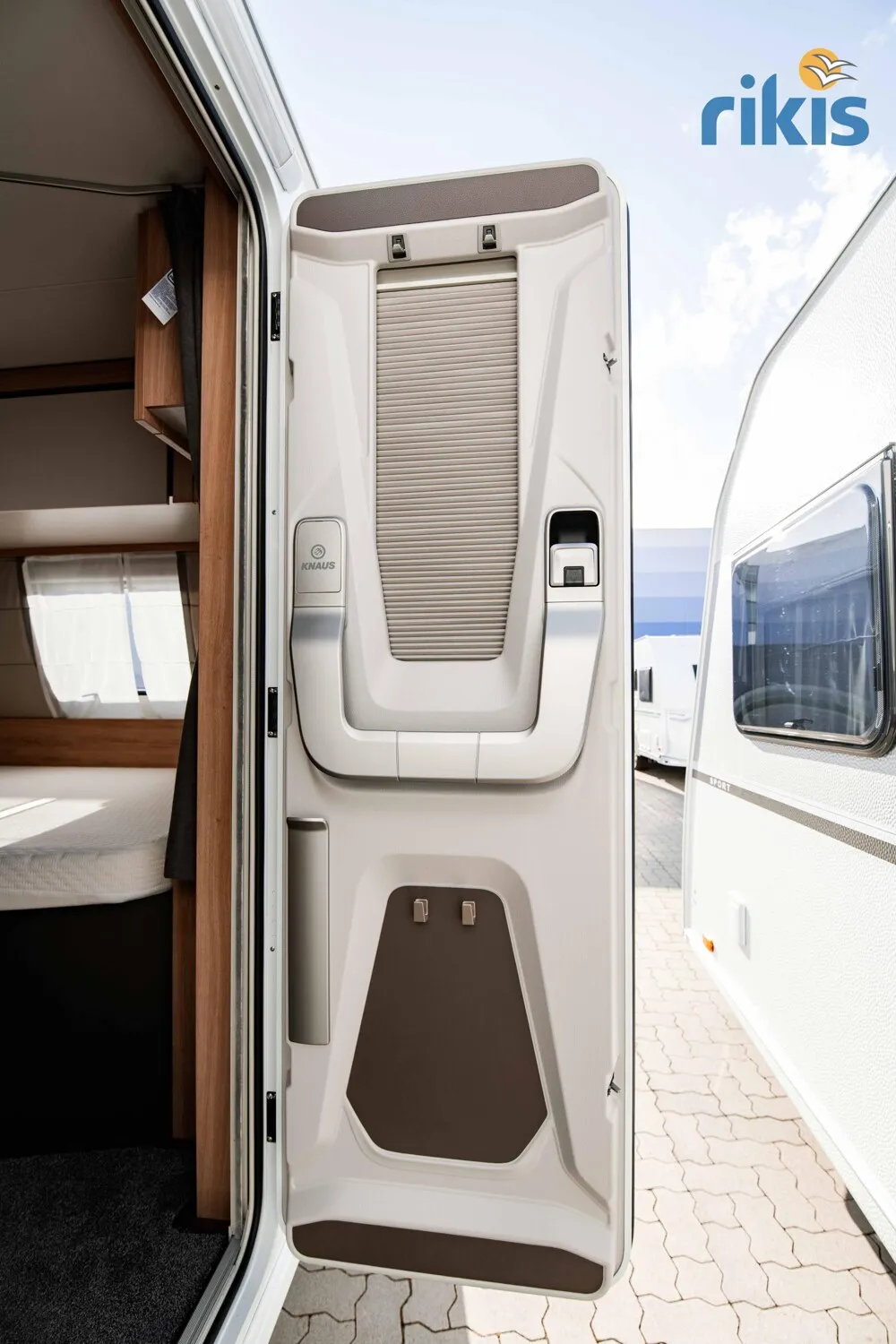 - Design-Paket - Monoachser (17" Leichtmetallfelgen ? Monoachser, Titanmetallic lackiert im exklusiven KNAUS Design, Seitenwände in Glattblech ? Monoachser, KNAUS Embleme im Bug und im Heck, schwarz/chrom, Deichselabdeckung)