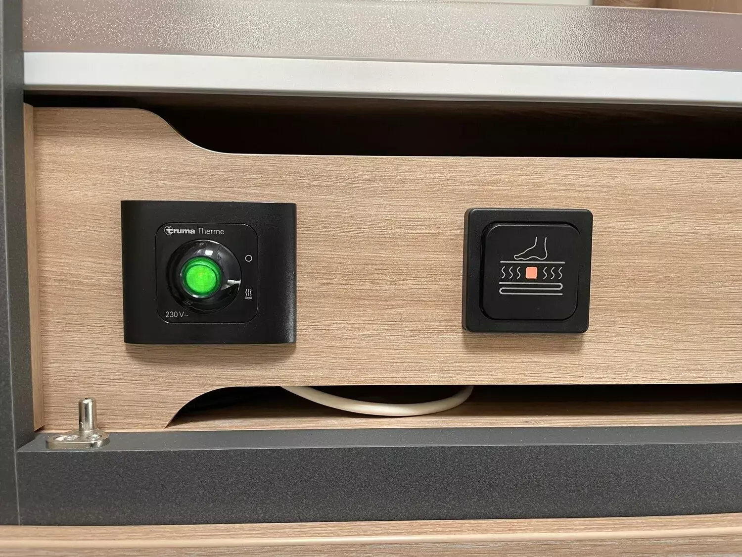 Fahrwerk mit Längslenkerachse, KNOTT.ANS – selbstnachstellende Bremse, Monoachser, Stützrad mit integrierter Stützlastanzeige, Schwerlastkurbelstützen, Stabilisator-Sicherheits-Kupplung, Hydraulische Radstoßdämpfer, Rückfahrautomatik, Handbremse servounterstützt, Aufbautür: KNAUS PREMIUM, Insektenschutztür, Ein-Schlüssel-Schließanlage, Gaskasten mit Außenklappe, Serviceklappe 70 x 40,5 cm Bug rechts, Fenster mit Doppelverglasung getönt vorgehängt und ausstellbar mit Insektenschutz und Verdunklung, Zusätzliches ausstellbares Fenster Bug rechts, Ausstellfenster (Bug), Pilzlüfter im Bug, Dachhaube (Hebe-Kipp) 96 x 65 cm mit Insektenschutz und Verdunklung (Mitte), Dachhaube 40 x 40 cm klar mit Insektenschutz und Verdunklung (Heck), Pilzlüfter (Toilettenraum), Ausstellfenster 52 x 50 cm mit Insektenschutz und Verdunklung (Toilettenraum), GFK-Dach mit reduzierter Hagelempindlichkeit, Aufbaudesign Weiß – Monoachser, Vorzeltleuchte in LED-Technik, Dritte Bremsleuchte in LED-Technik, KNAUS CATEYE evolution-Rückleuchte mit exklusiver Nachtsignatur und dynamischen Blinkleuchten in Voll-LED-Technik, Schränke und Staukästen hinterlüftet, Möbeldekor: Modern Oak, Möbeldekor: Samoa, DarkVinyl-Bodenbelag, Textiler Raumtrenner, EvoPore HRC Matratze, Einsäulenhubtisch, 3-Flammen-Kocher mit Glasabdeckung, Automatische Energiewahl für Kühlschrank (AES), Duschausbau Längs- und Winkelwaschraum, Klappbare Wäschestange im Toilettenraum oder Dusche, KNAUS Waschbeckenarmatur, Kassetten-Toilette DOMETIC drehbar, Gasanlage 30 mbar, Gasschlauch Ausführung D/AT/ES/FI/BE/IT/NL/DK, Gasregler Ausführung D/AT/ES/FI/BE/IT/NL/DK, Umluftanlage, Gasheizung TRUMA S 5004, Wasserversorgung mit Tauchpumpe, Warmwasserversorgung mit Einhebel-Mischbatterie, Zentrale Abwasserführung - ein Außenabschluss unter Boden, TRUMA Therme mit Anschluss für Küche und T-Raum (nur 230 V Betrieb), Frischwassertank 45 Liter (Festeinbau), Abwassertank 25 Liter rollbar, Elektro-Kupplungsstecker zum Zugfahrzeug, Innenbeleuchtung in LED-Technik, Schwanenhalsleuchten dimmbar und mit Nachtlicht, TV-Vorbereitung mit Steckdose und Kabelverlegung/-durchführung