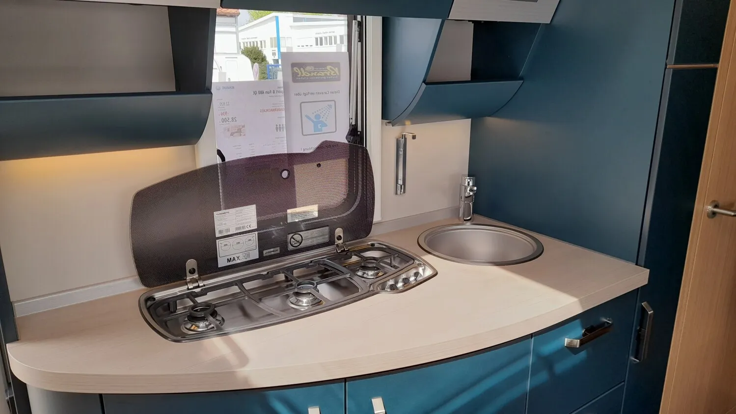 - Plus-Paket (Seifen- und Spülmittelspender, Dachhaube (Hebe-Kipp) 96 x 65 cm, mit Insektenschutz und Verdunklung (Bug), Wasserfiltersystem "bluuwater", MediKit Gutschein, AL-KO AAA Premium Brake, Stützrad mit integrierter Stützlastanzeige, AL-KO Schwerlastkurbelstützen, Insektenschutztür)