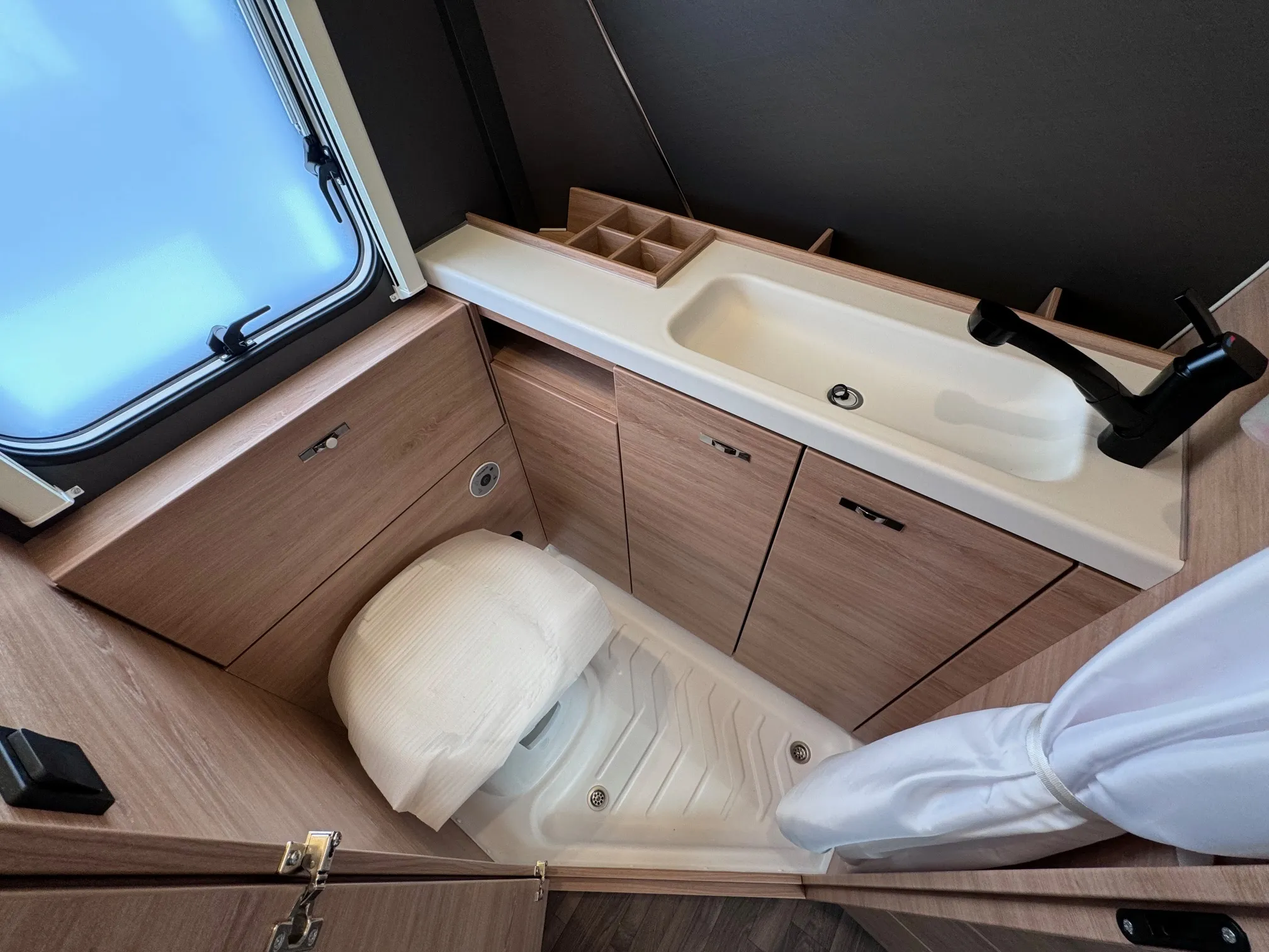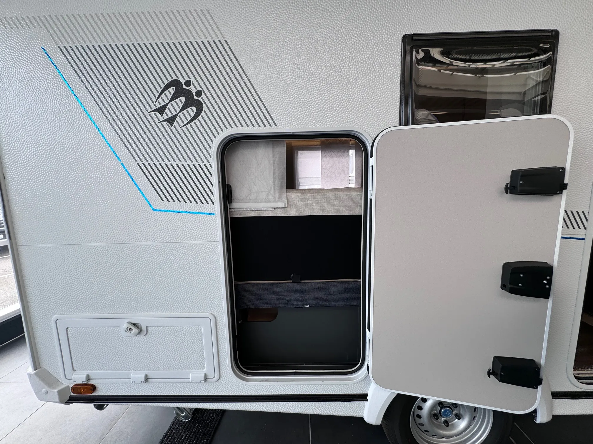 - Plus-Paket: Dachhaube (Hebe-Kipp) 70 x 50 cm, mit Insektenschutz und Verdunklung / Insektenschutztür / AL-KO Schwerlastkurbelstützen / Stützrad mit integrierter Stützlastanzeige / Wasserfiltersystem „bluuwater“ / MediKit Gutschein / Seifen- und Spülmittelspender