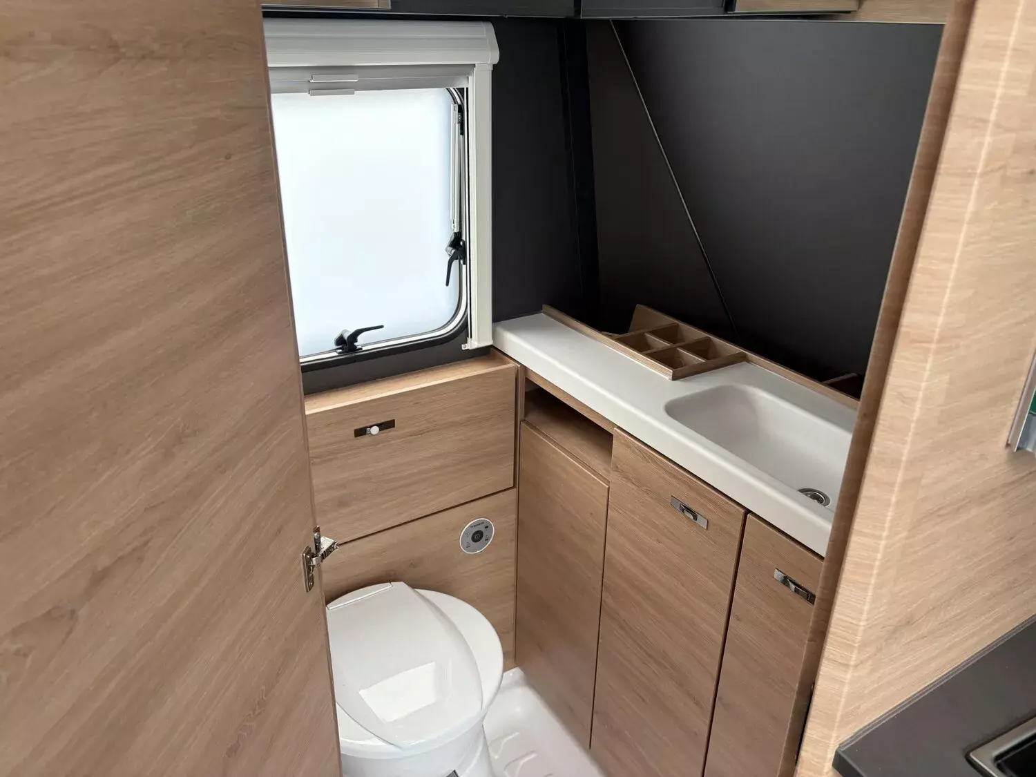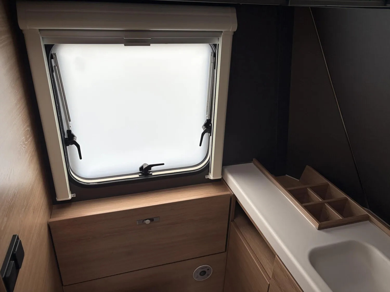 - Ausstellfenster 52 x 50 cm, mit Insektenschutz und Verdunklung (Toilettenraum)