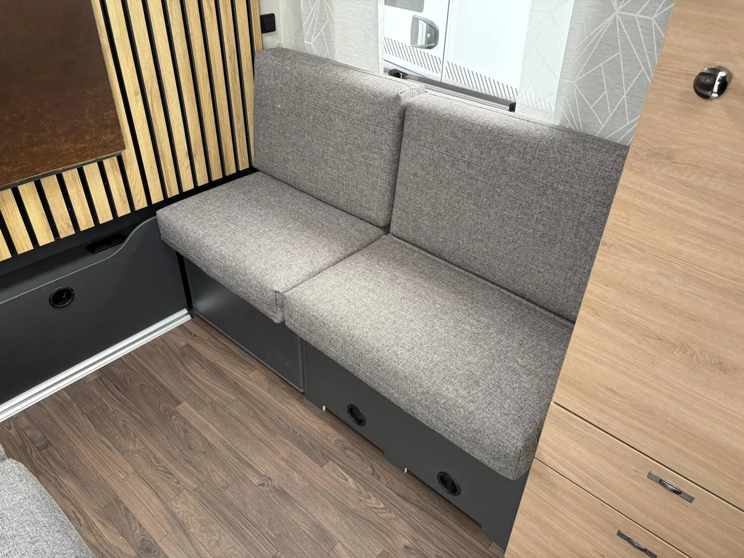- Transport-Paket (Verzurr-Ösen und Verzurrschienen im Wohnraum, Variable Sitzgruppe für Fahrradtransport, Garagentür 62,5 x 110 cm, rechts)