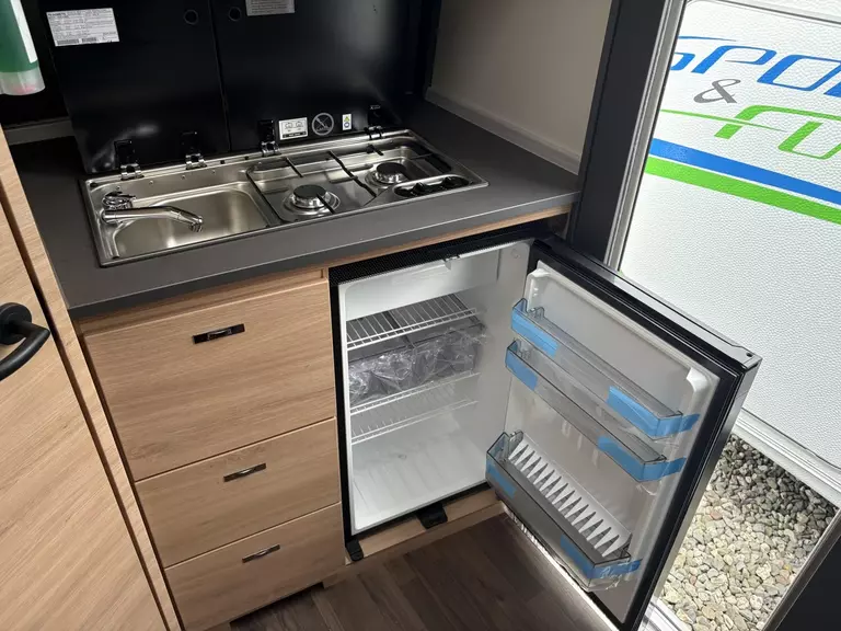 - Gas Paket (Gasschlauch Ausführung D/AT/ES/FI/BE/IT/NL/DK, Gasanlage 30 mbar, Kühlschrank 142 Liter, Gasregler Ausführung D/AT/ES/FI/BE/IT/NL/DK, Heizung TRUMA Combi 4, Kocher-Spülen-Kombination inkl. 2-Flammen-Kocher mit elektrischer Brennerzündung und geteilter Glasabdeckung, Gaskasten mit Außenklappe)