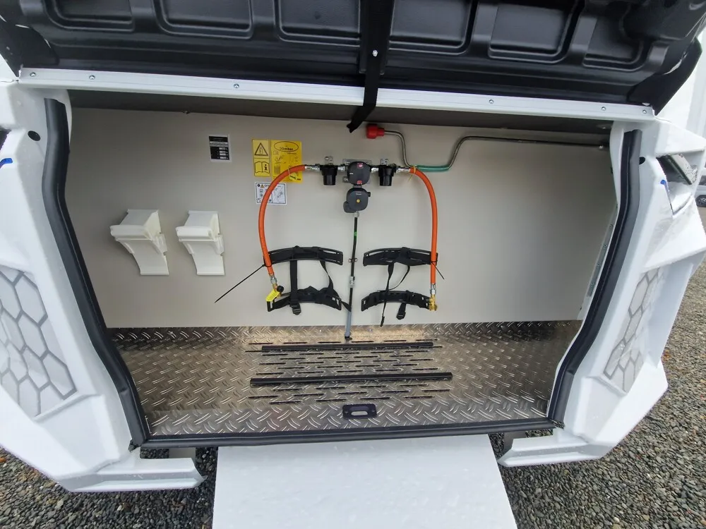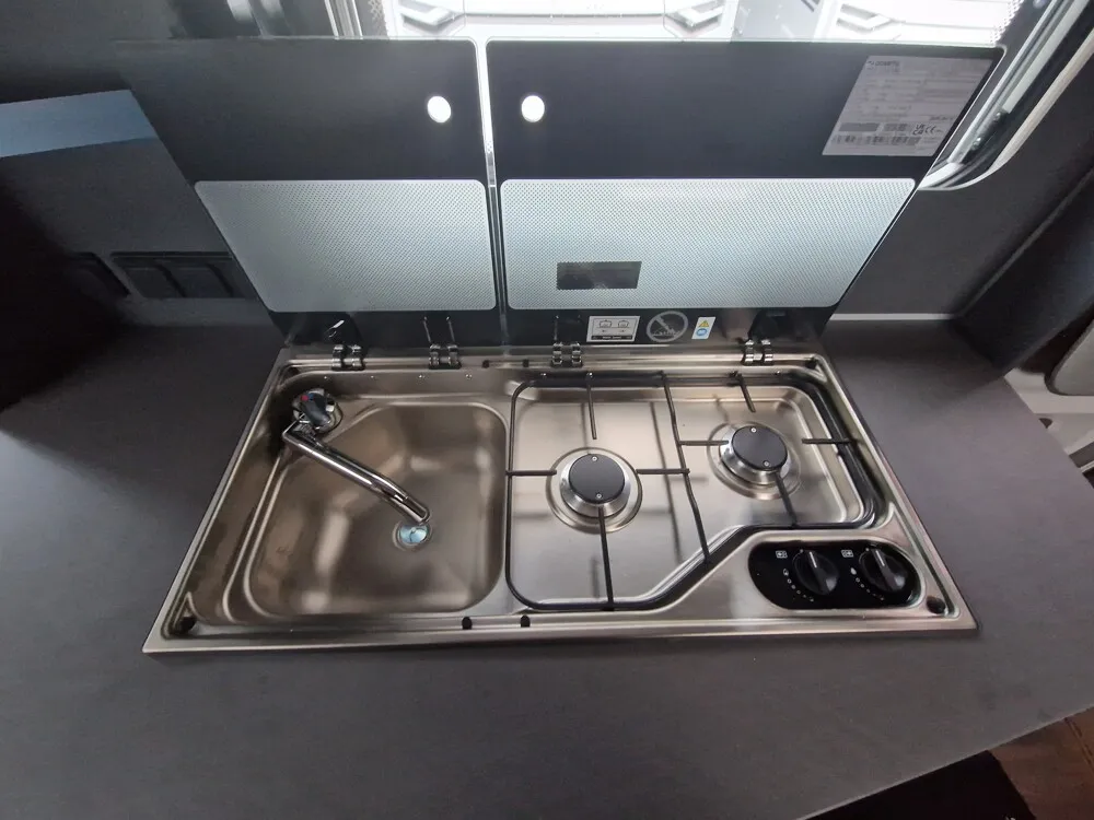 - Gas Paket (Gasschlauch Ausführung D/AT/ES/FI/BE/IT/NL/DK, Gasanlage 30 mbar, Kühlschrank 142 Liter, Gasregler Ausführung D/AT/ES/FI/BE/IT/NL/DK, Heizung TRUMA Combi 4, Kocher-Spülen-Kombination inkl. 2-Flammen-Kocher mit elektrischer Brennerzündung und geteilter Glasabdeckung, Gaskasten mit Außenklappe)
