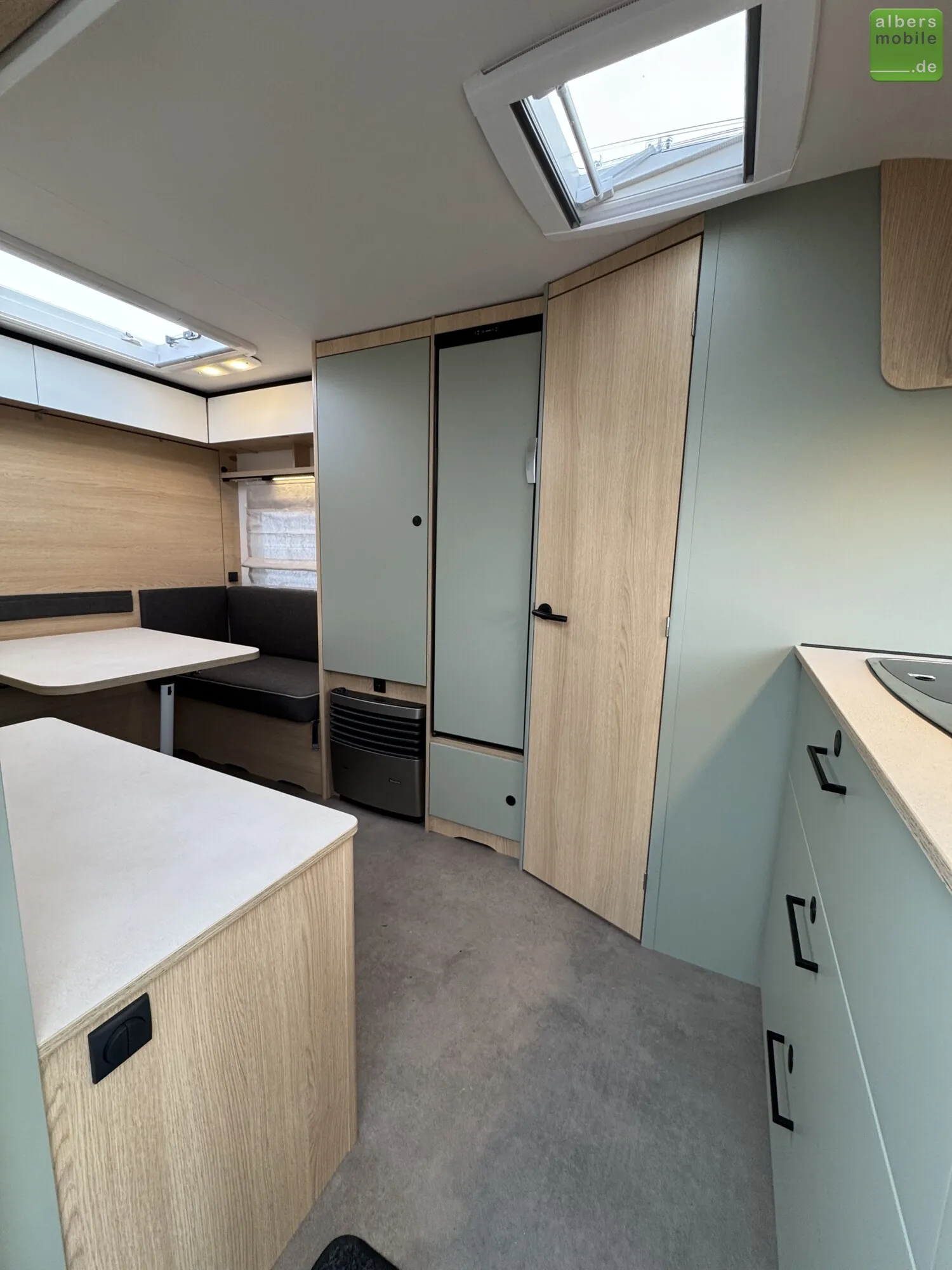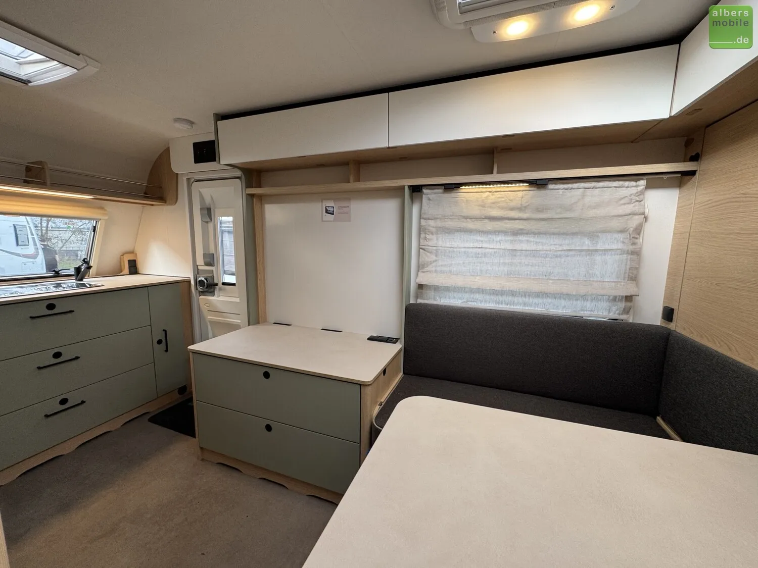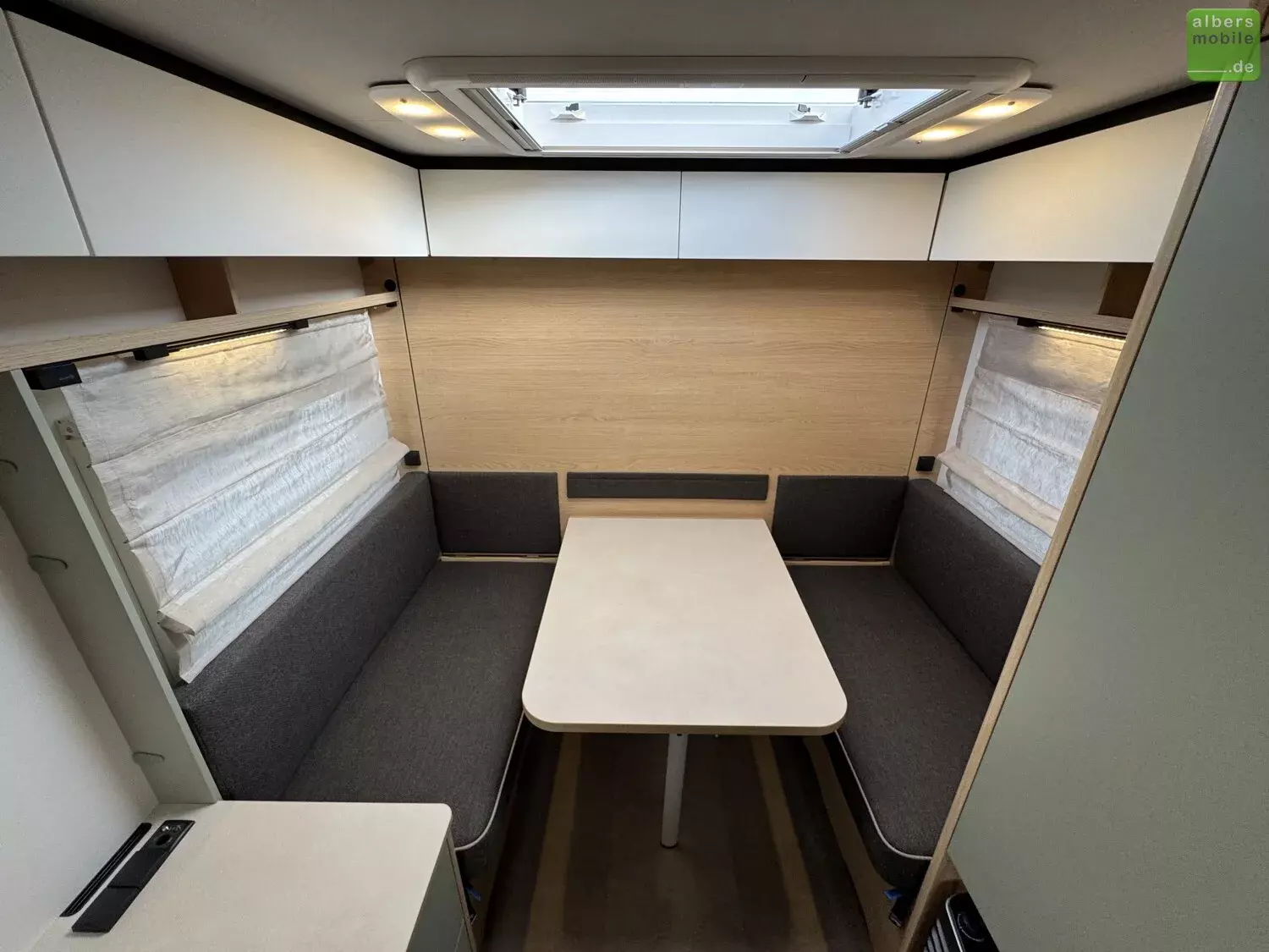 Wir bieten einen neuen LMC Style 400 F mit einem praktischen Klappbett und einer Bugküche aus dem Modelljahr 2024. Freundliches Eichendekor kombiniert mit feinem Salbeigrün, hellen Akzenten und einem Boden in Betonoptik machen den Style zu einem echten Hingucker.