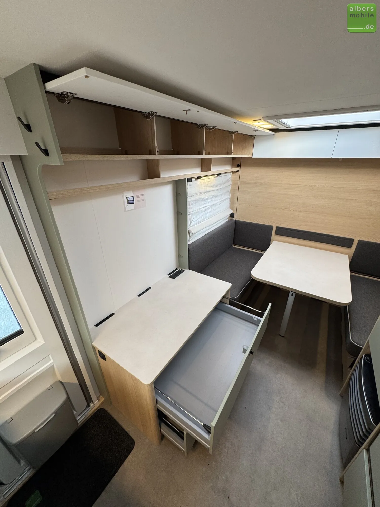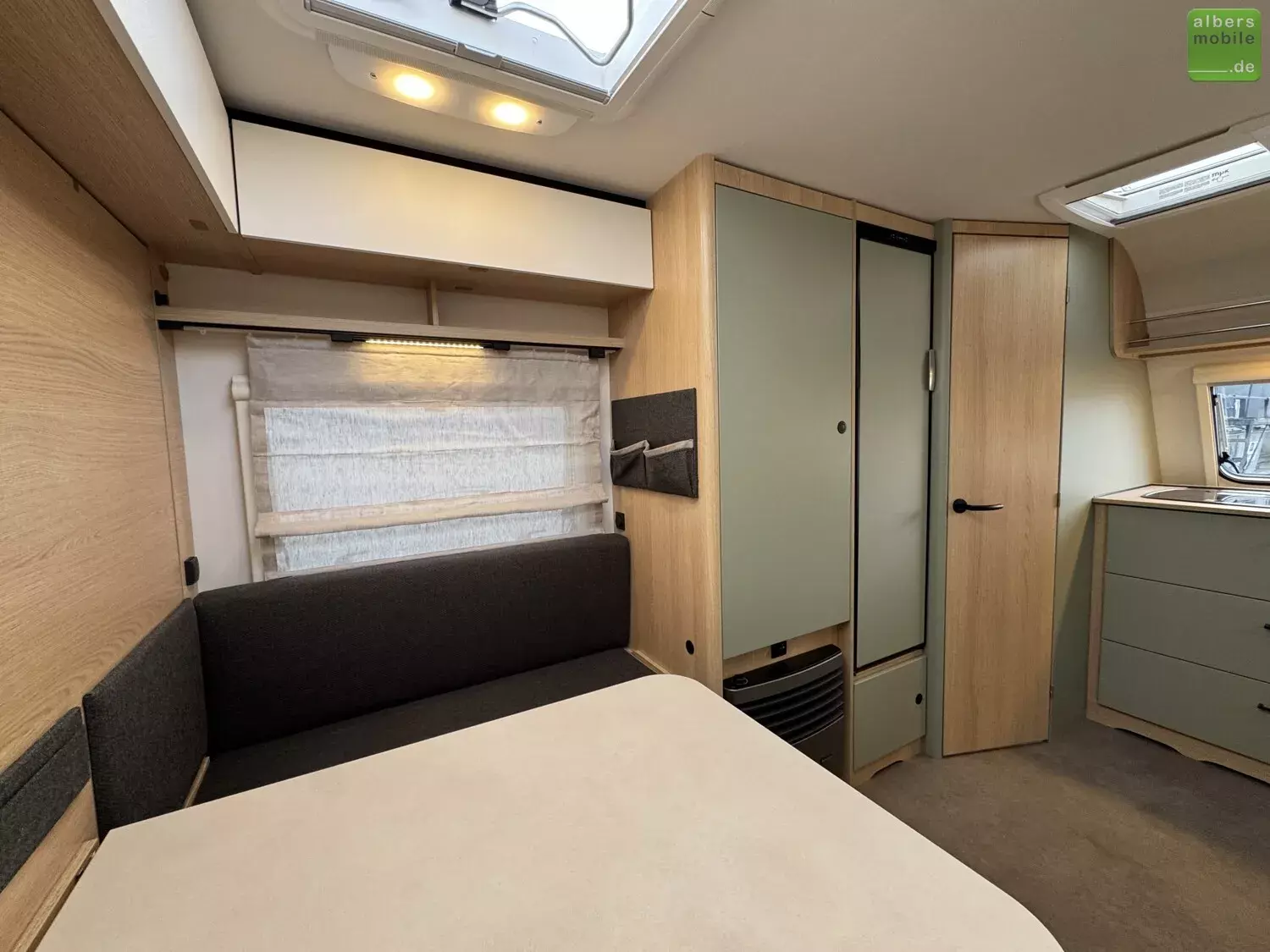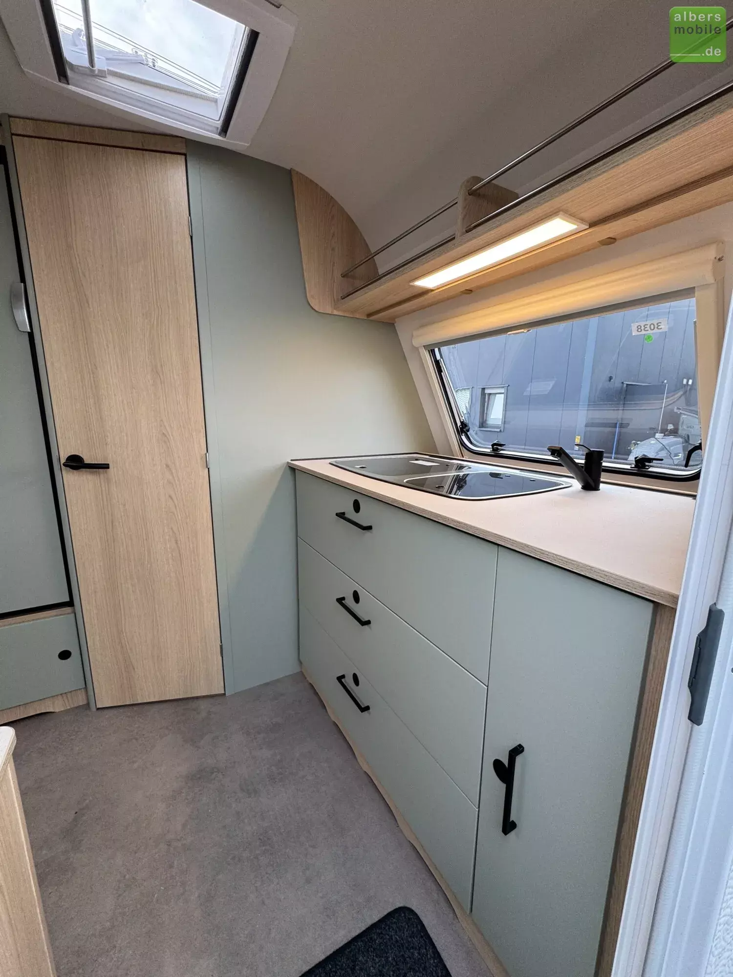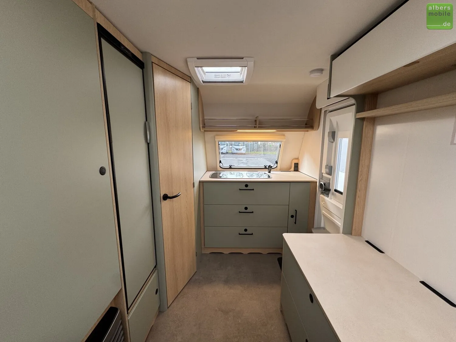 Wir bieten einen neuen LMC Style 400 F mit einem praktischen Klappbett und einer Bugküche aus dem Modelljahr 2024. Freundliches Eichendekor kombiniert mit feinem Salbeigrün, hellen Akzenten und einem Boden in Betonoptik machen den Style zu einem echten Hingucker.