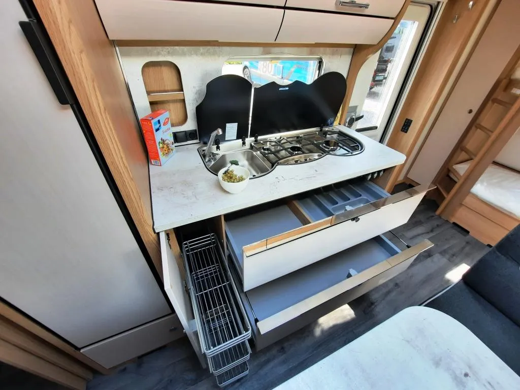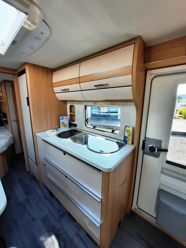 3-Flammen-Kocher, Umluftanlage 230V, Frischwasswertankanzeige,
