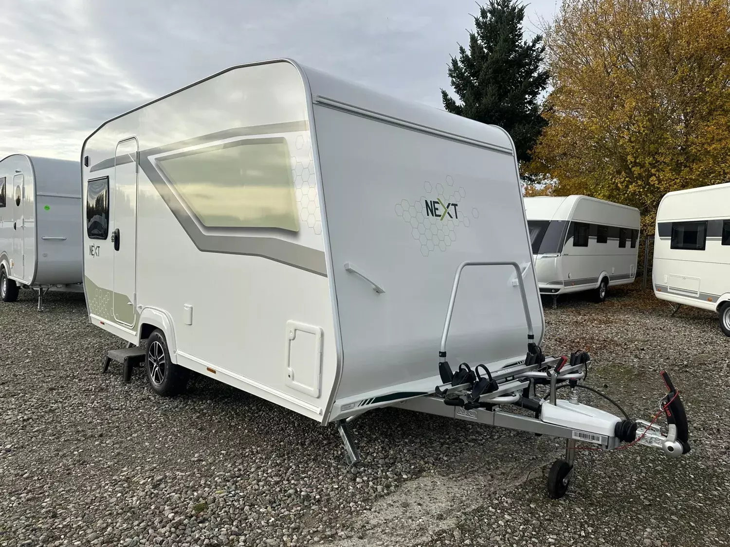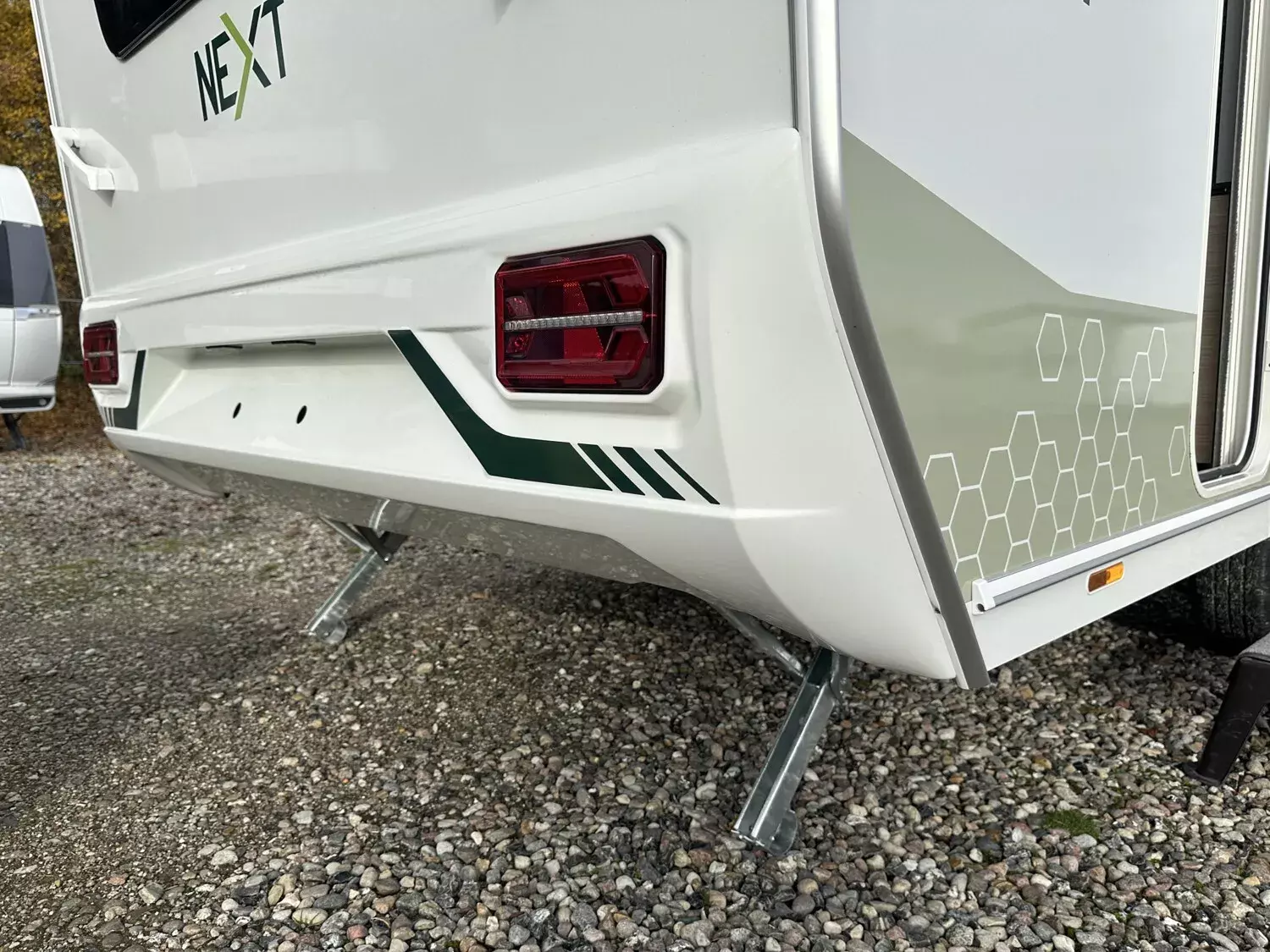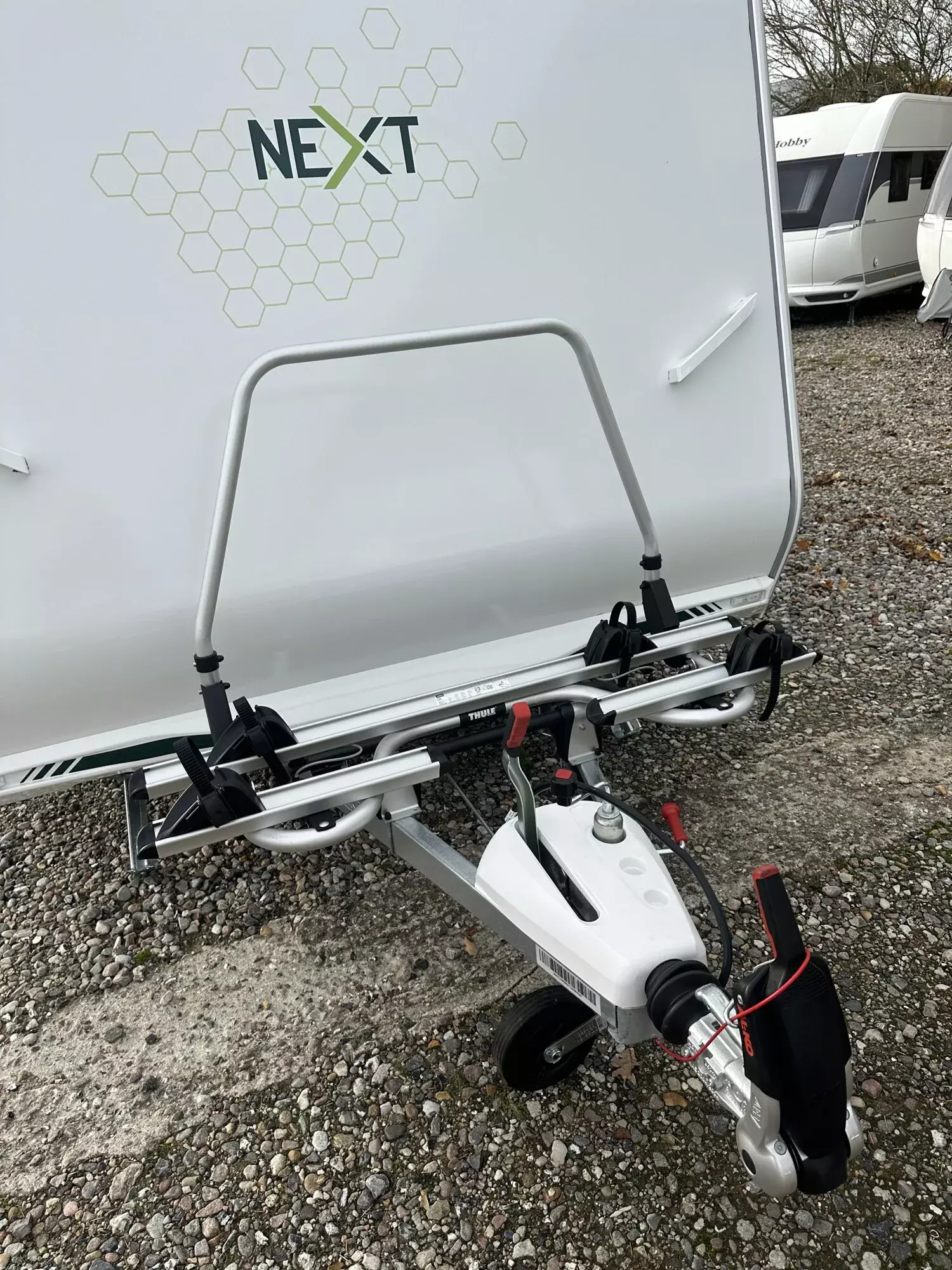 - Paket NXtec 1.3 (Außenstauklappe 999 x 419 mm im Bug links zur komfortablen Beladung des Caravans von außen, Gewichtserhöhung auf 1.300 kg, Fahrradträger Deichsel (für 2 Räder))