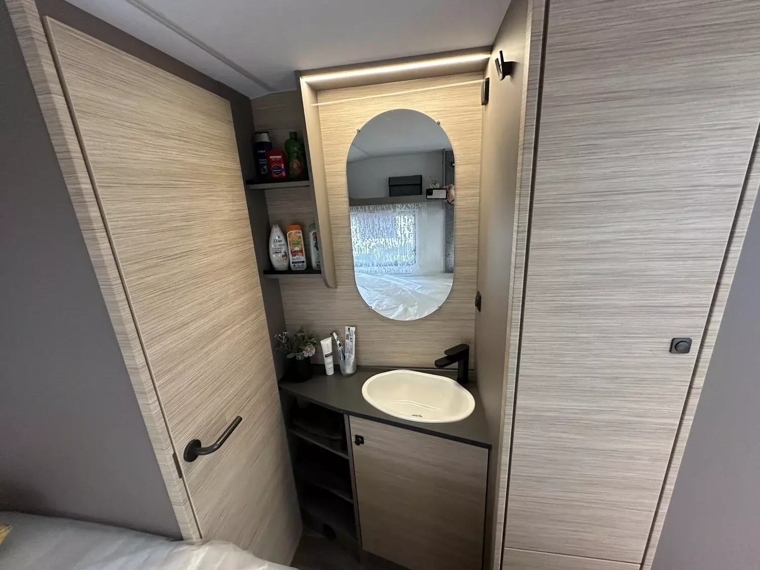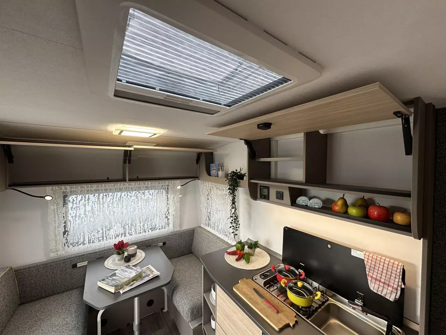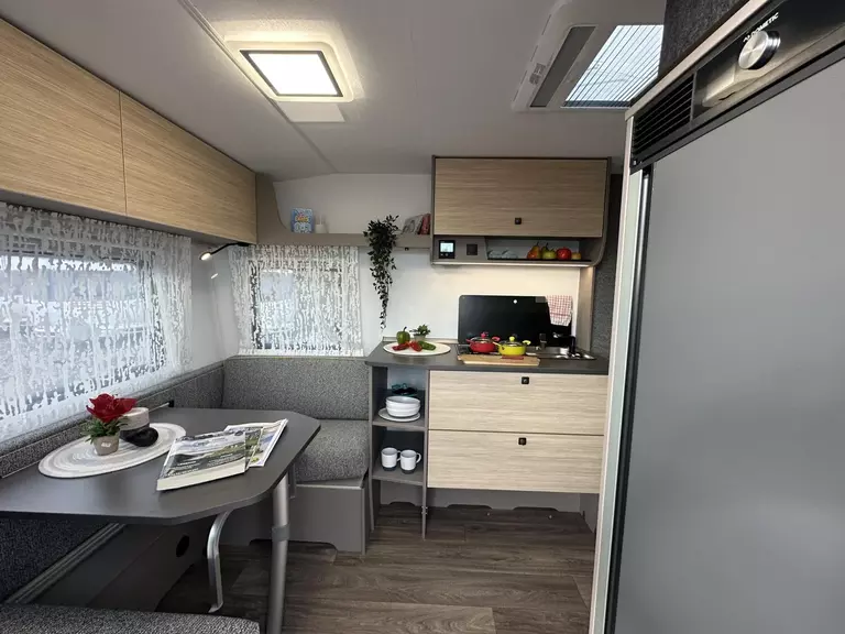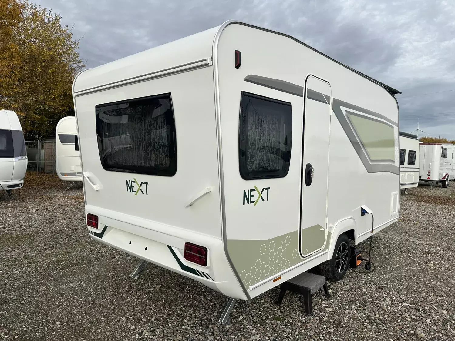 - Paket NXtec 1.3 (Außenstauklappe 999 x 419 mm im Bug links zur komfortablen Beladung des Caravans von außen, Gewichtserhöhung auf 1.300 kg, Fahrradträger Deichsel (für 2 Räder))