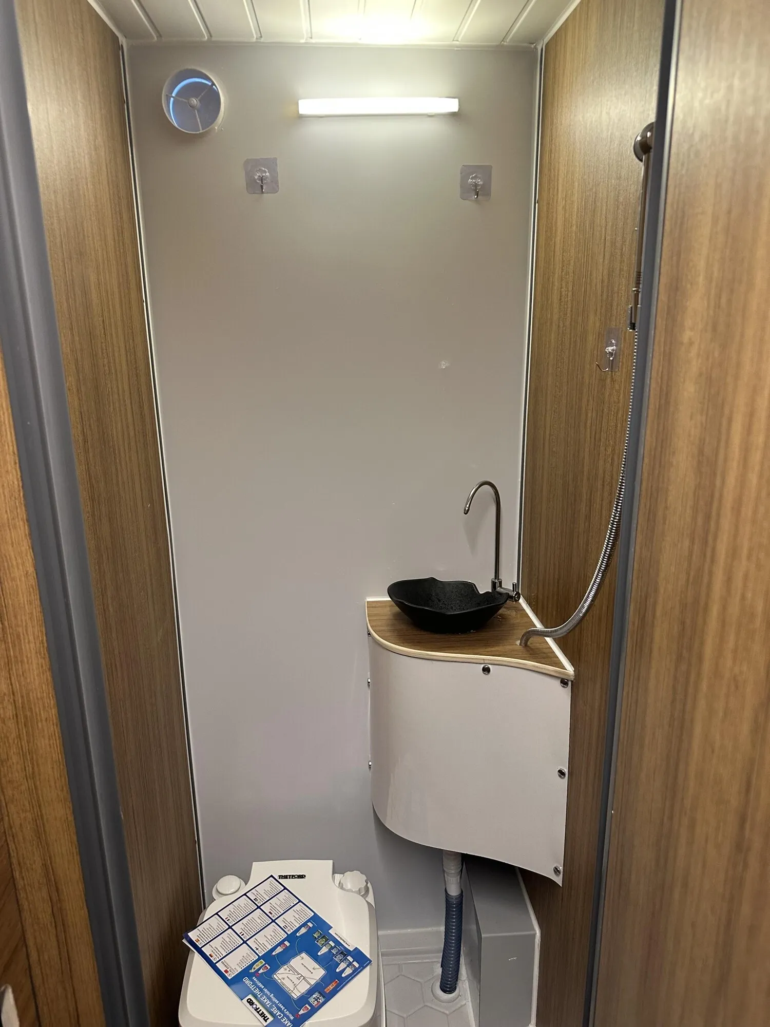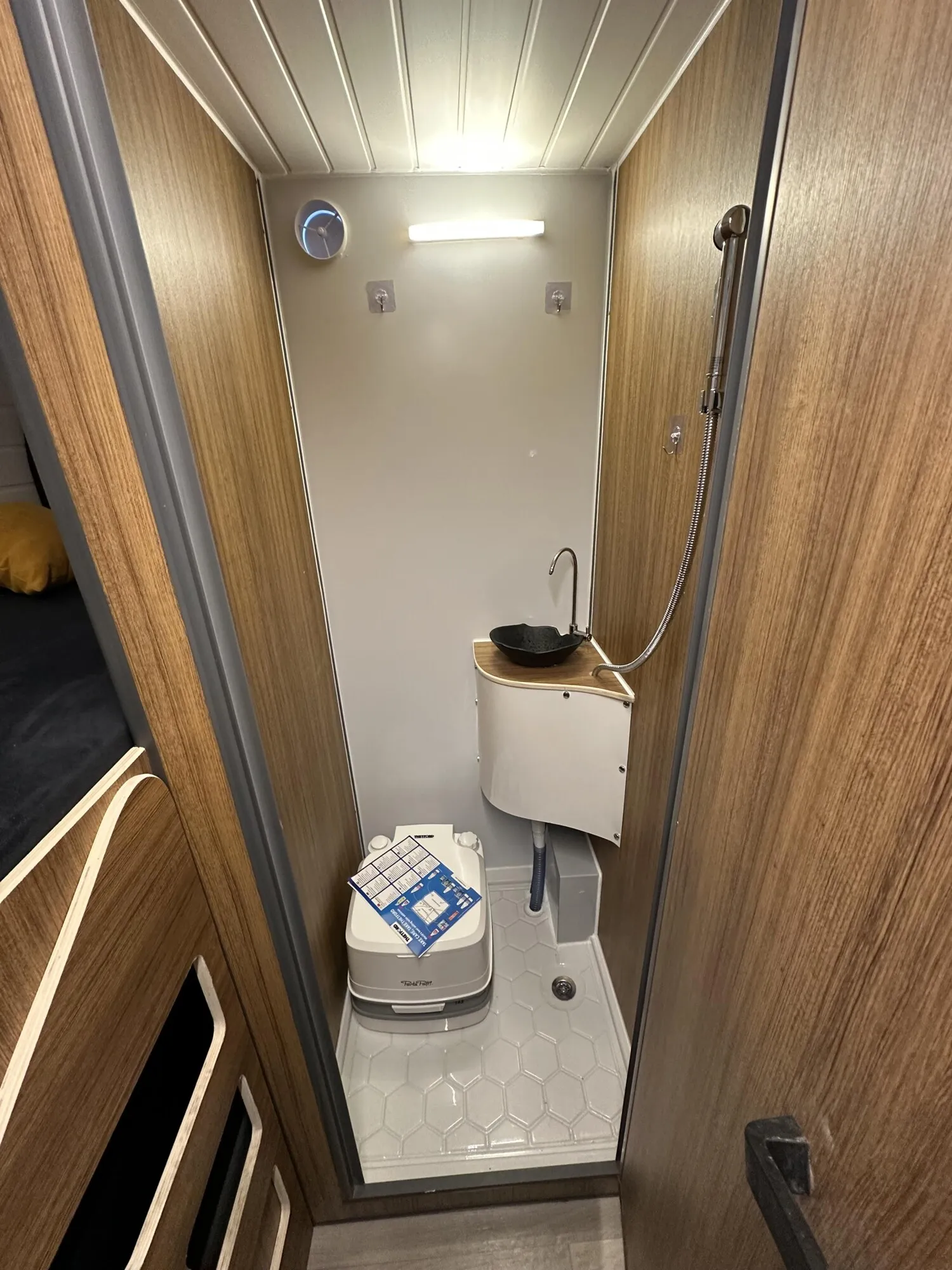 Waschraum mit Duscharmatur Waschbecken und Camping WC