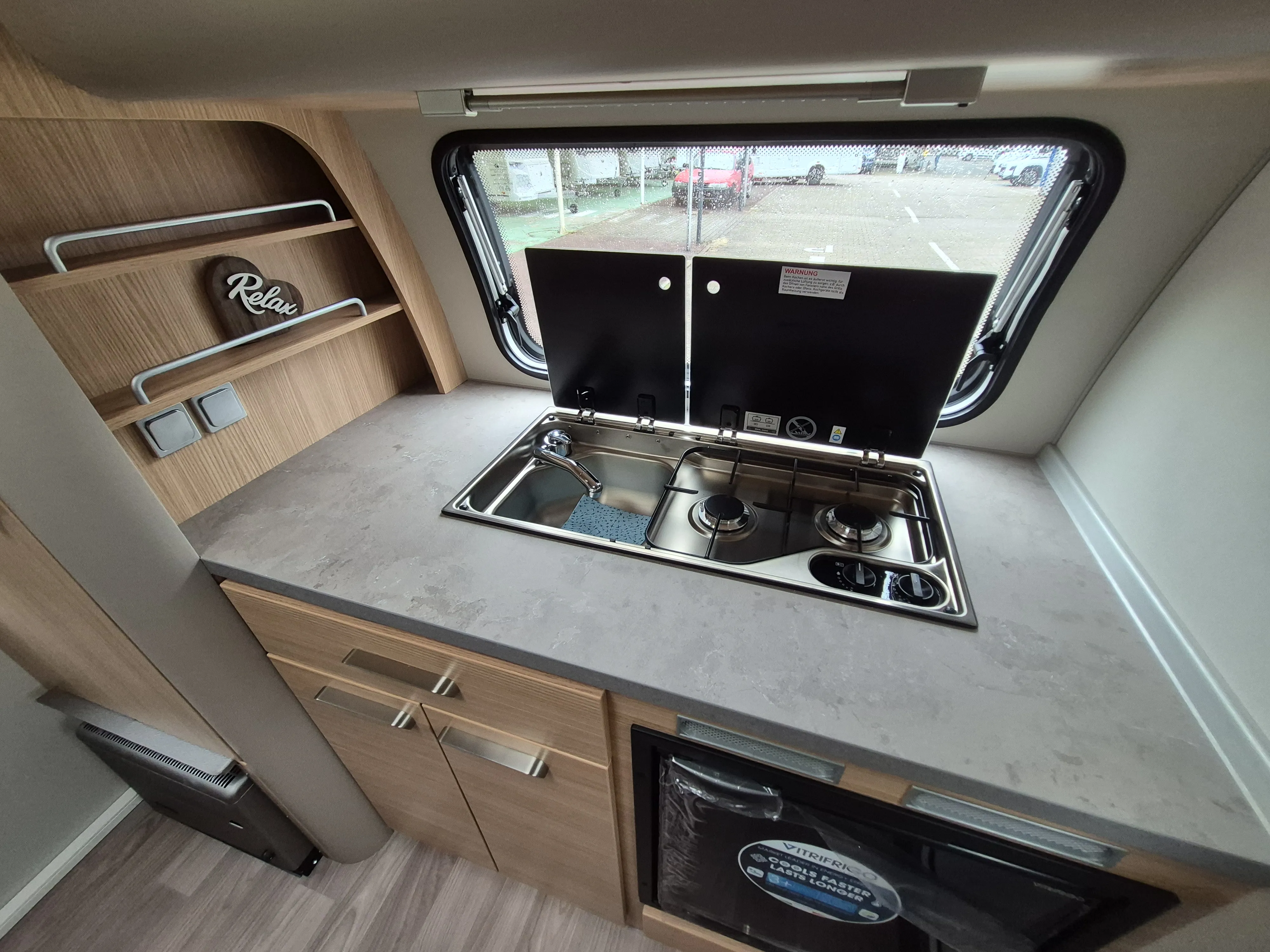 - 2-Flammen-Kocher mit Glasabdeckung, Spülbecken aus Edelstahl, versenkt
